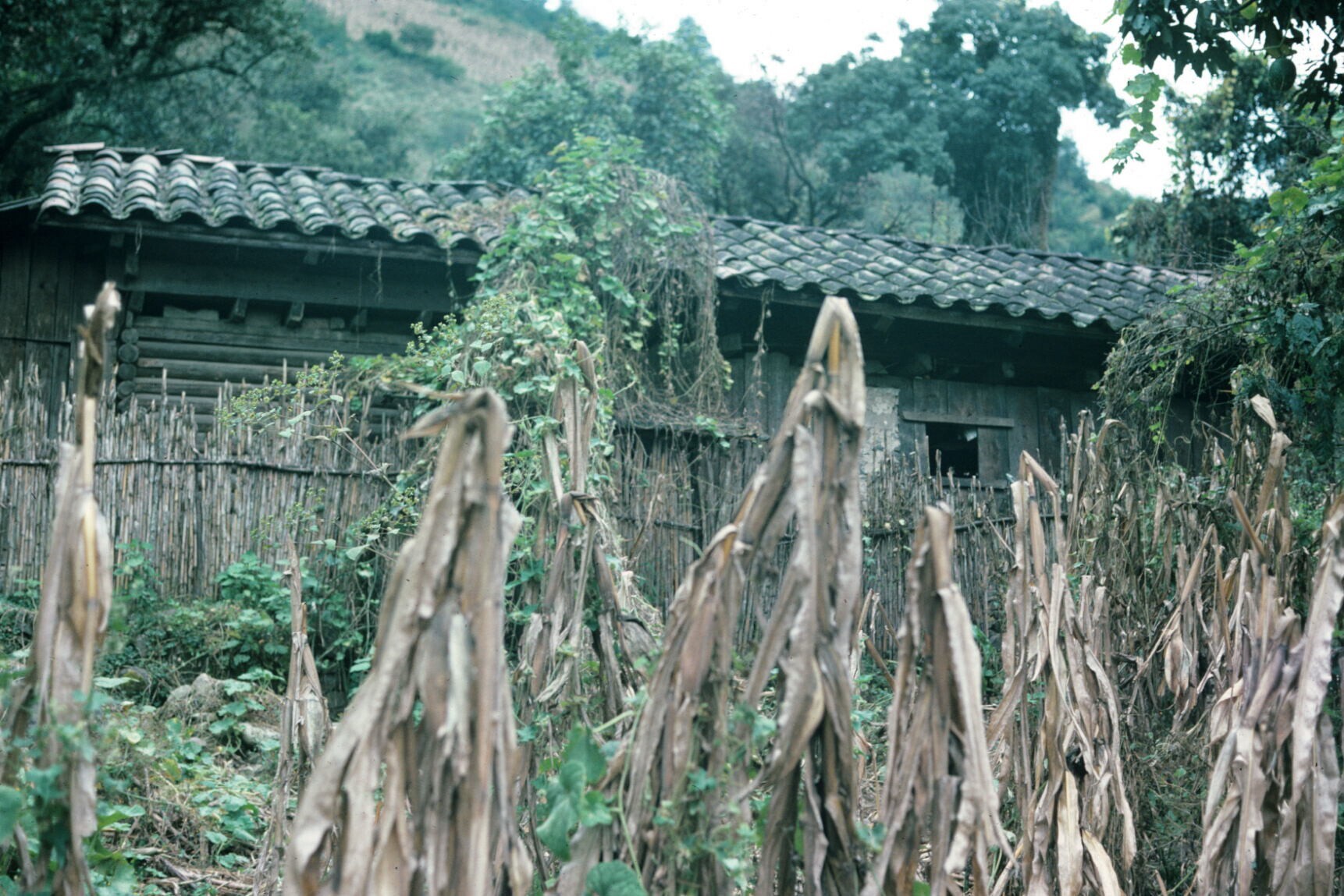 akker met maïsstengels na de oogst bij huis Doña Lor...