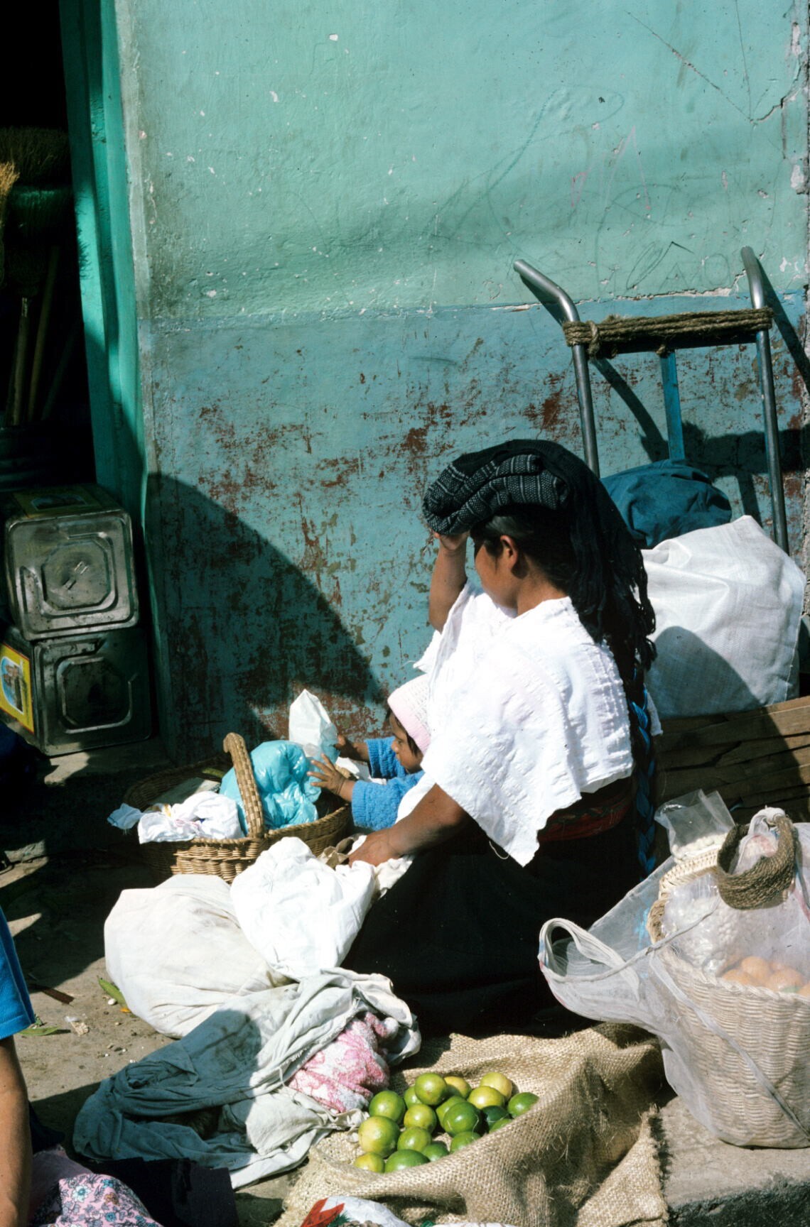 marktkoopvrouw met "blusa", wikkelrok en "faja" (cei...