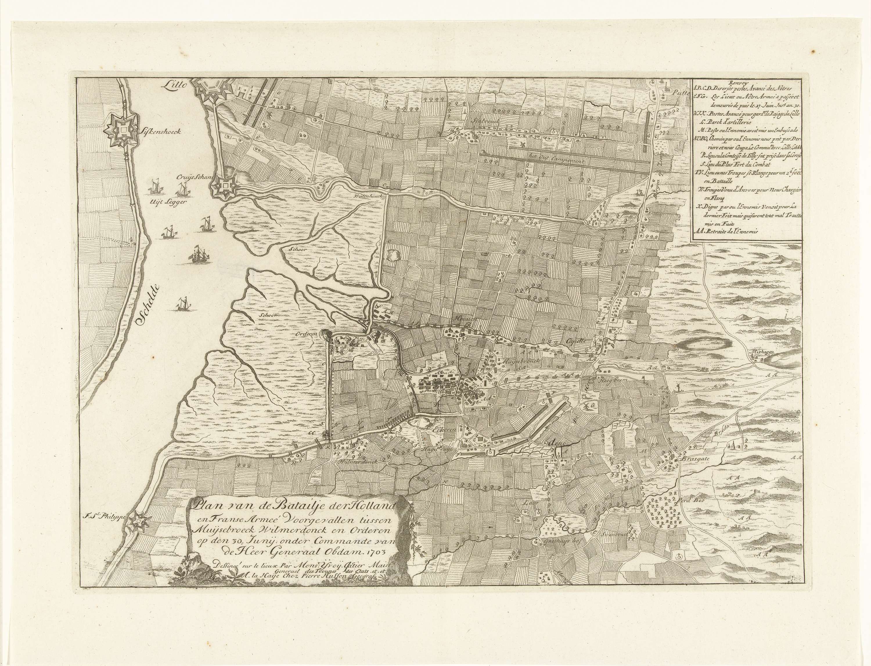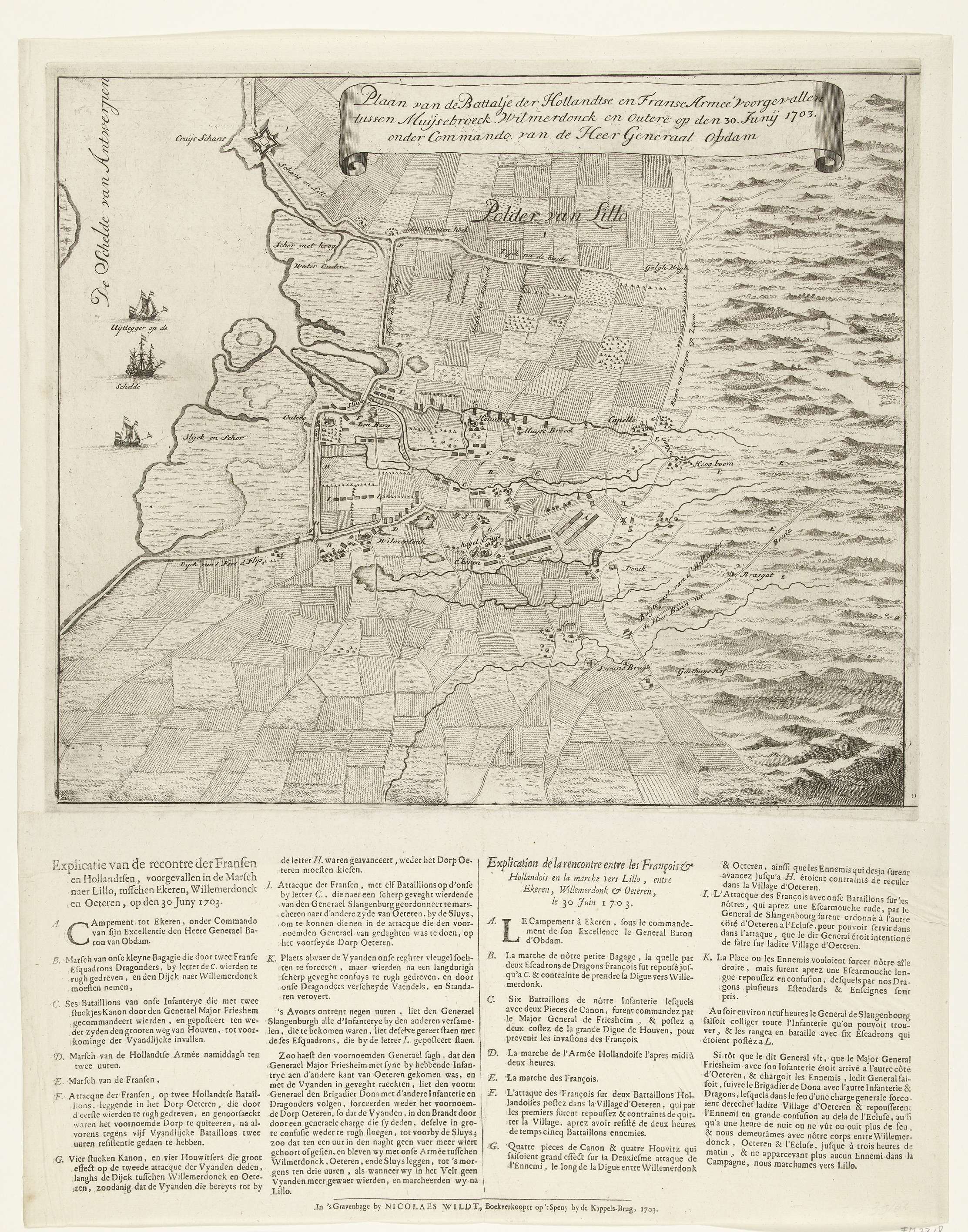 Kaart van de veldslag bij Ekeren, 1703