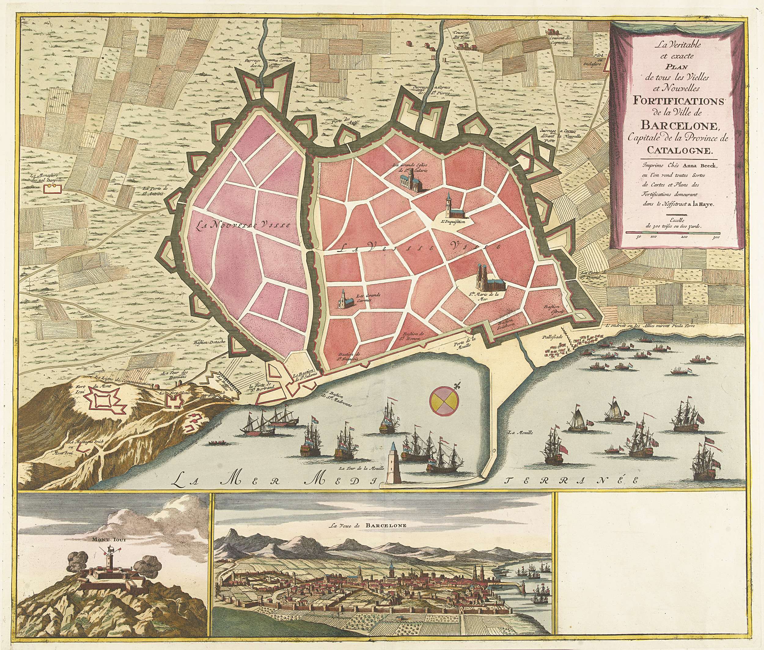 Kaart van Barcelona, ca. 1706