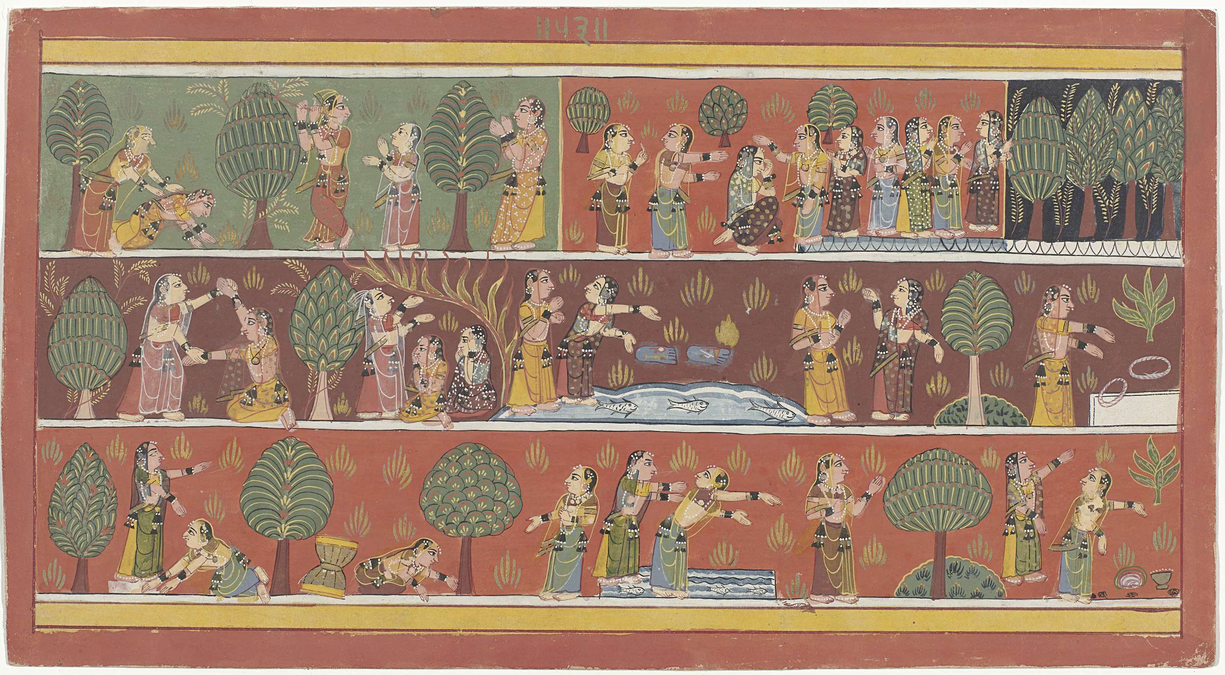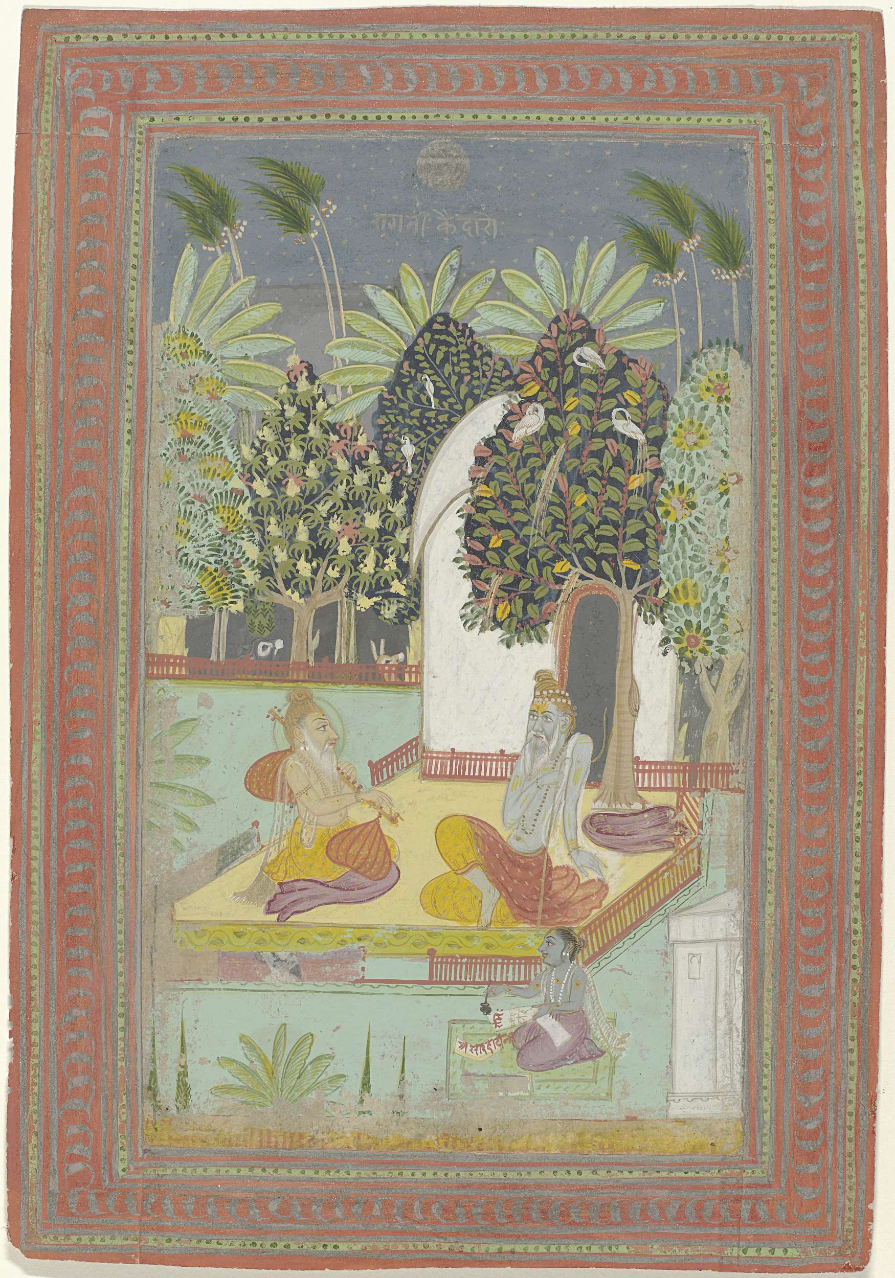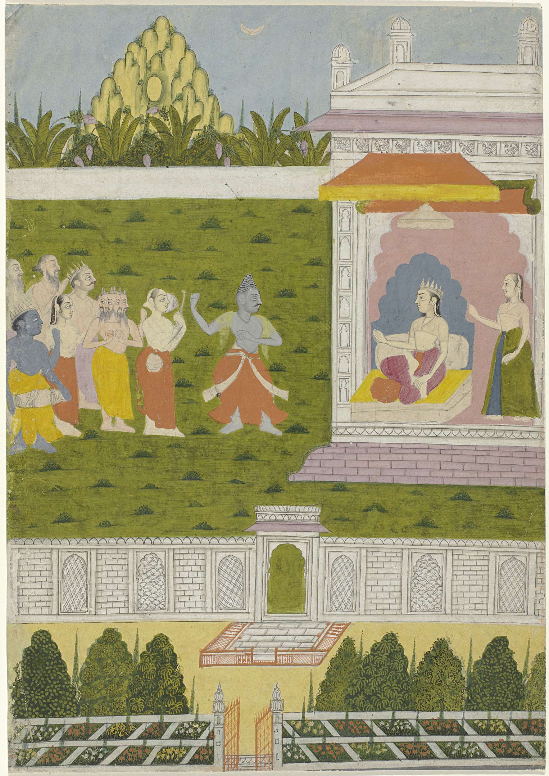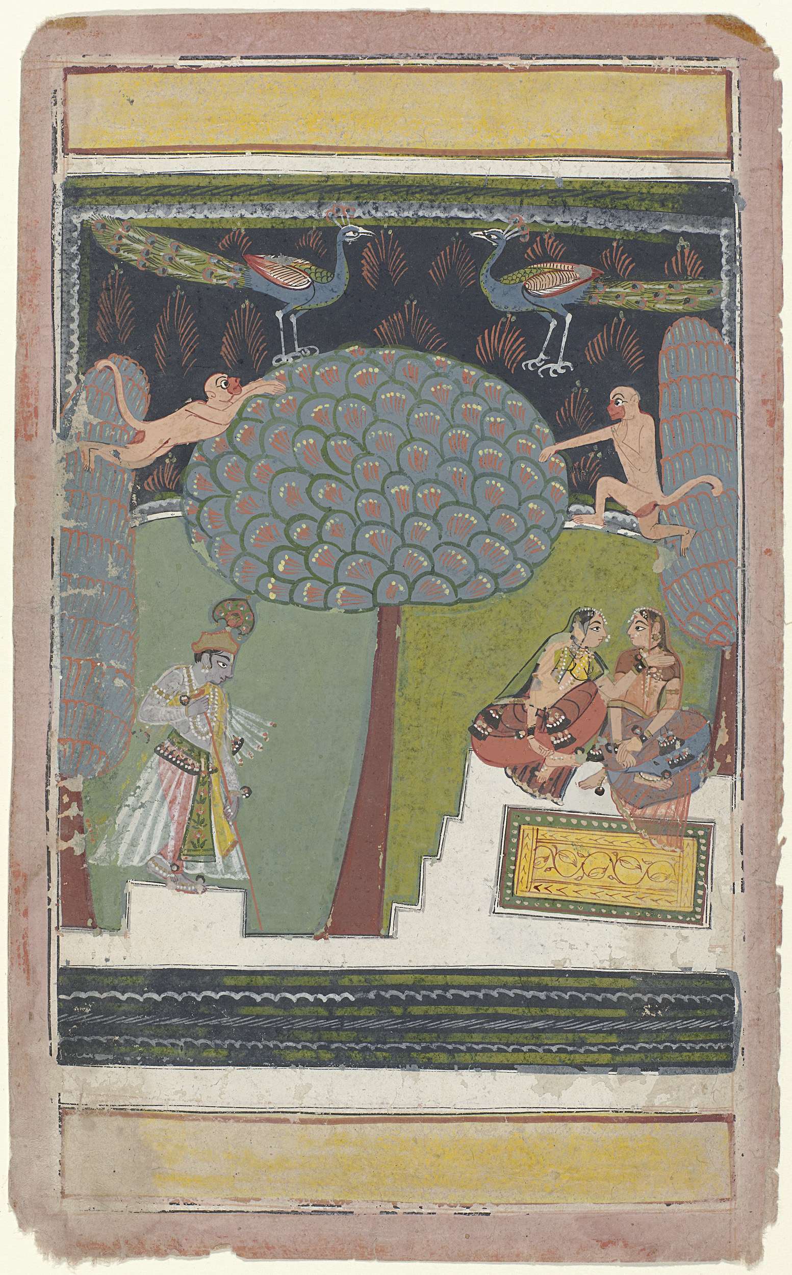 Krishna en twee vrouwen in een tuin