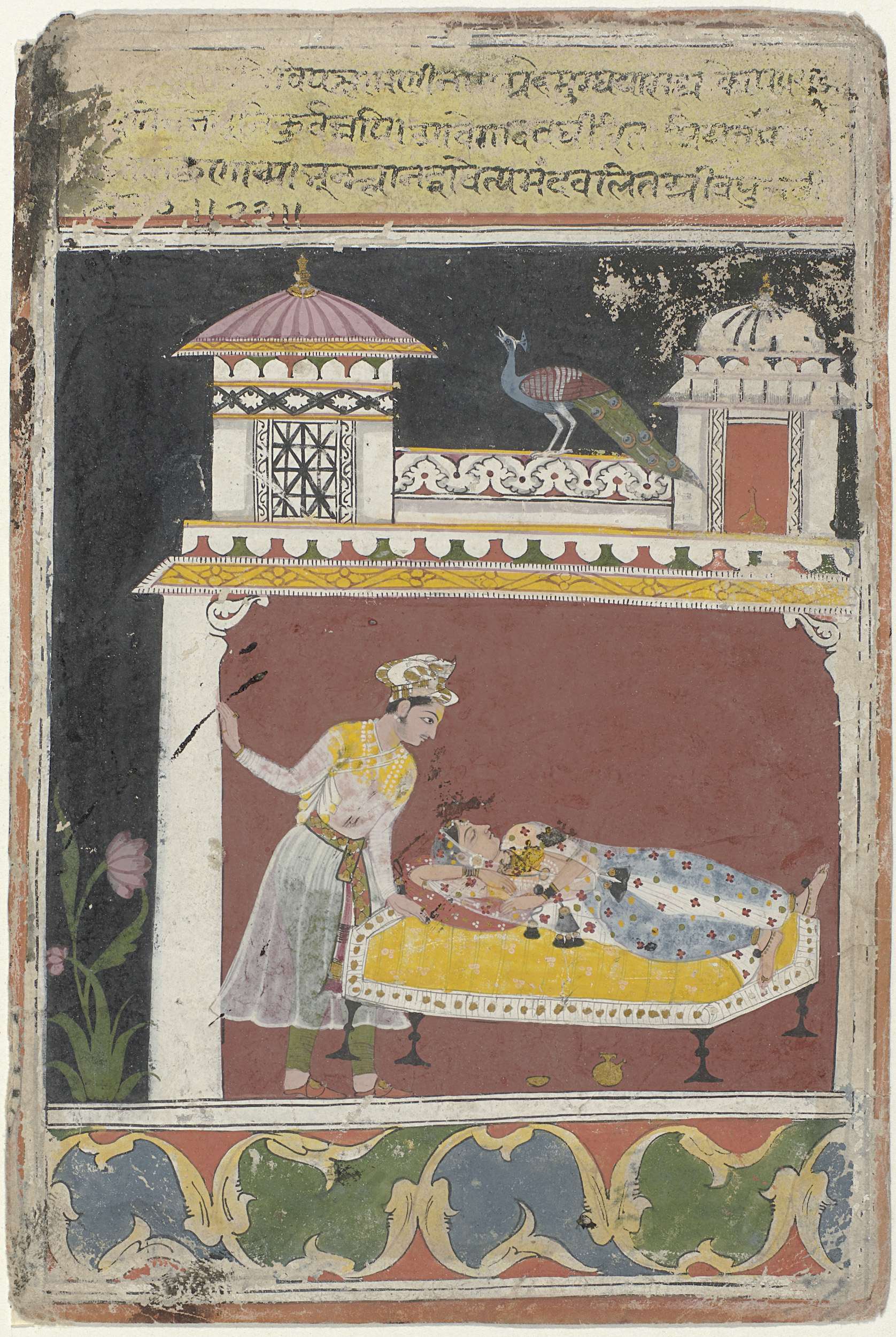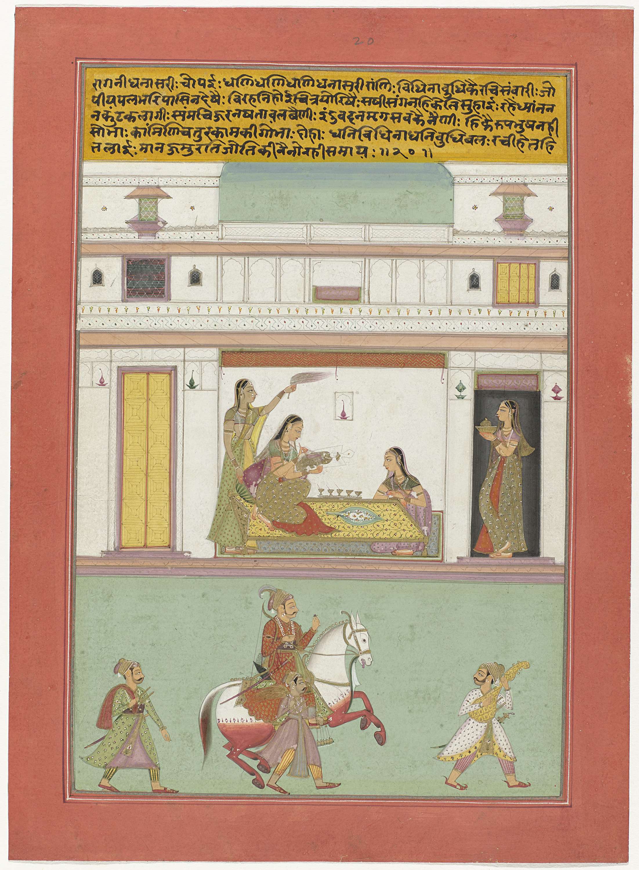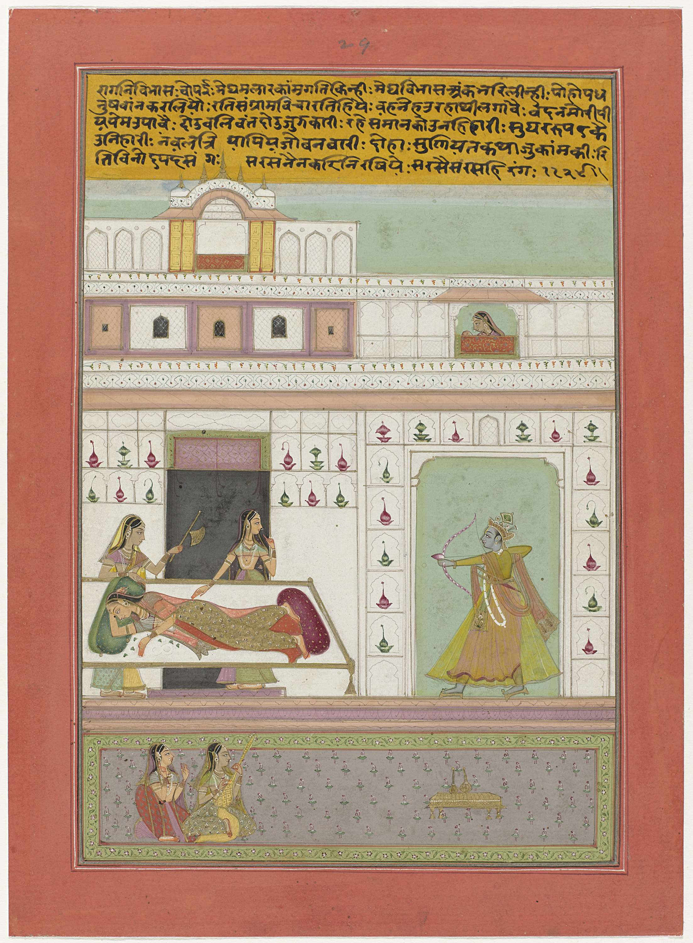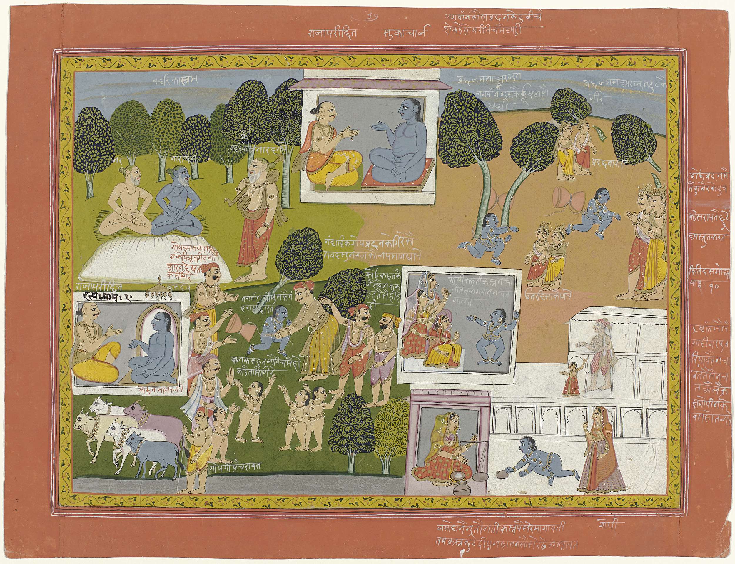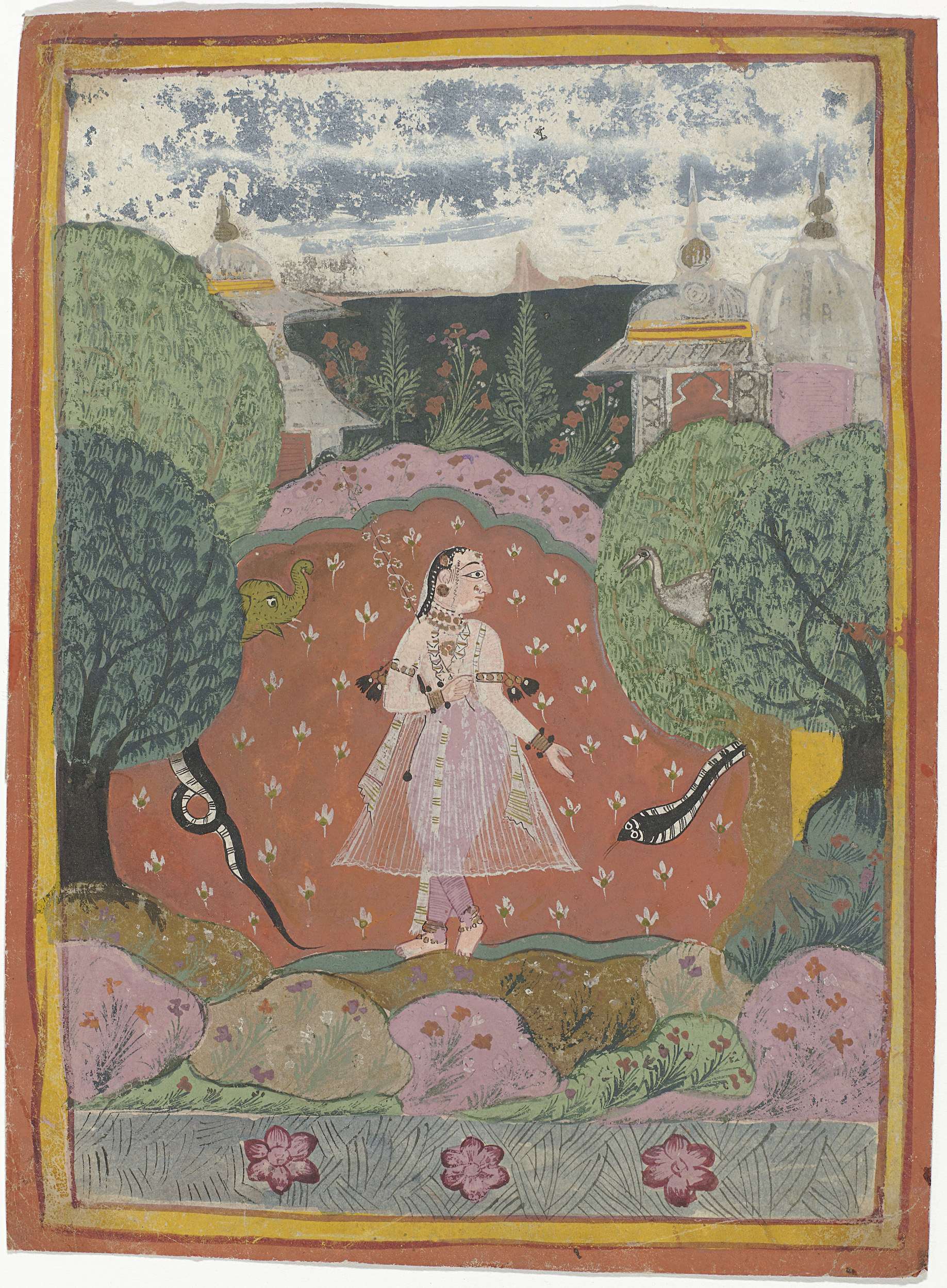 Krishna en twee vrouwen in een tuin