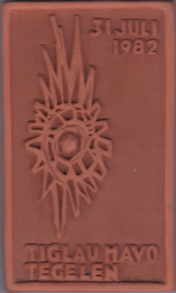 Tegel in reliëf, met voorstelling: ster met tekst: 3...