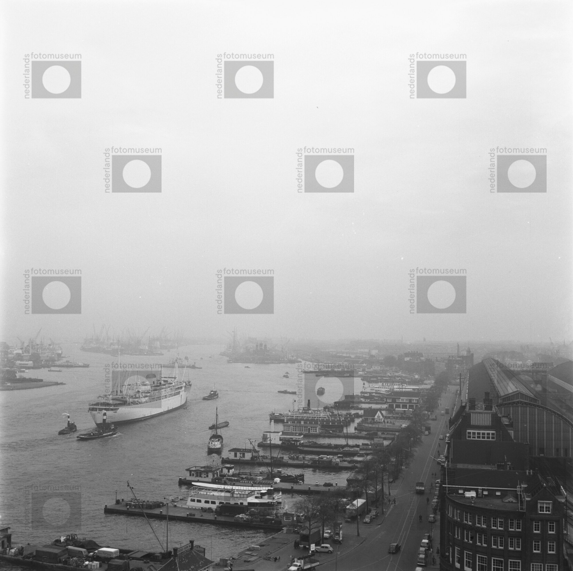 Amsterdam. De Ruyterkade. Overzicht van het IJ met b...