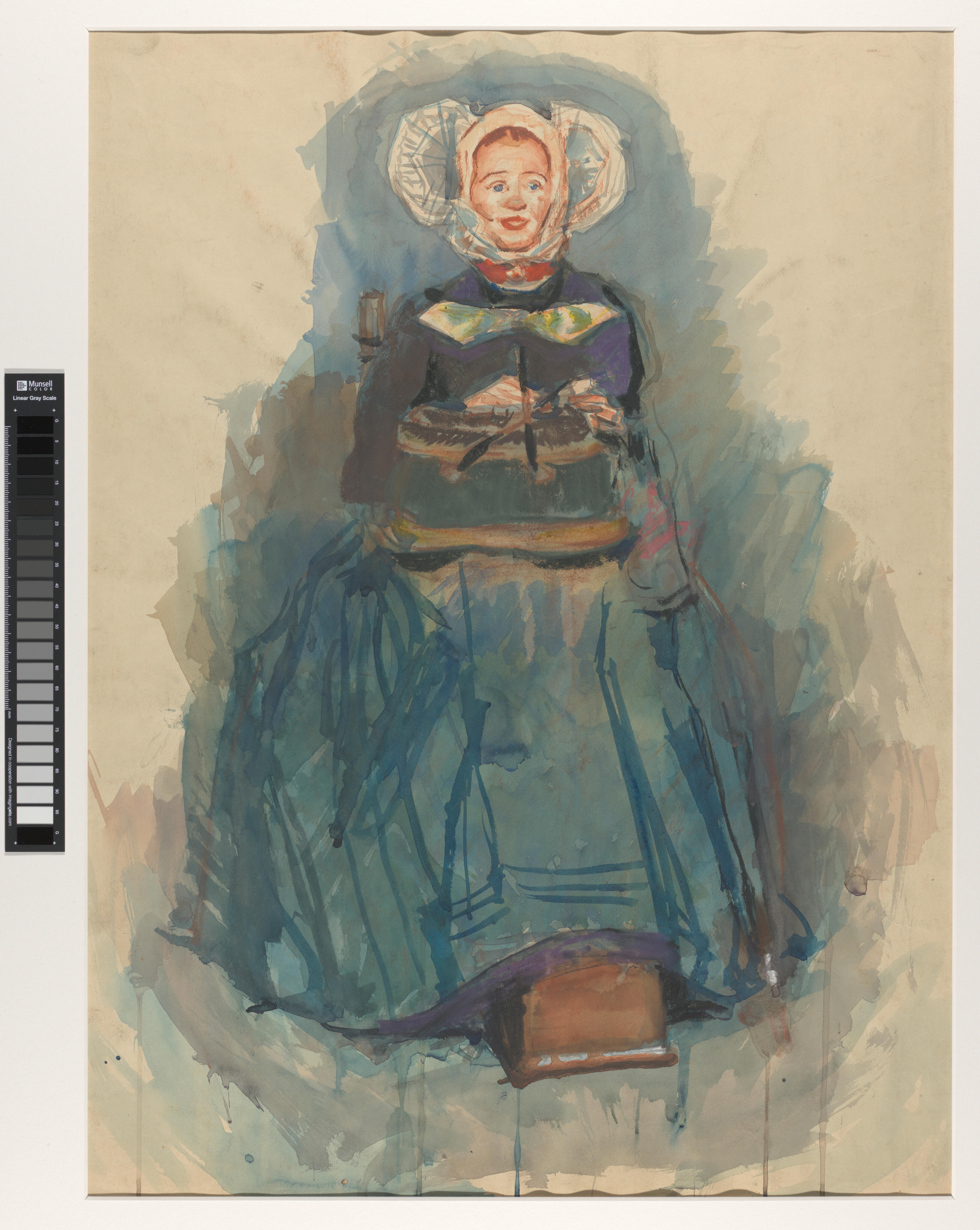 Gouache van vrouwen in dracht van Terschelling