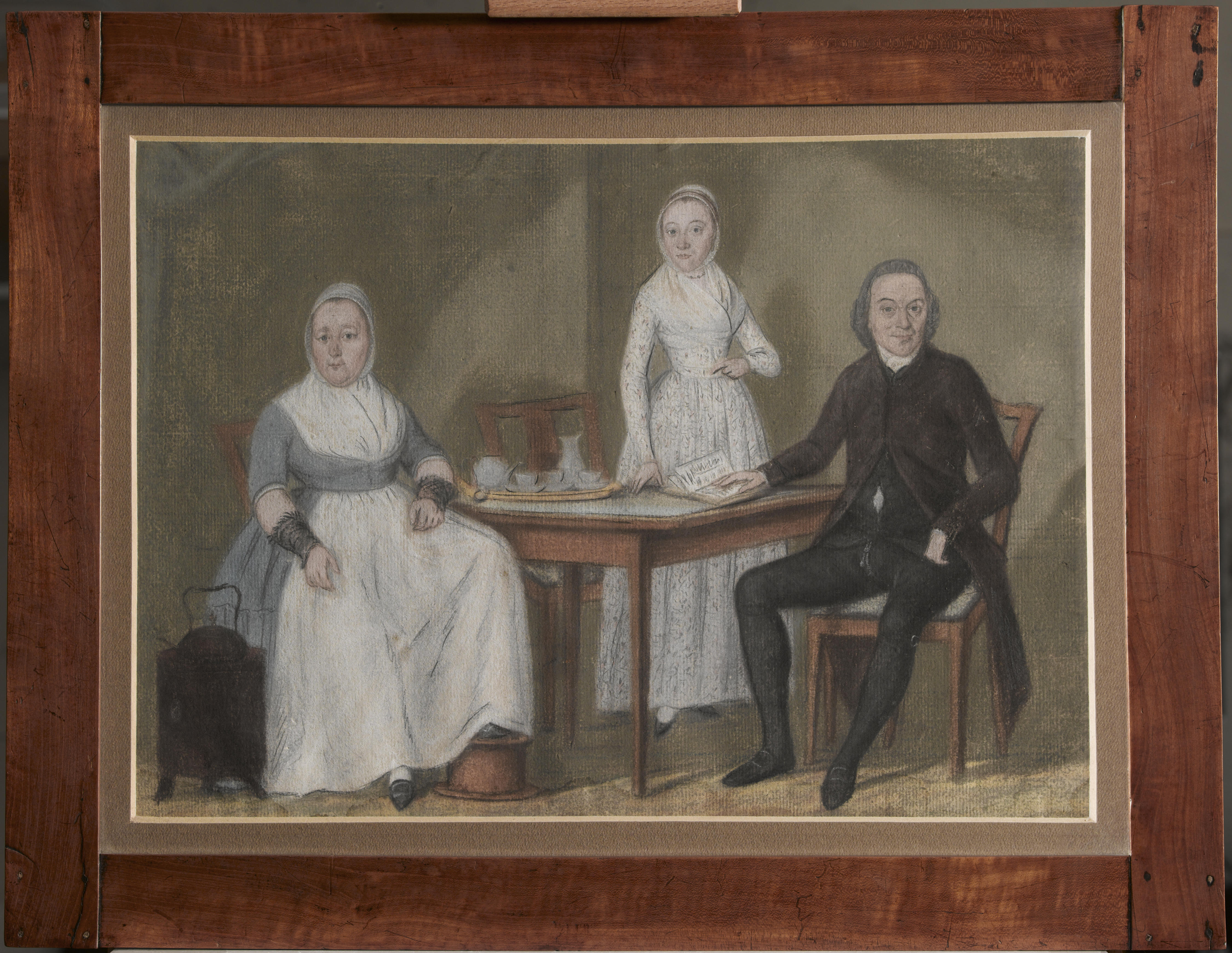 Ingelijste aquarel van vrouw en meisje in Bunschoter...