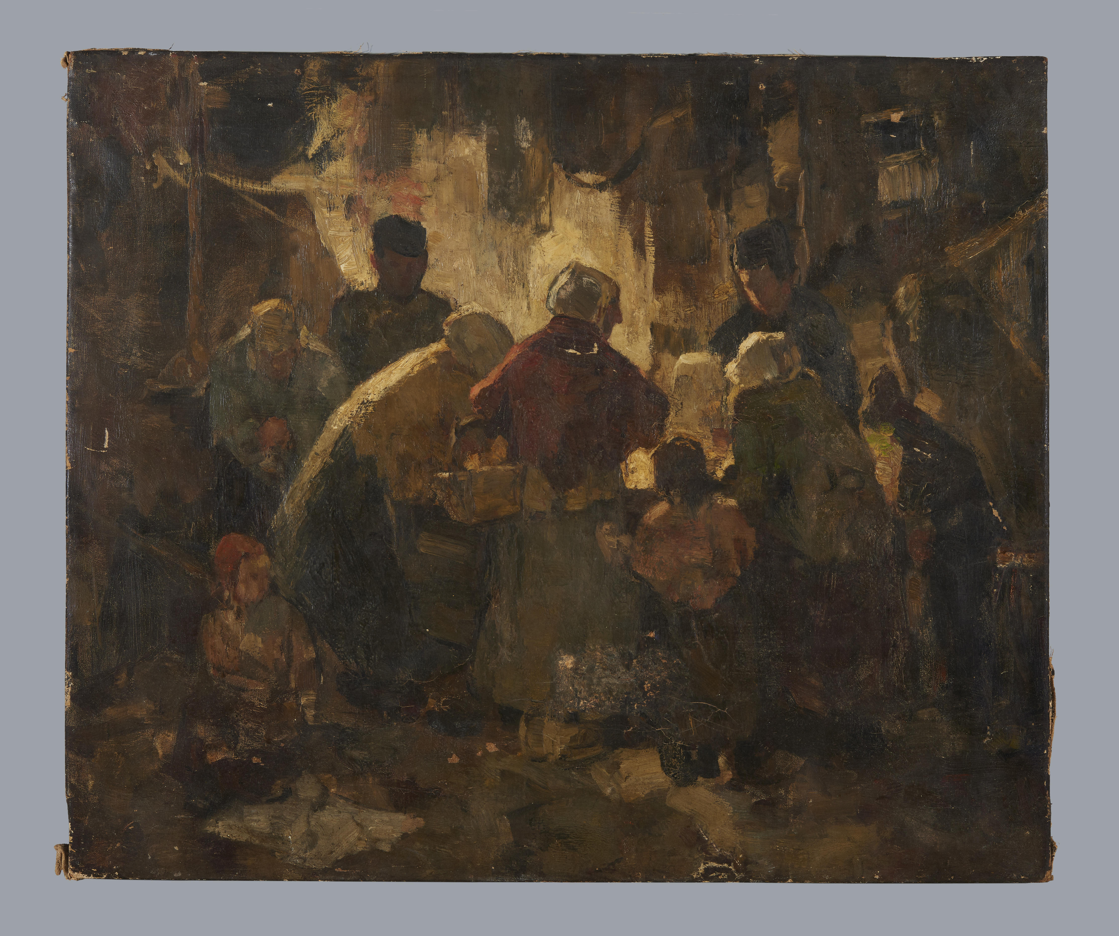 Groepscène in het duister rond een lichtbron, 1880–1900