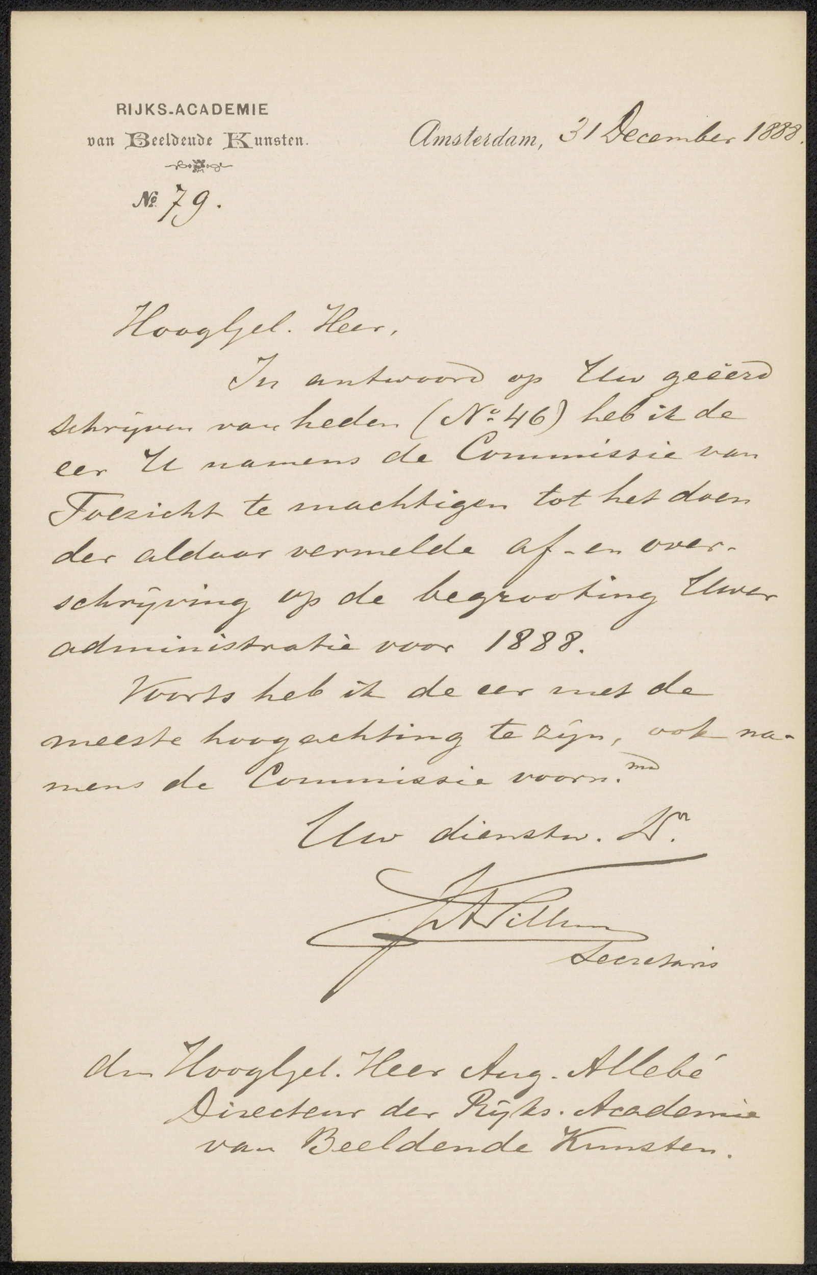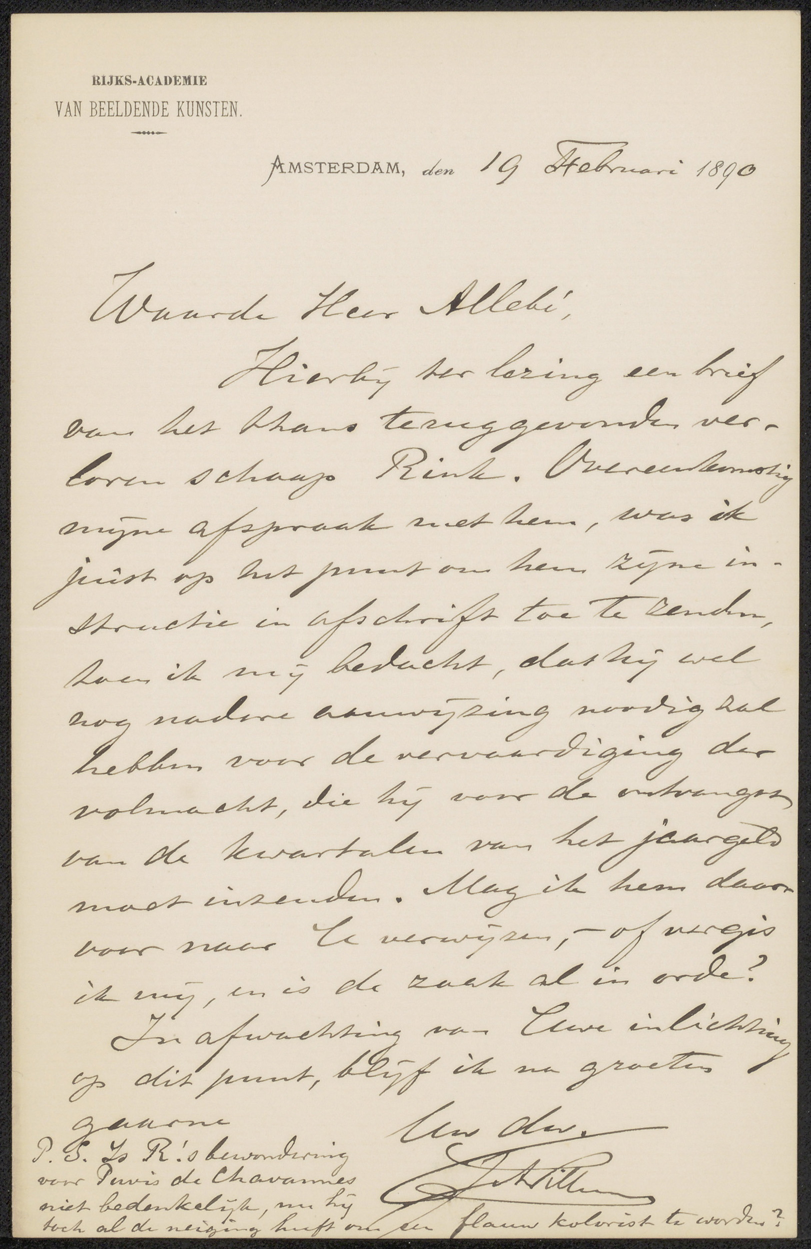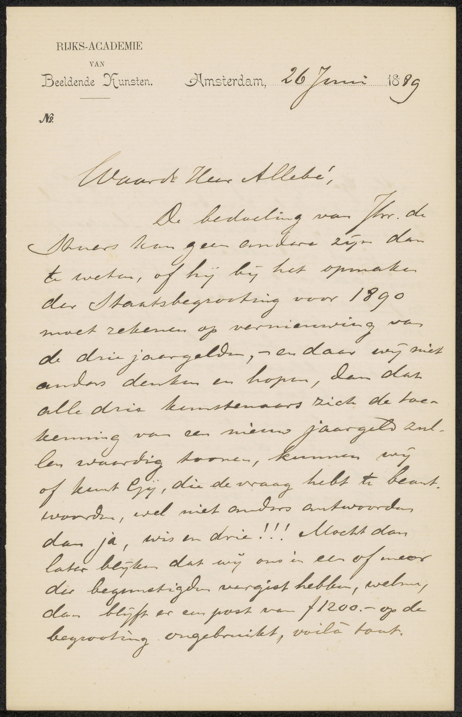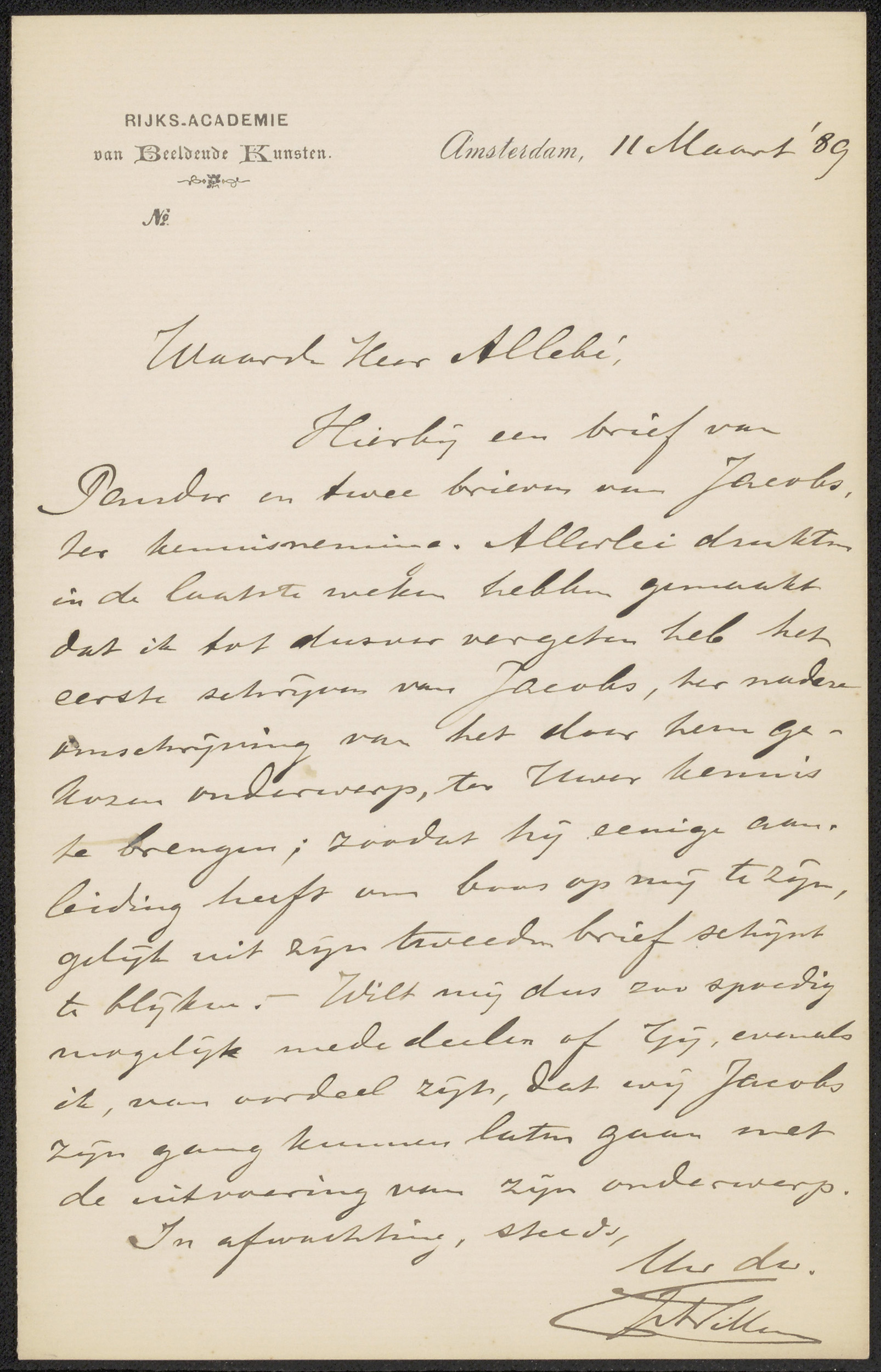 Brief aan August Allebé
