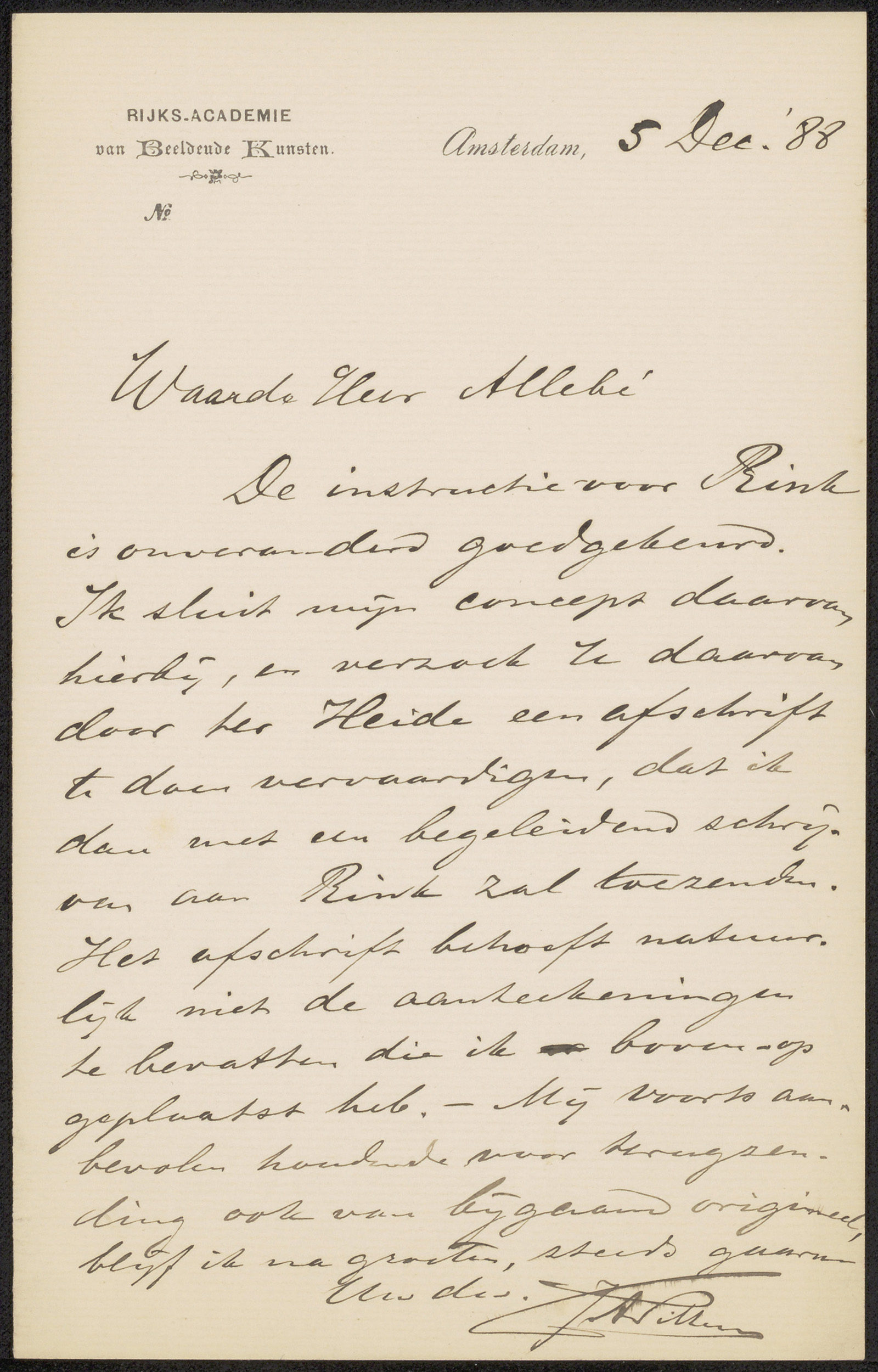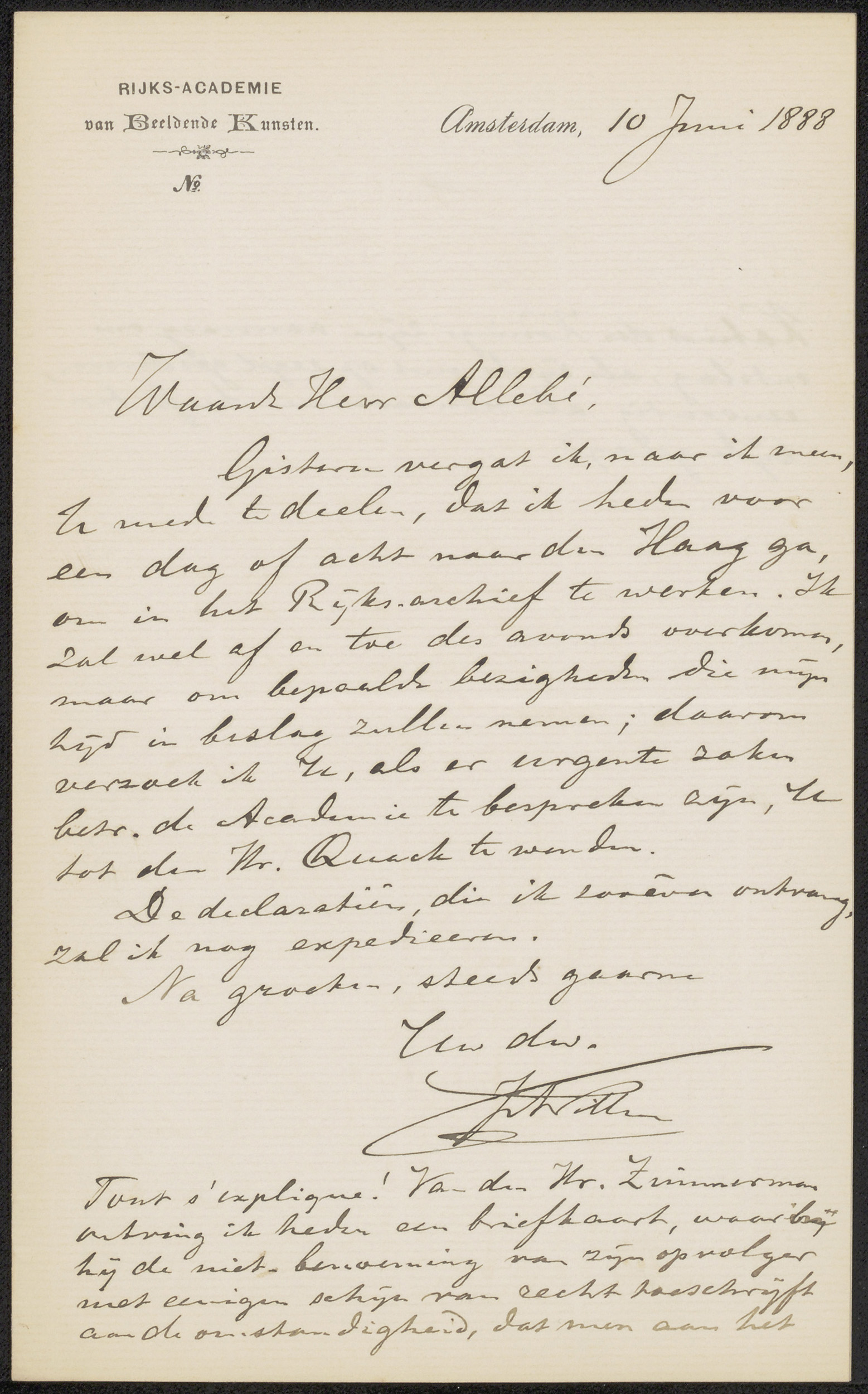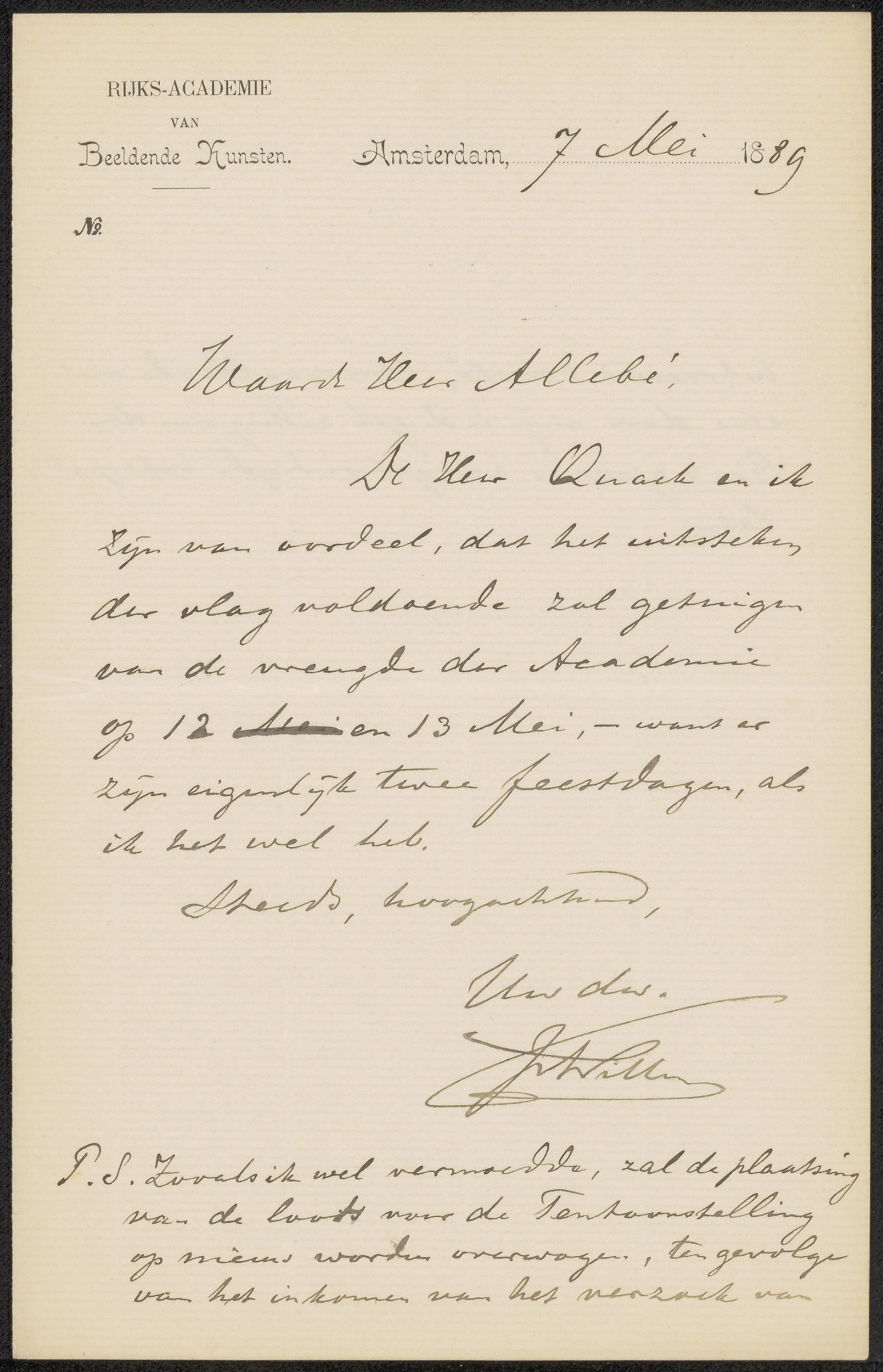 Brief aan August Allebé