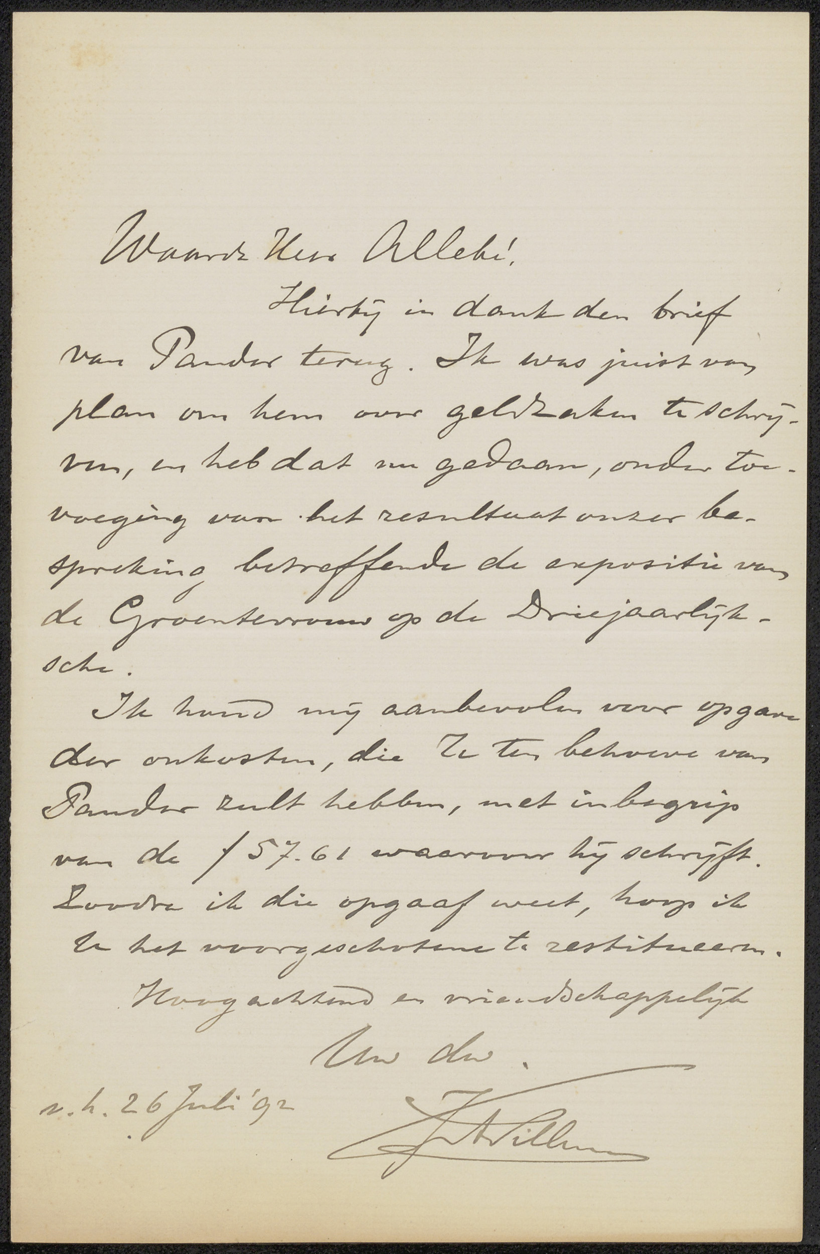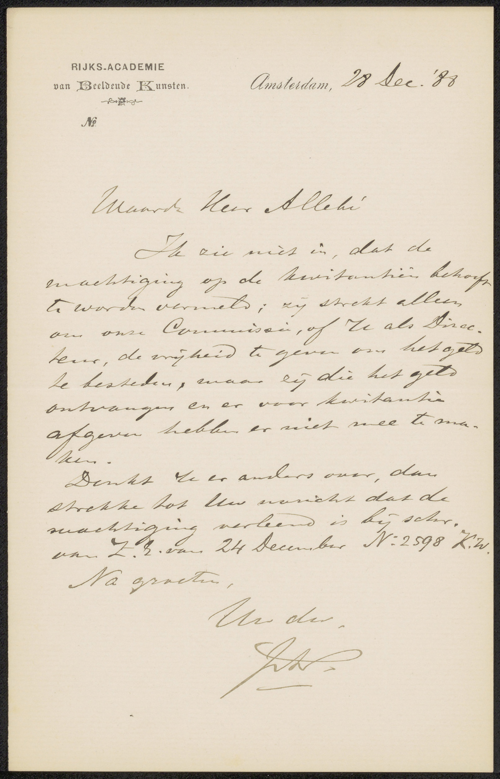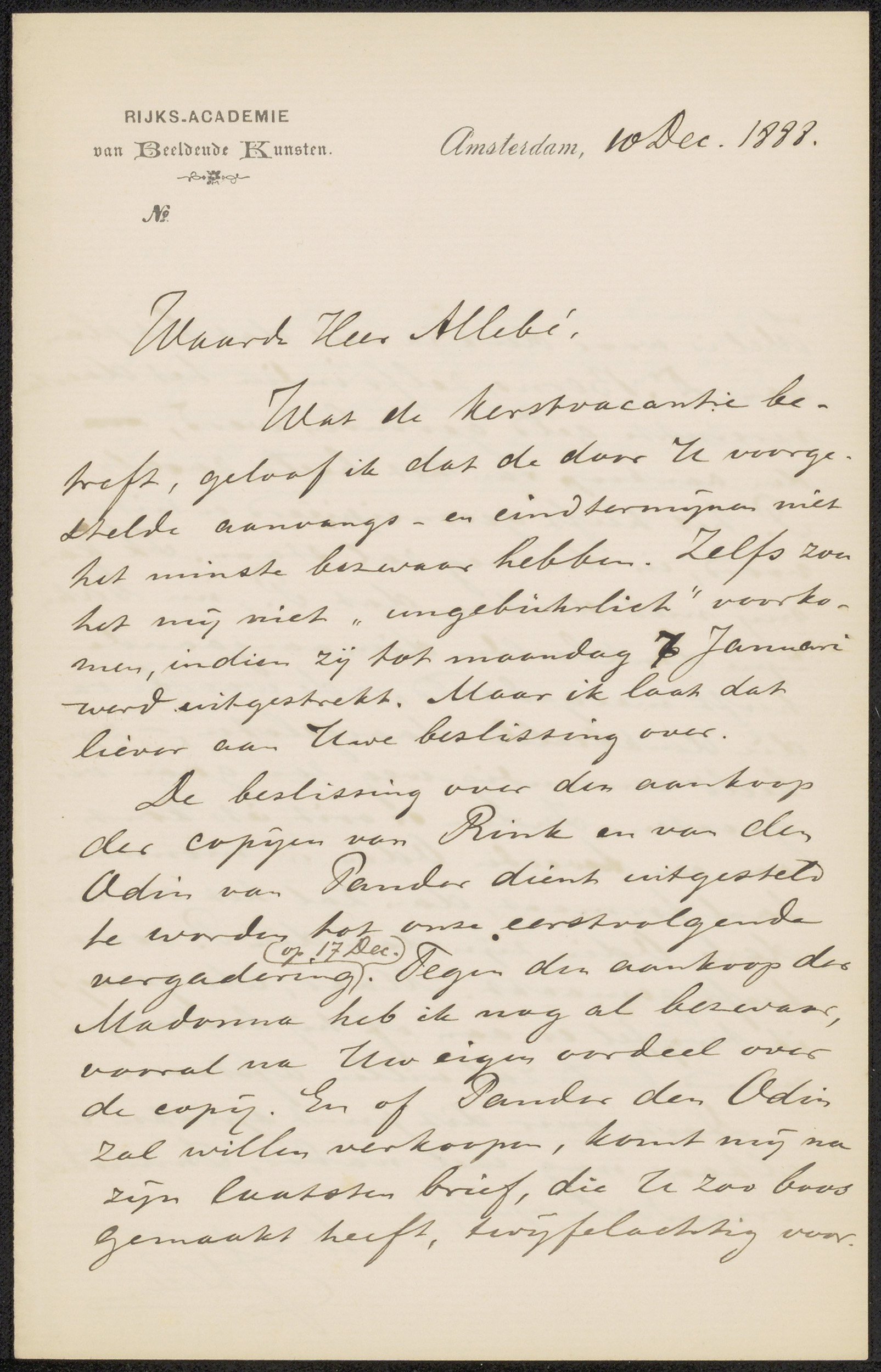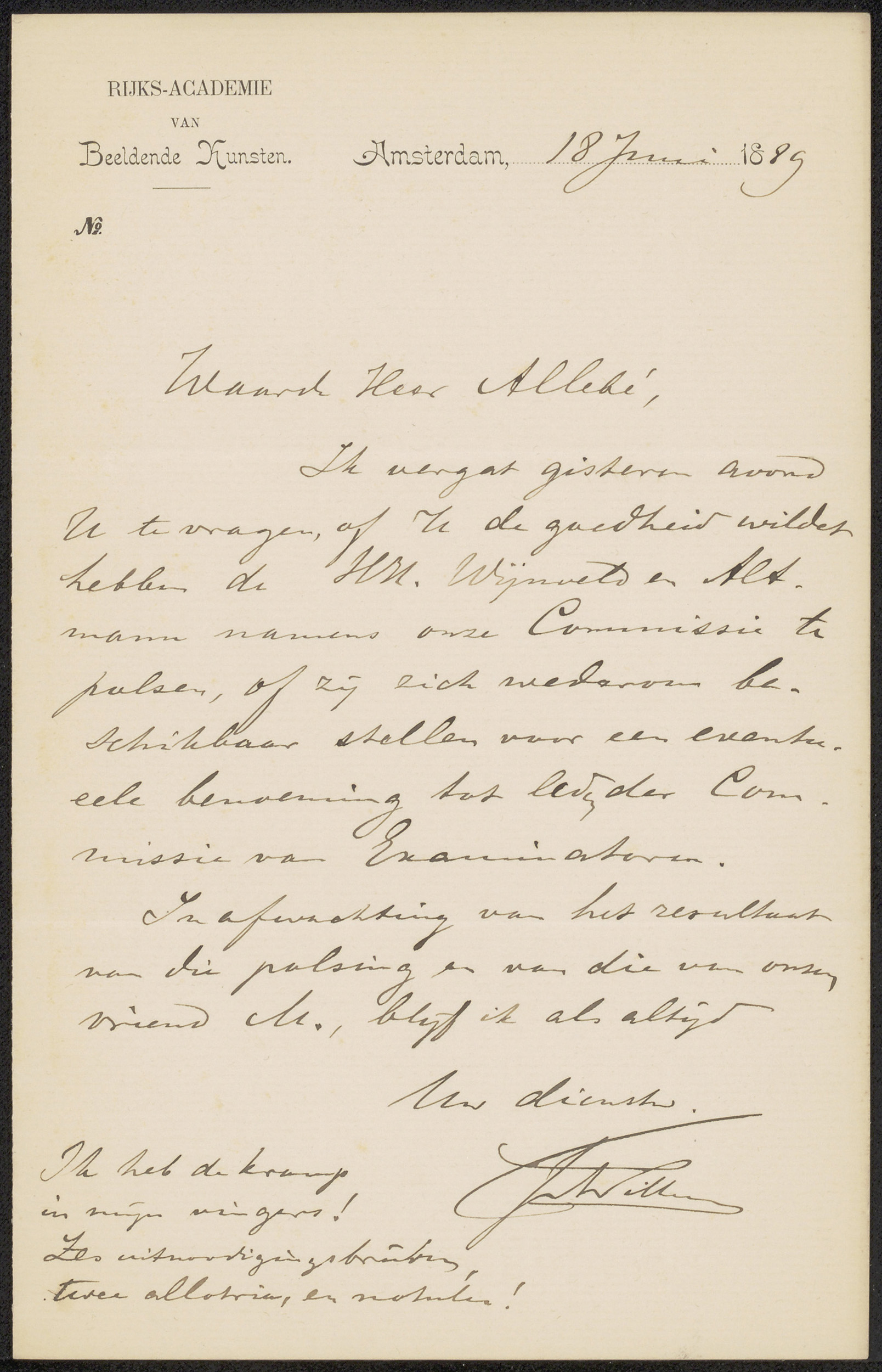 Brief aan August Allebé
