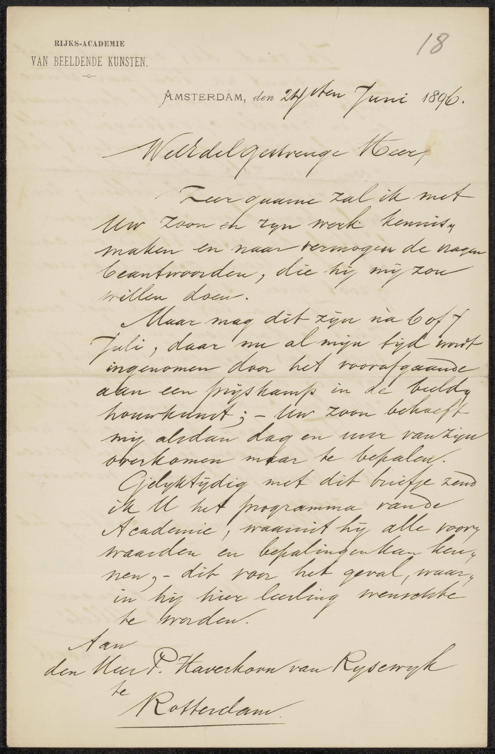 Brief aan Pieter Haverkorn van Rijsewijk