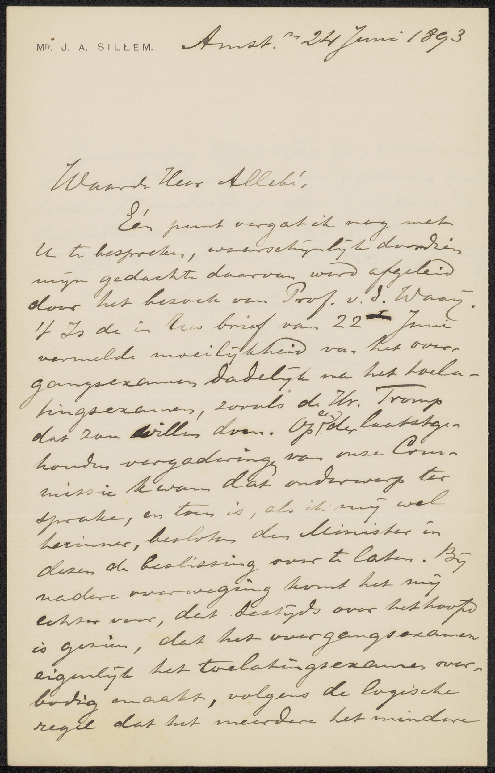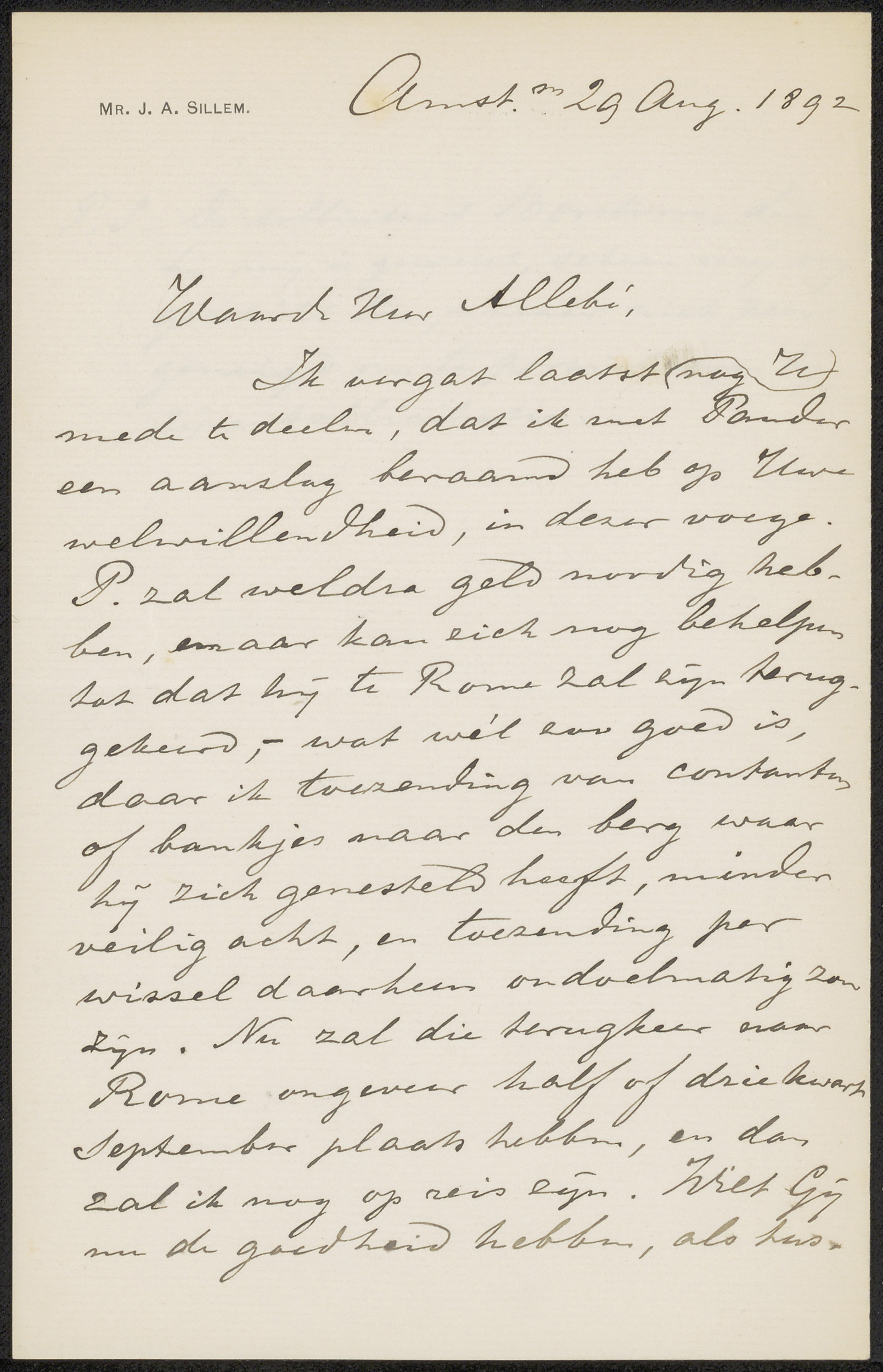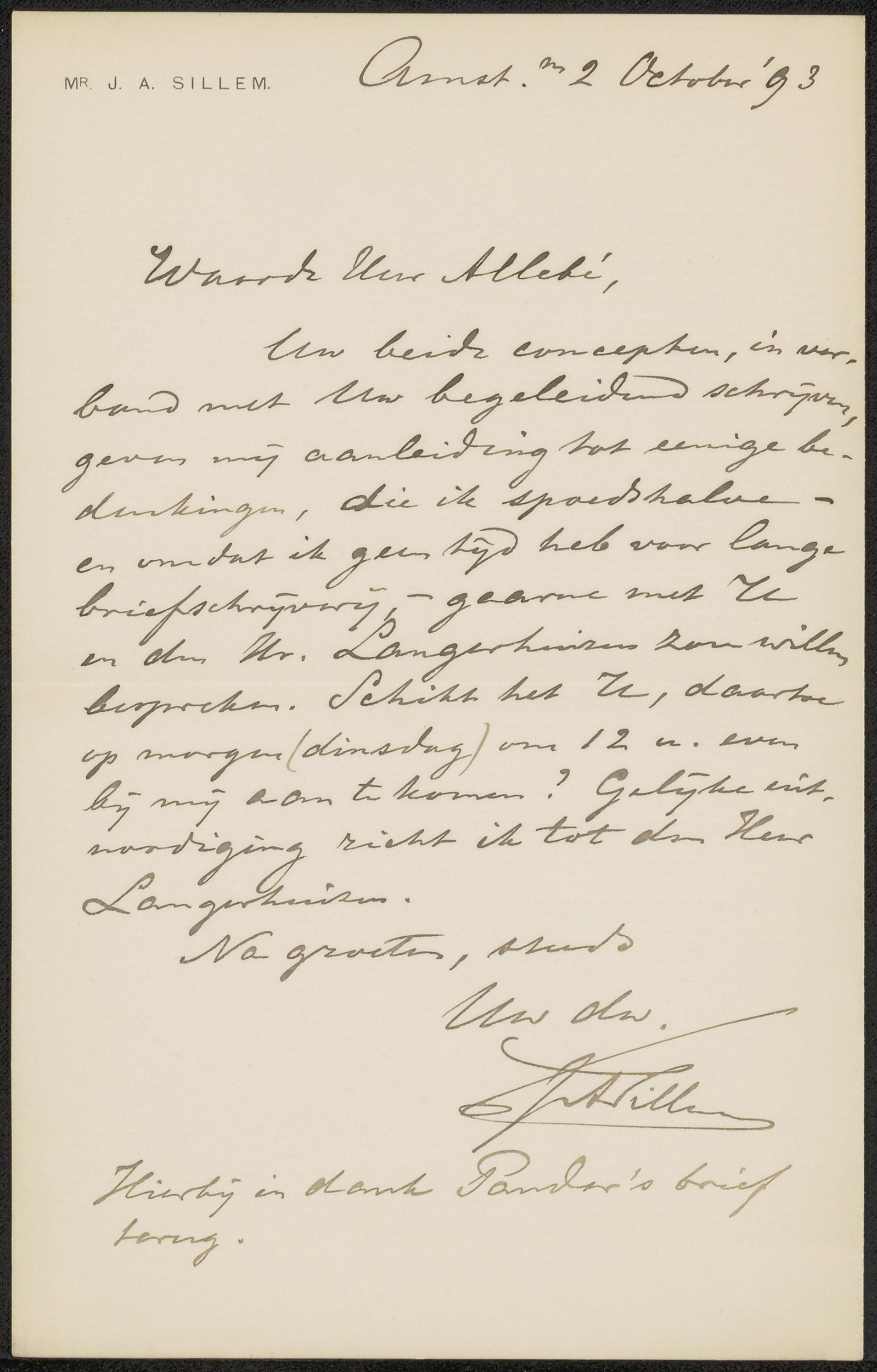 Brief aan Jérôme Alexander Sillem