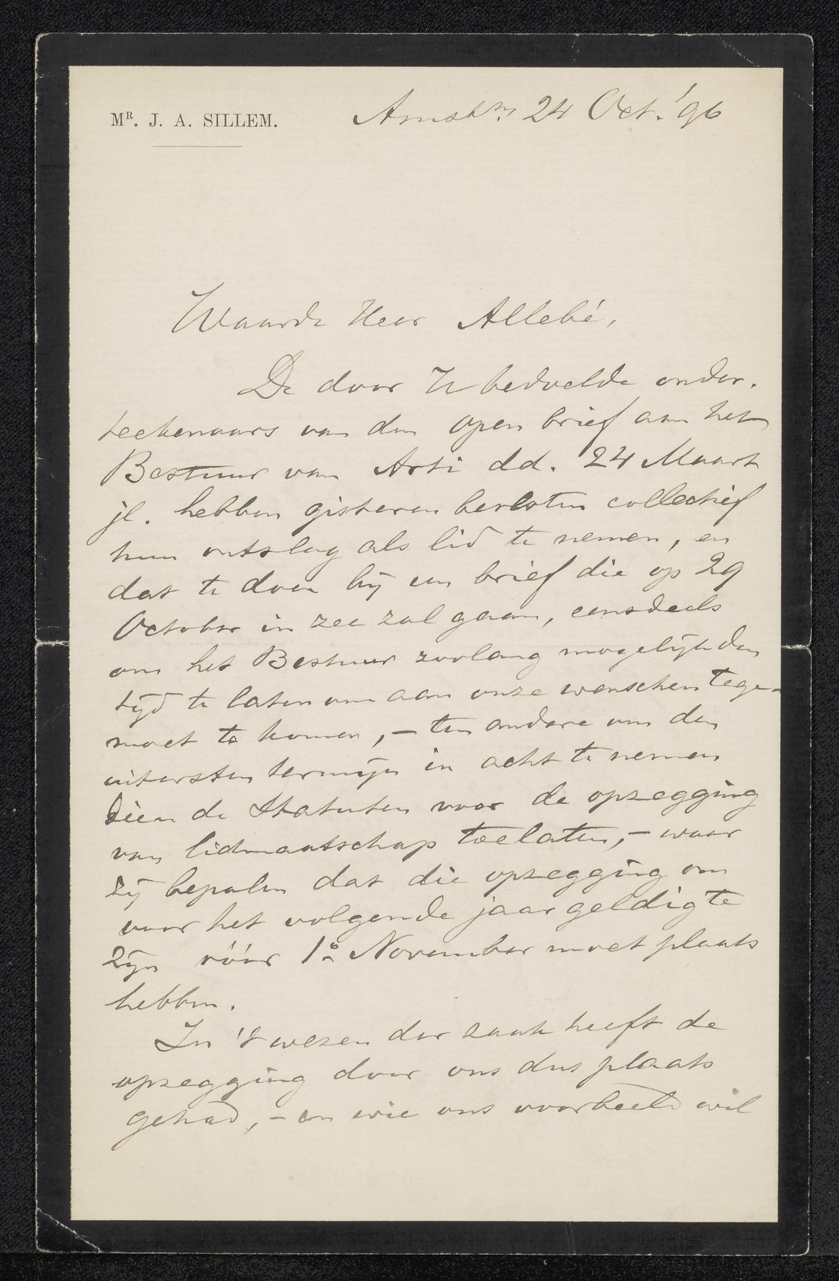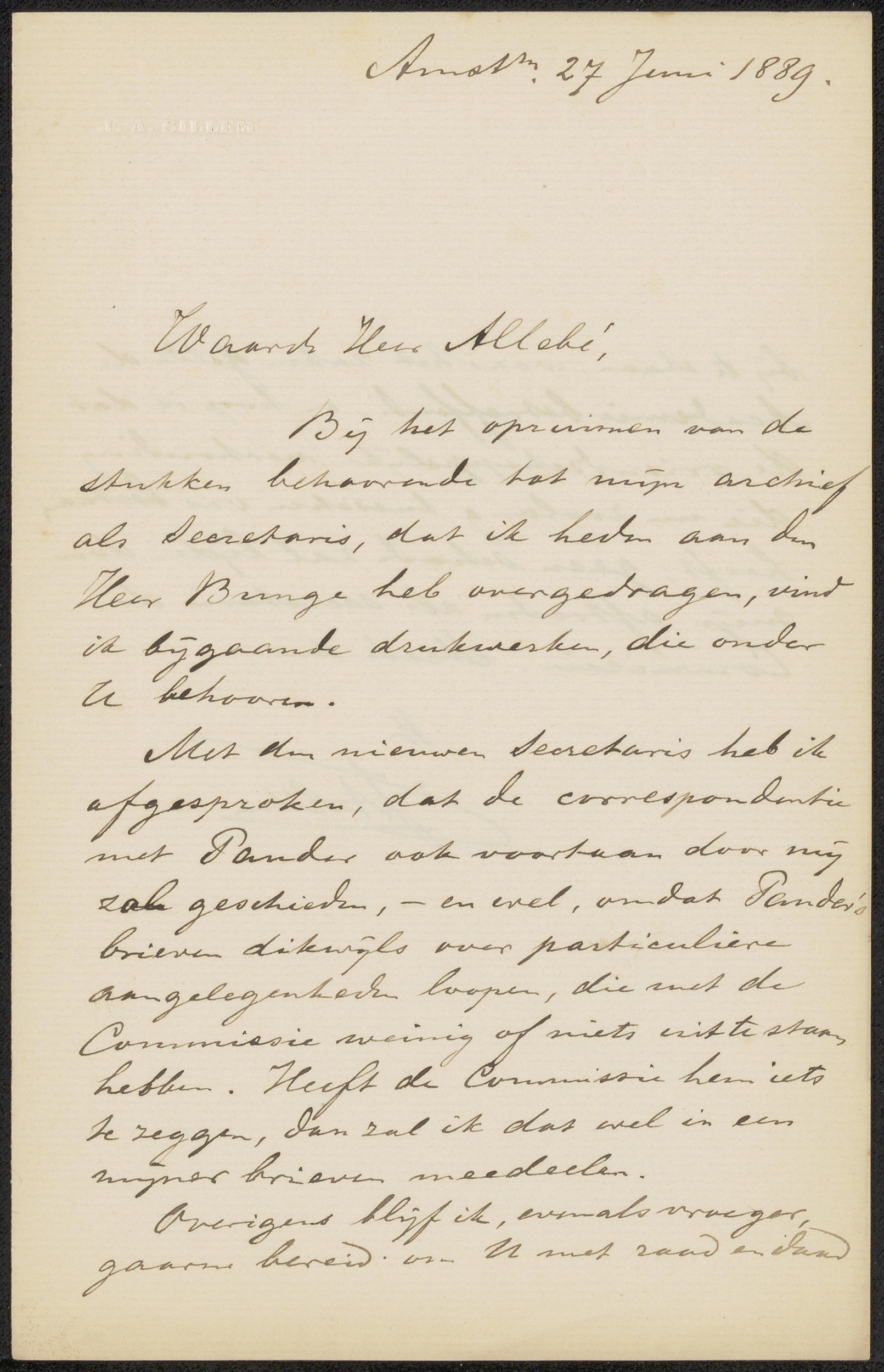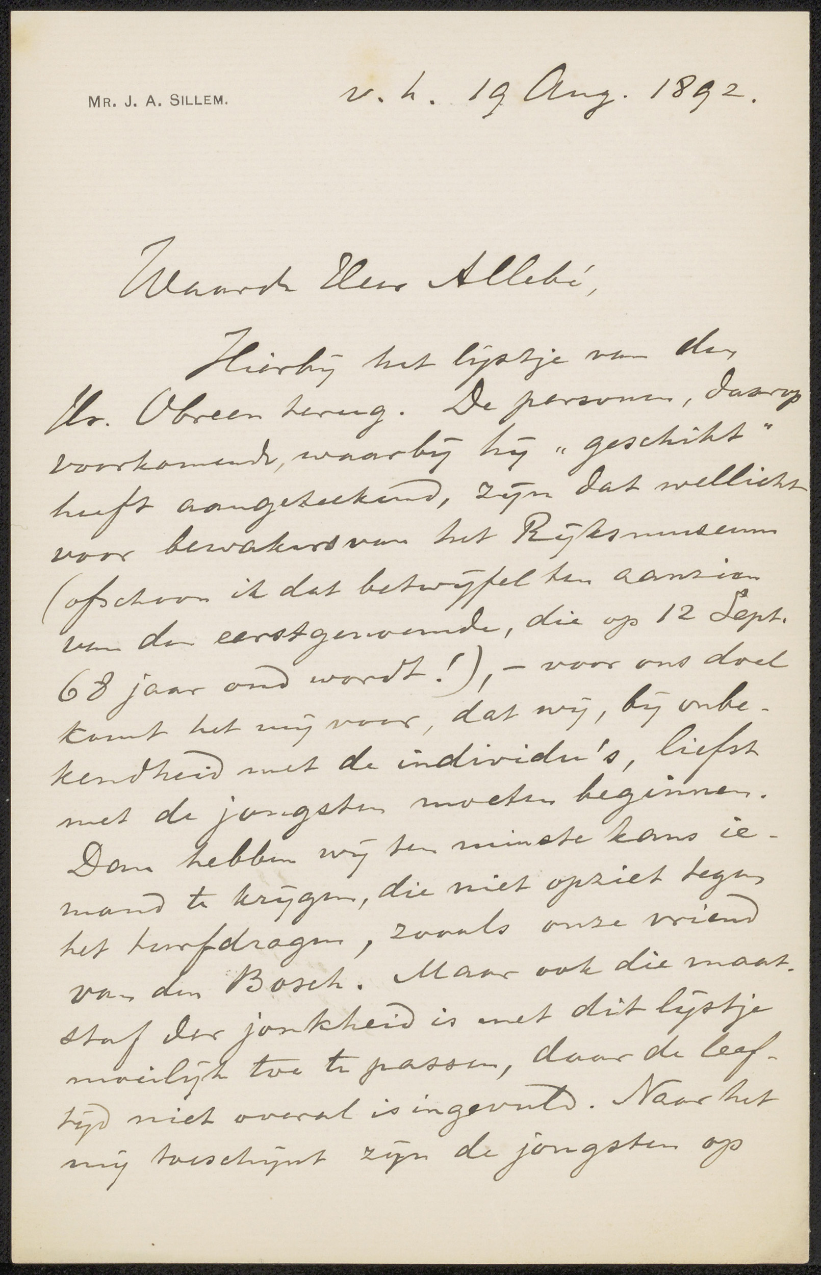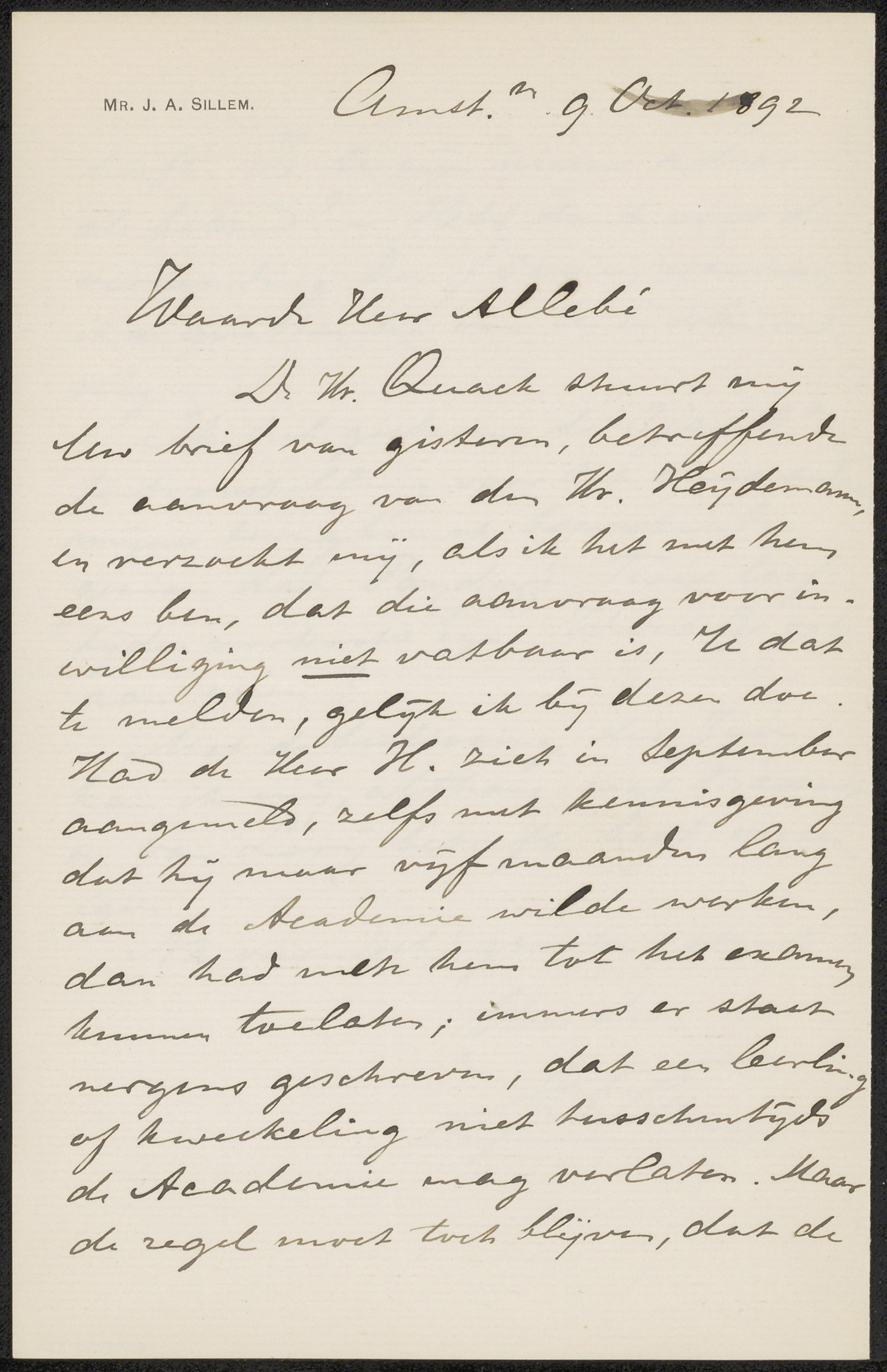 Brief aan Jérôme Alexander Sillem