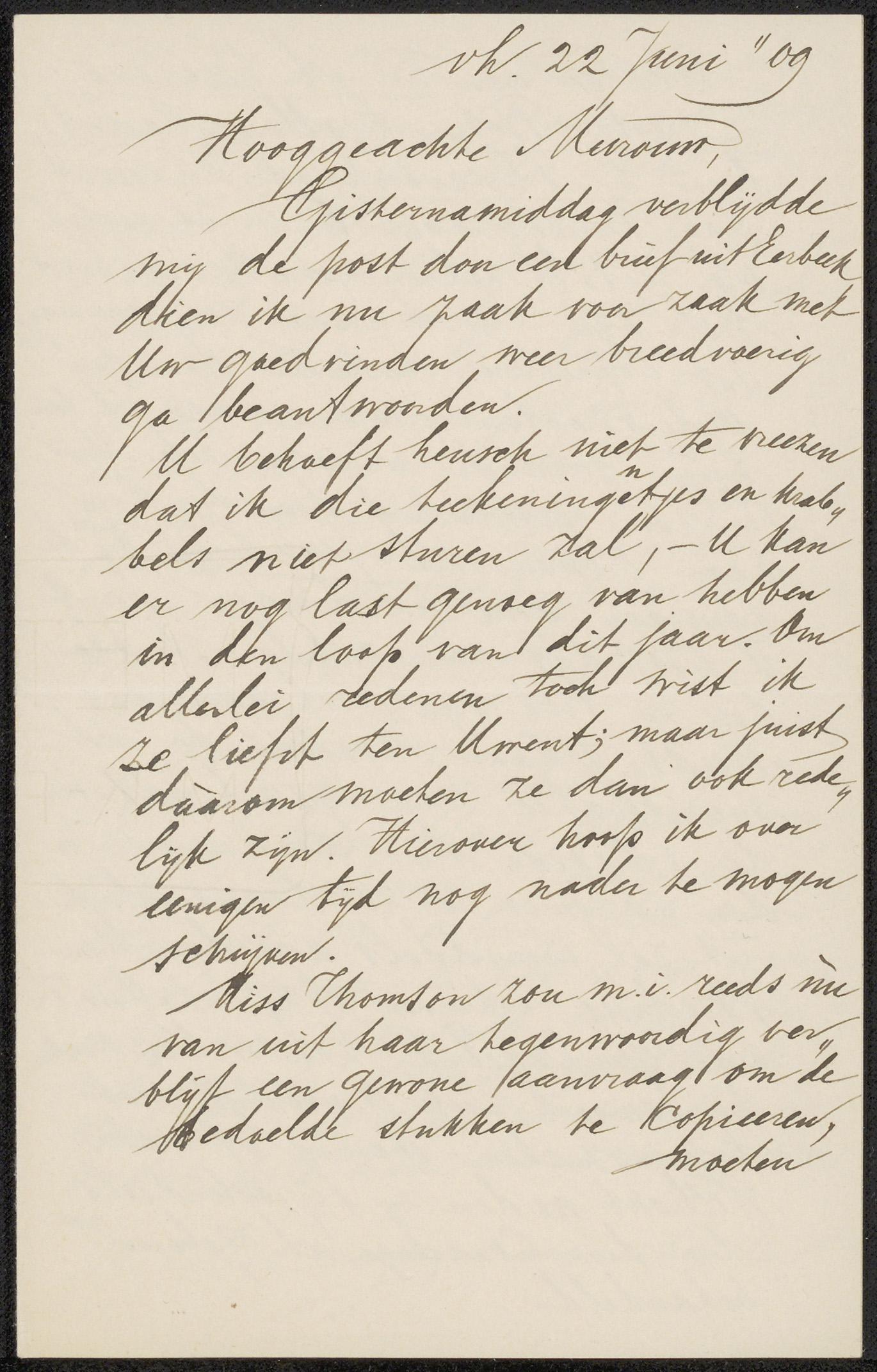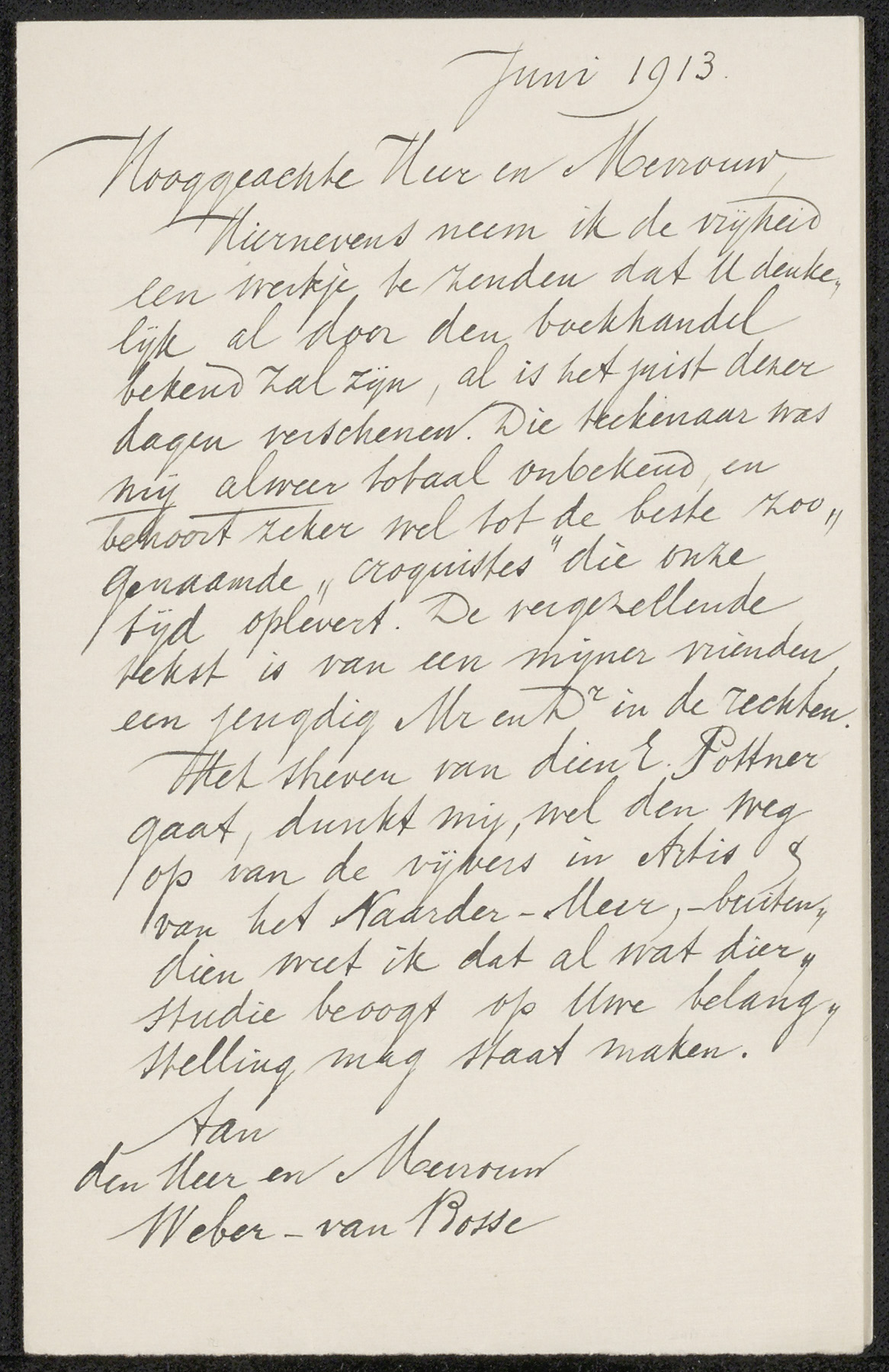 Brief aan Anne Antoinette Weber-Van Bosse