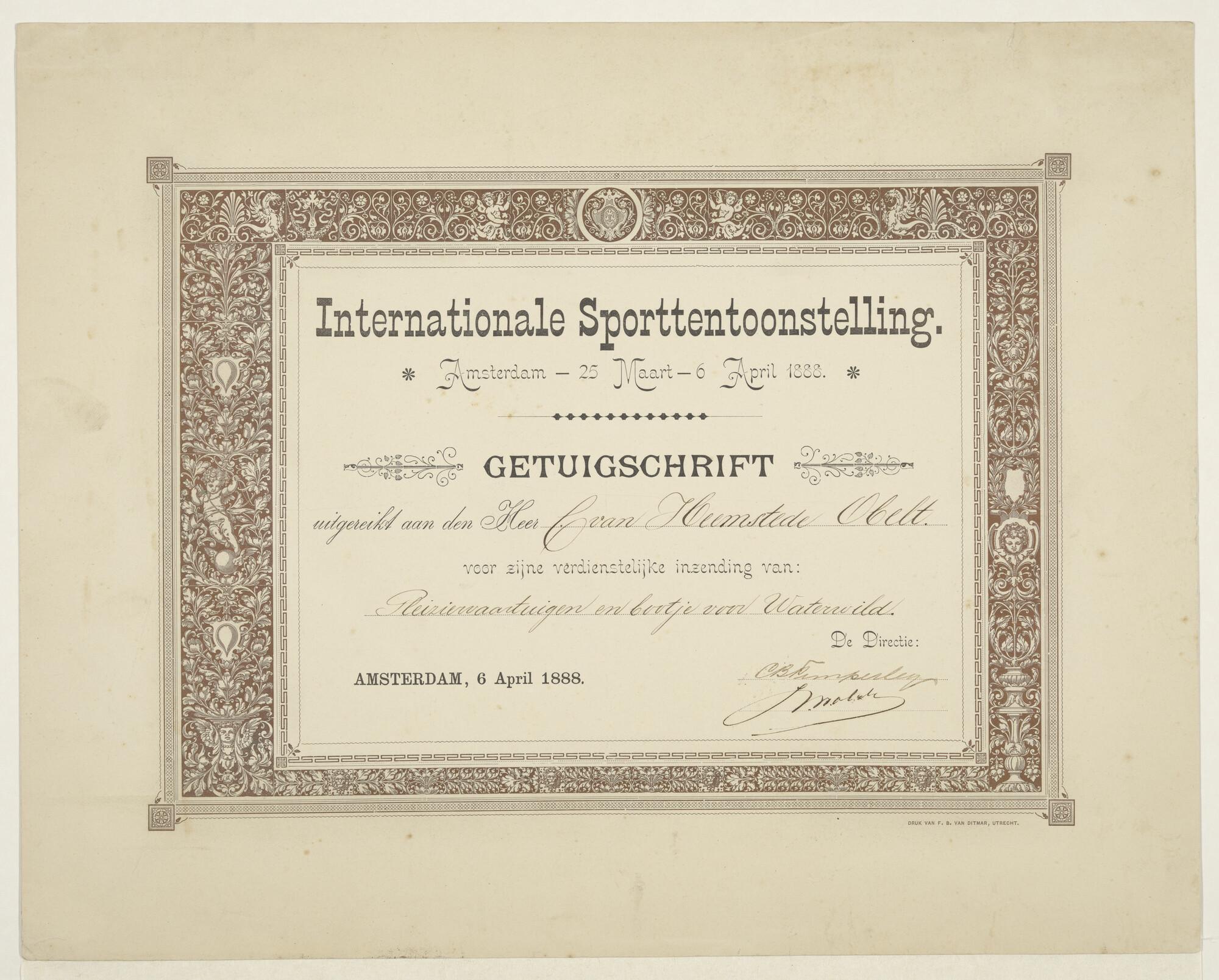 Diploma eerste stuurman grote vaart van de Inrigting...
