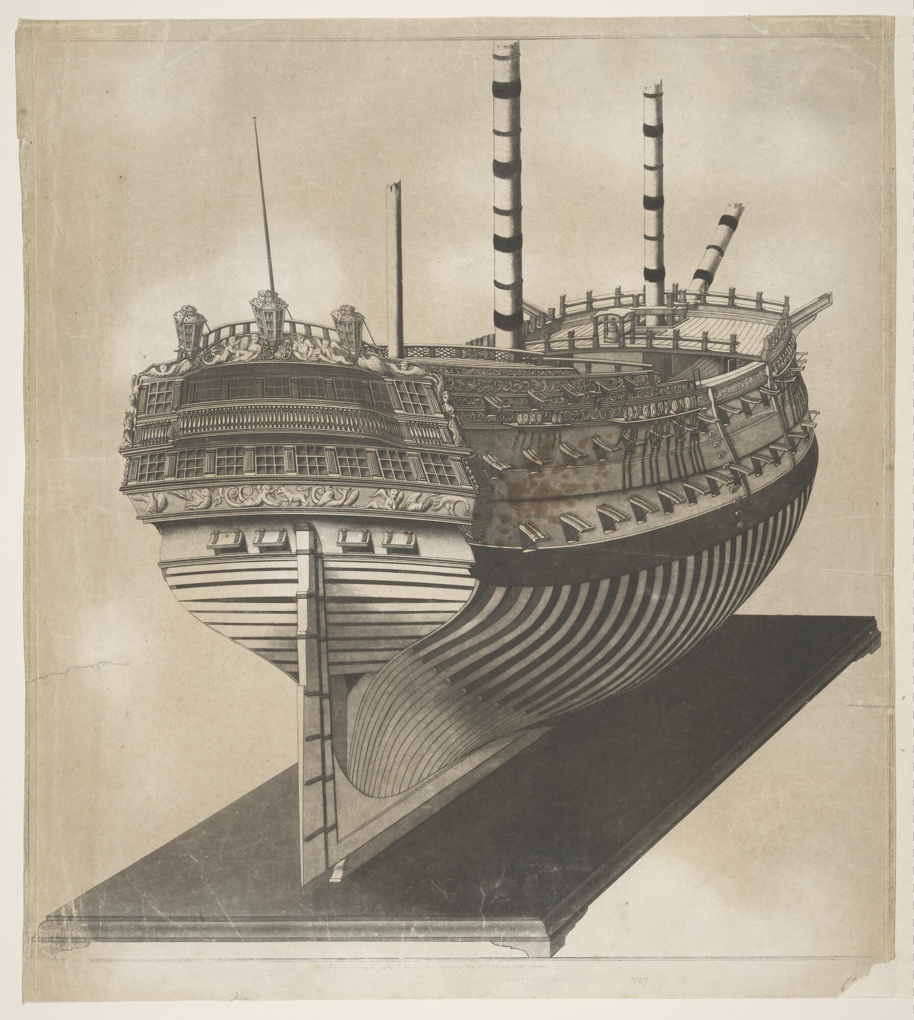 Een model van een Engels oorlogsschip, stuurboord ac...