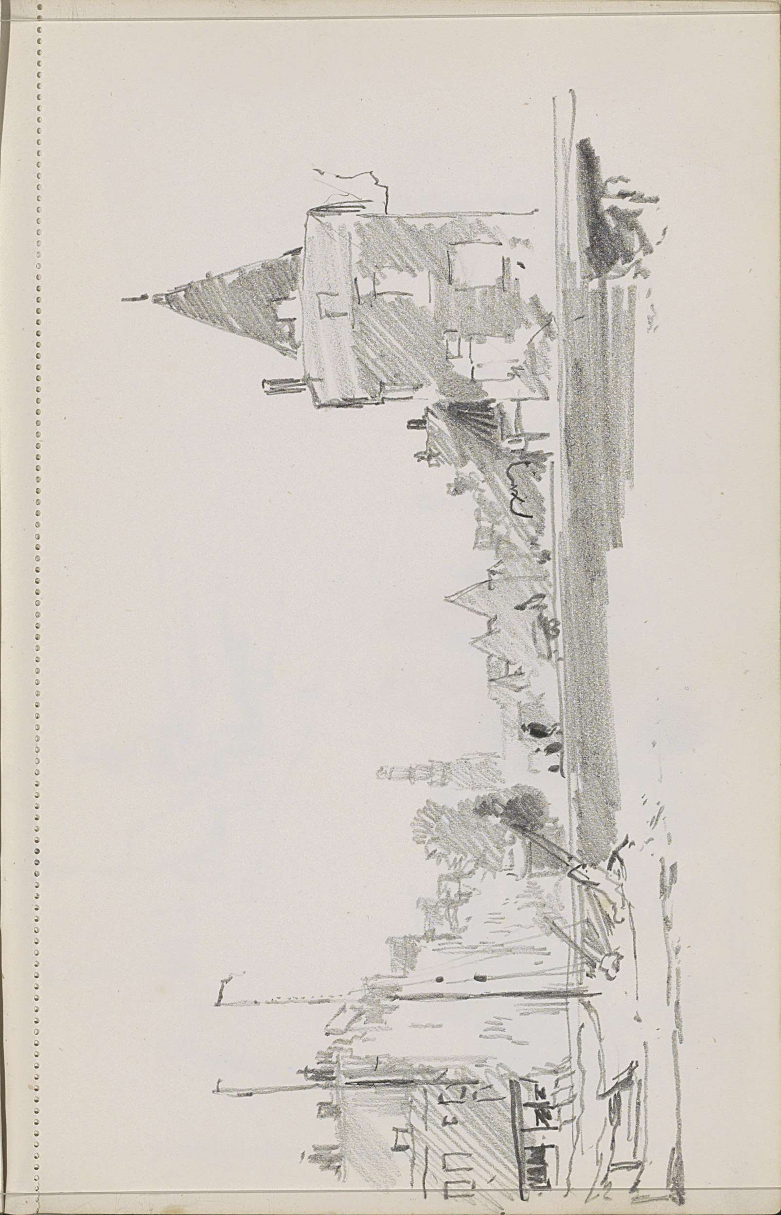 Stadsgezicht met een kerktoren