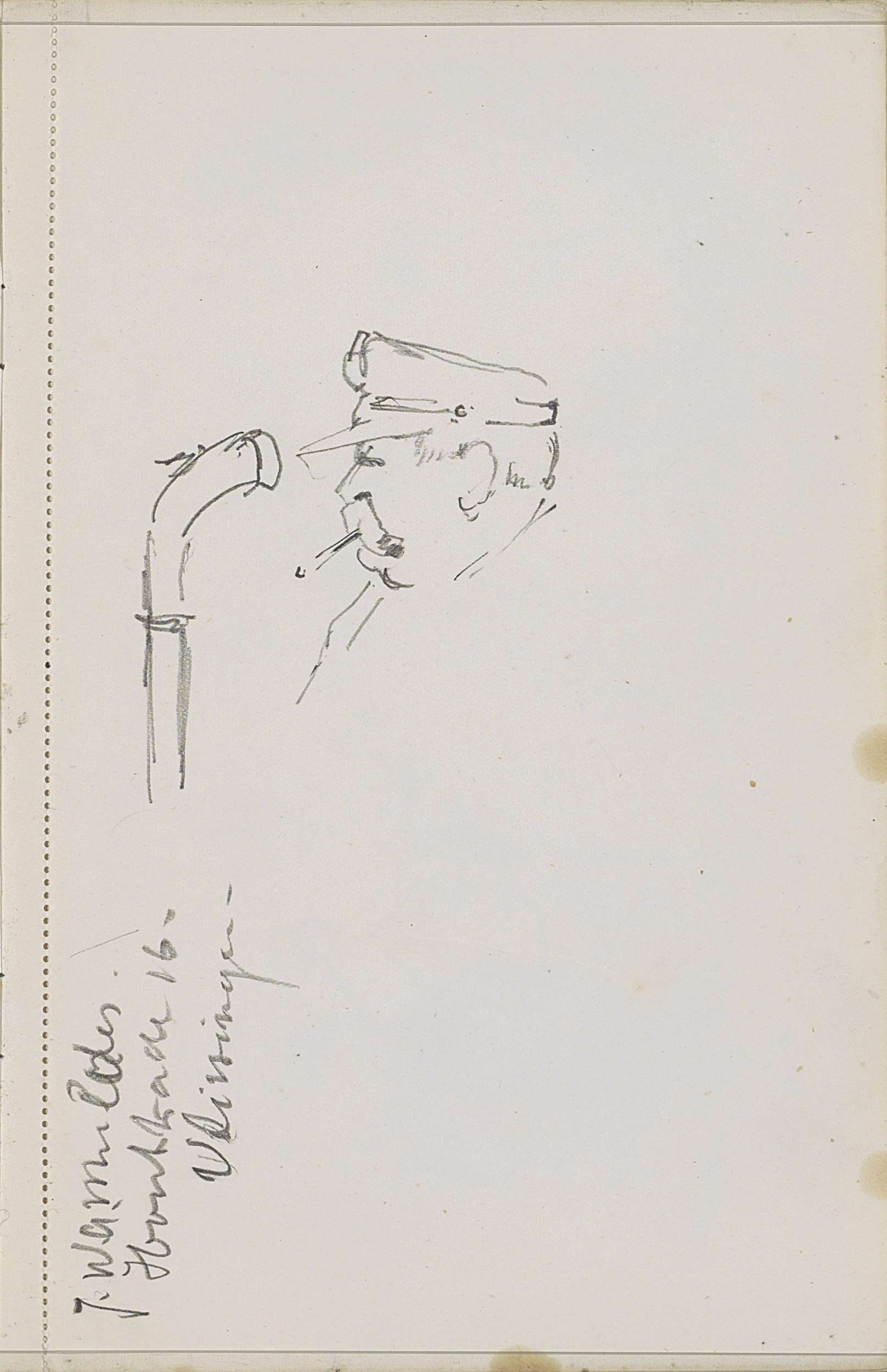 Man met een pet en sigaret naast een pijp