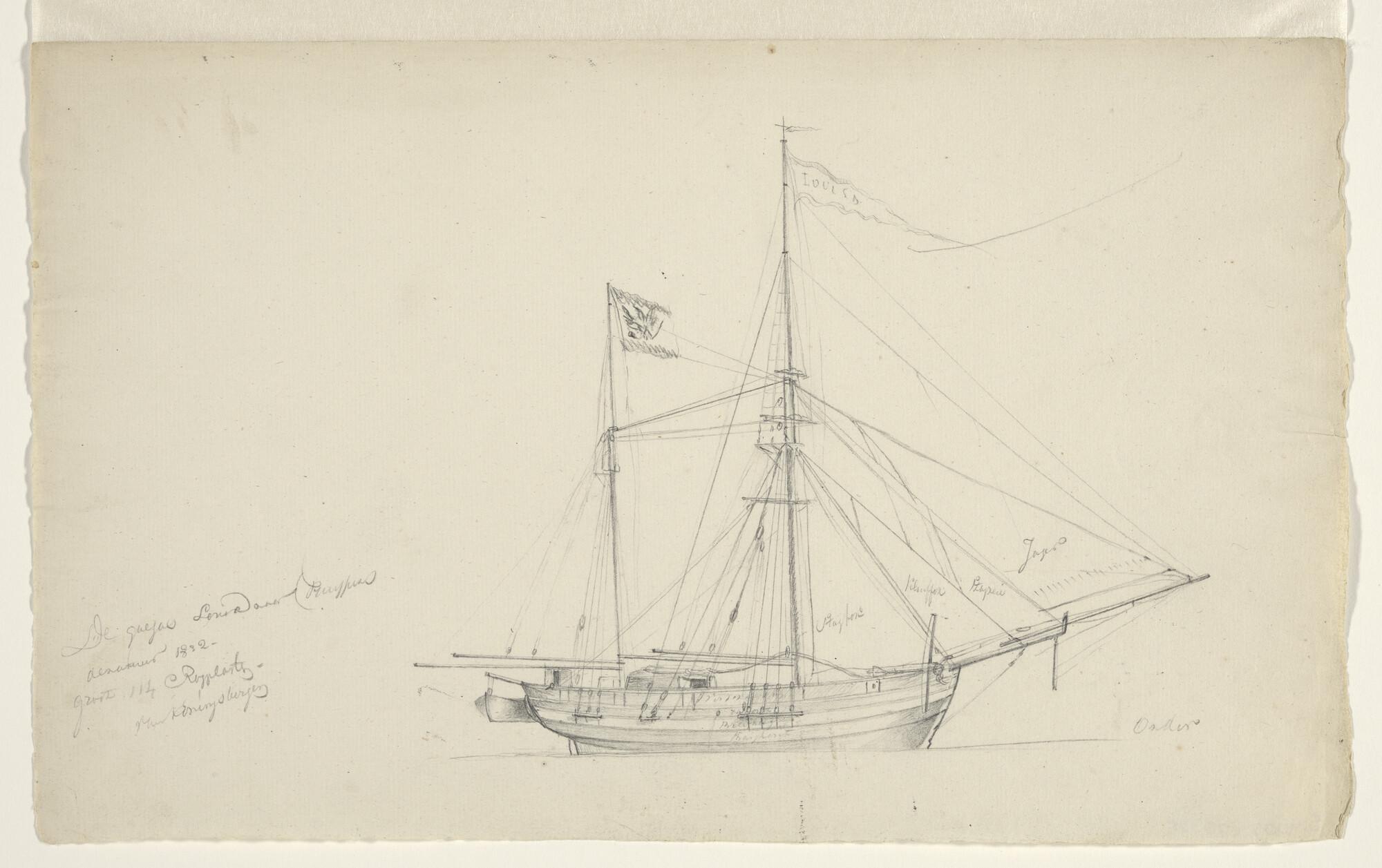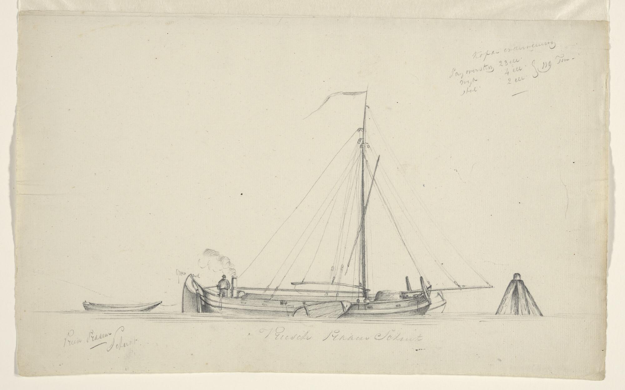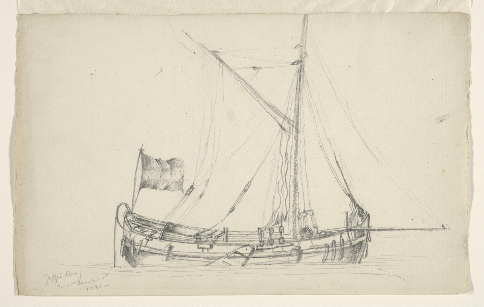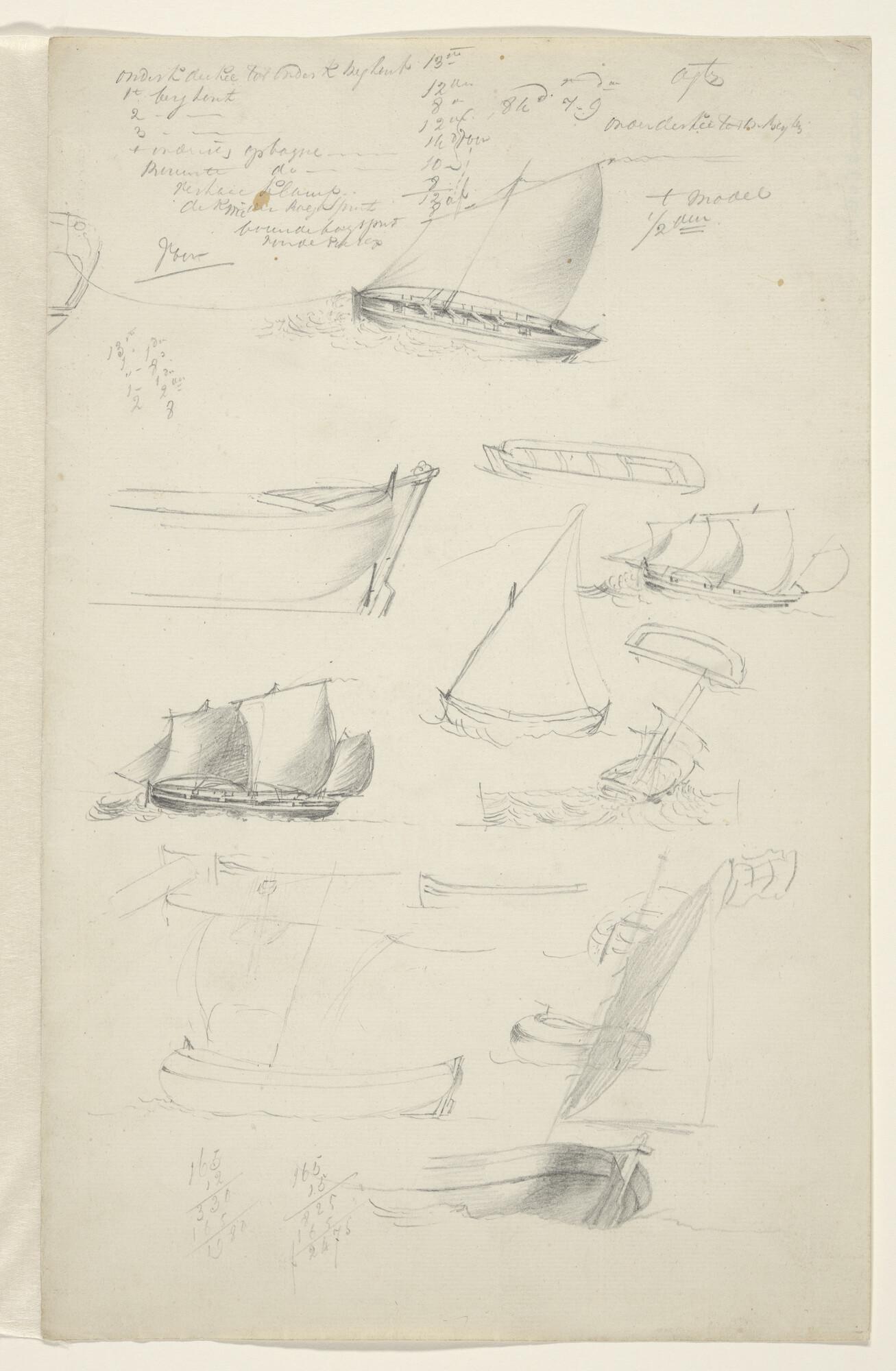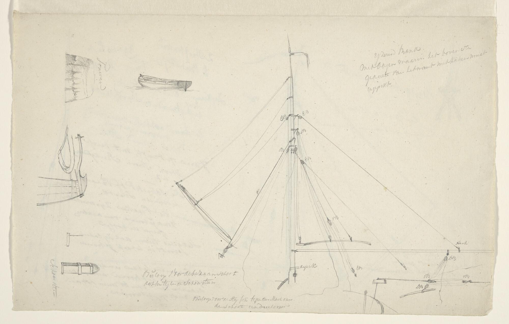 Tuigstudie van een Friese Tjalk. Verso: idem.