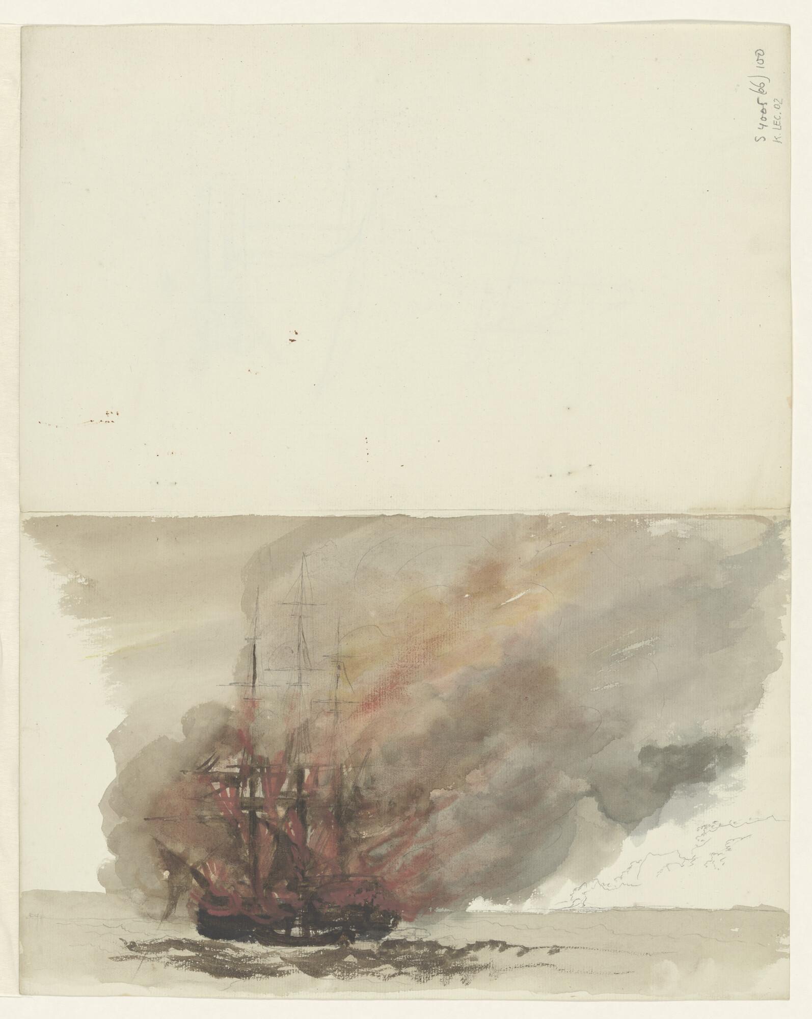 Een brandend driemastschip