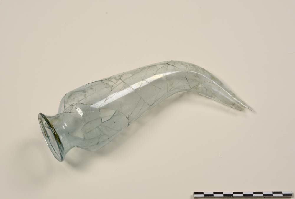 Drinkhoorn van lichtblauw glas uit de Romeinse tijd