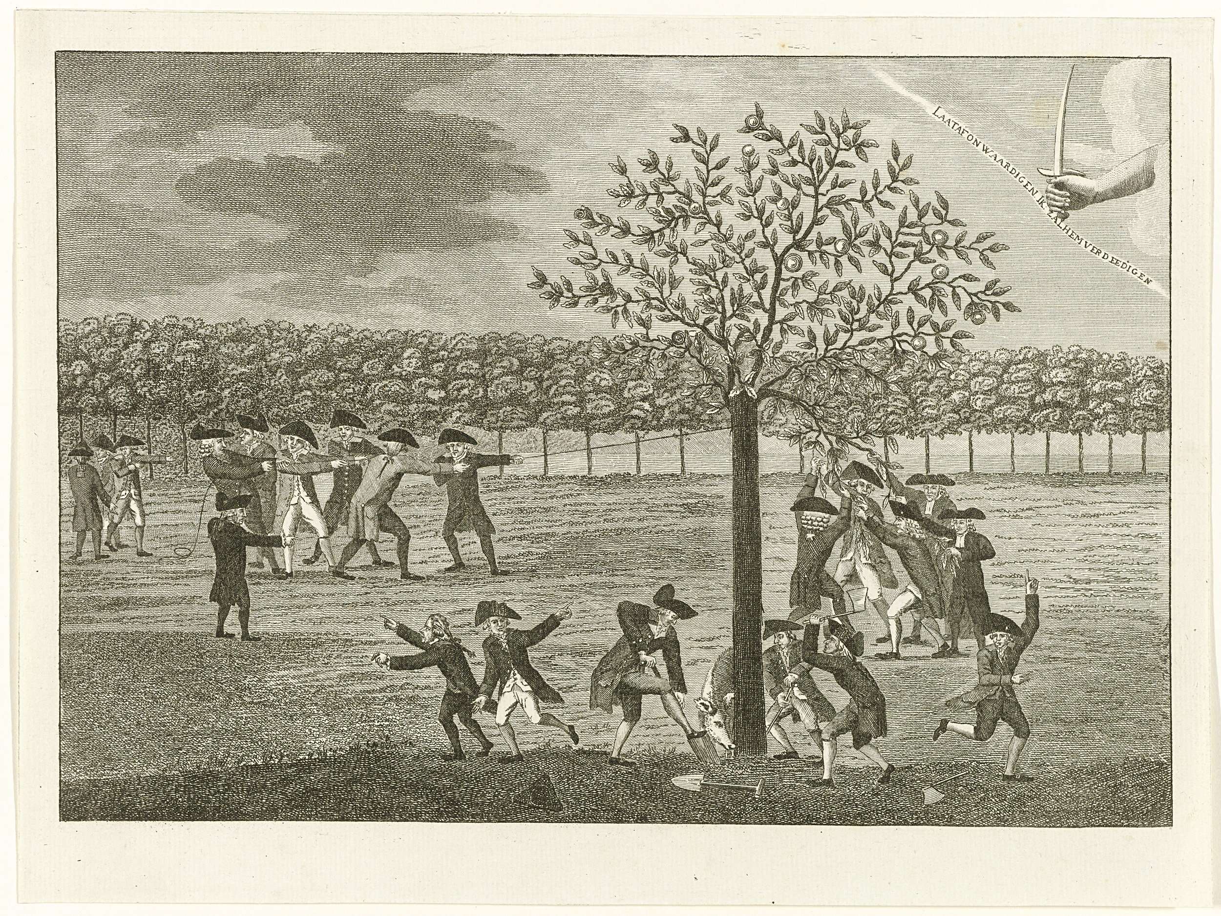 Spotprent op de pogingen de Oranjeboom omver te trek...