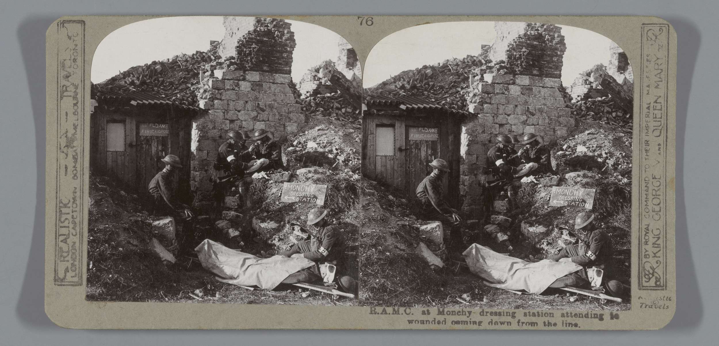 Attending to wounded, on the Menin Road, Ypres, duri...