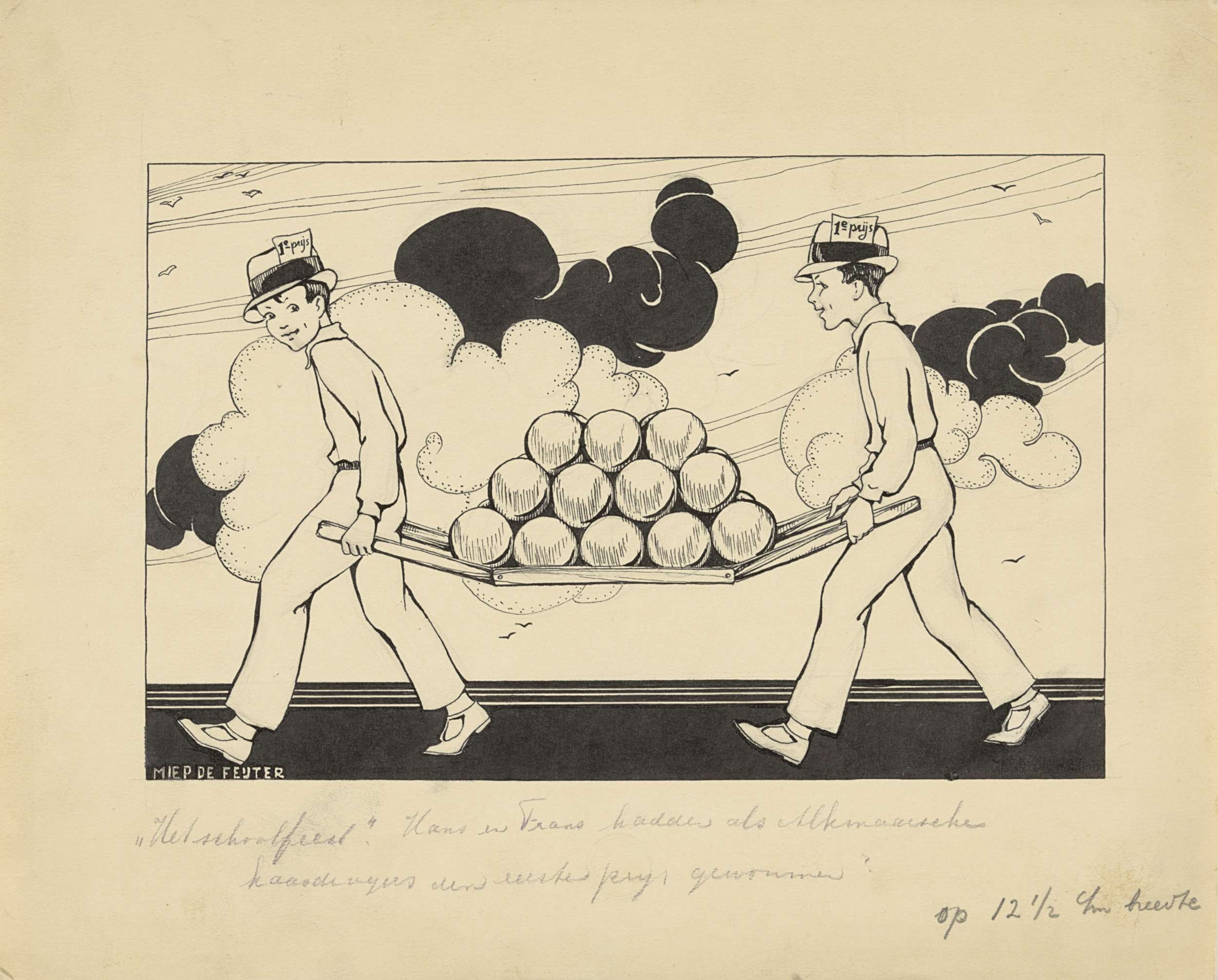 Hans en Frans verkleed als Alkmaarse kaasdragers