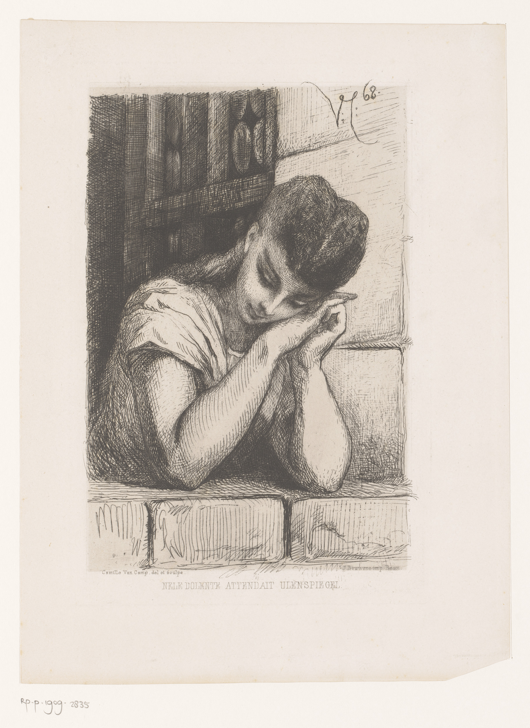 Nele leunt uit het raam, wachtend op Tijl Uilenspiegel
