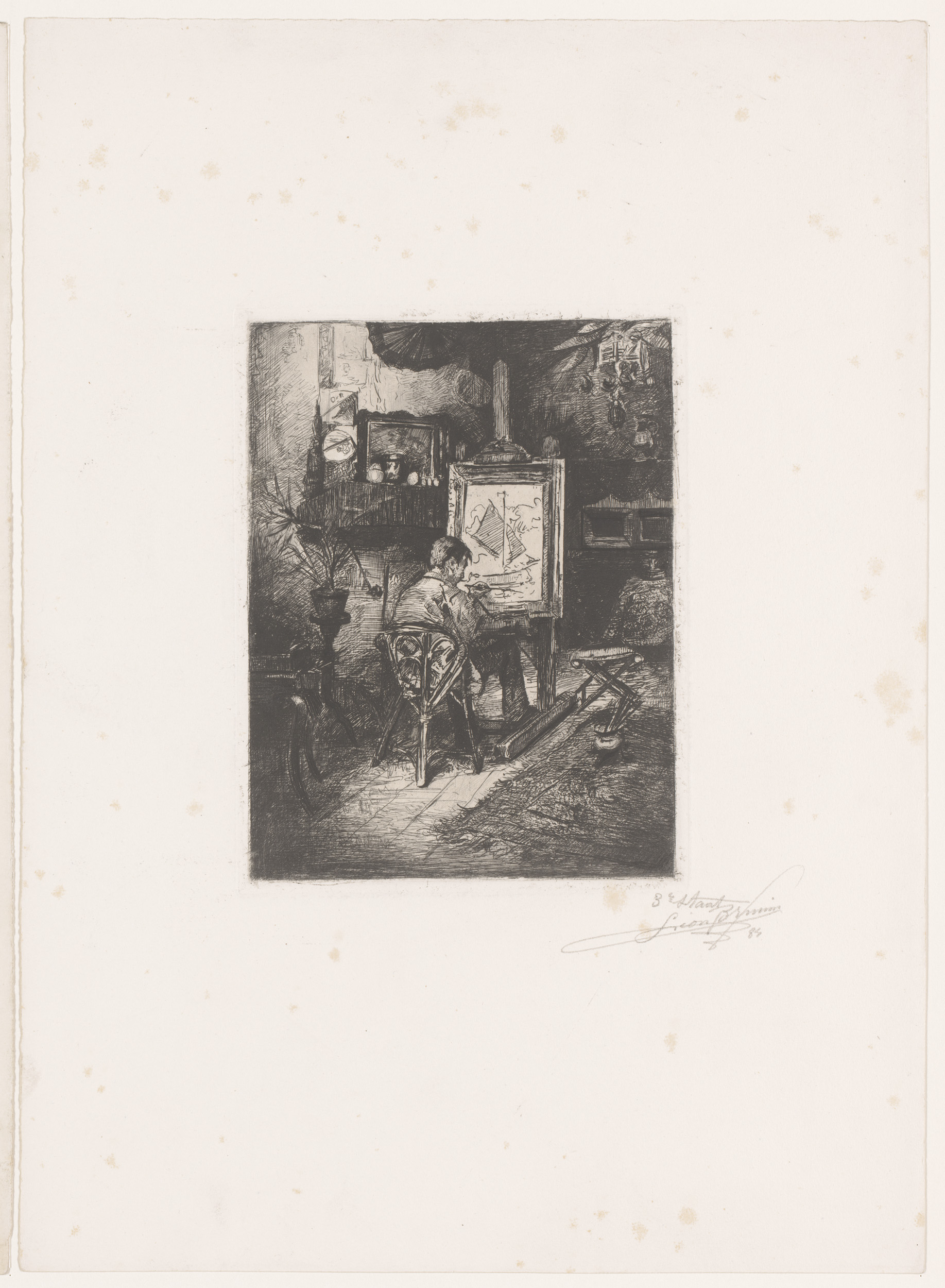 Schilder in zijn atelier