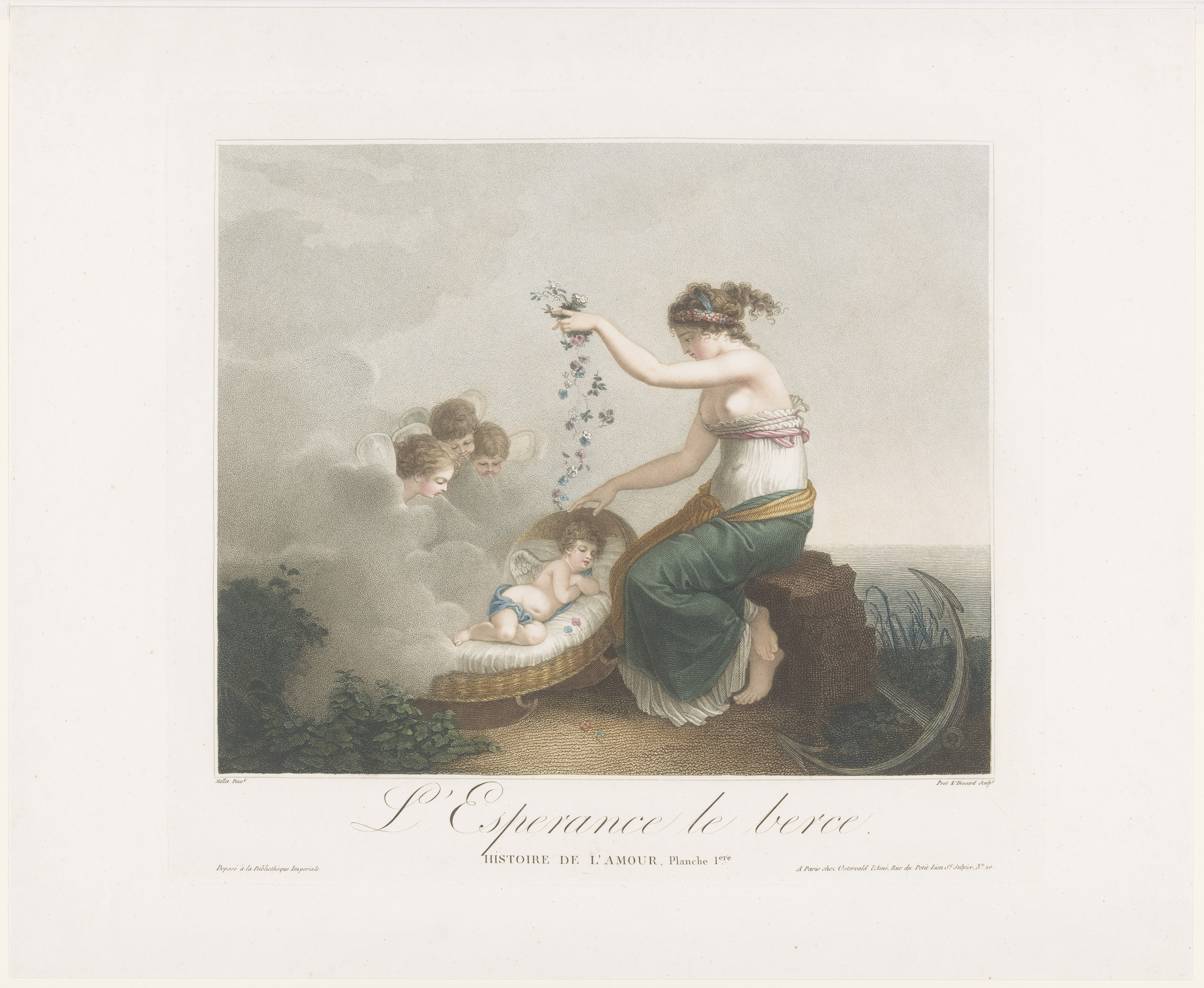 Personificatie van Hoop (Spes) wiegt een Amor in slaap