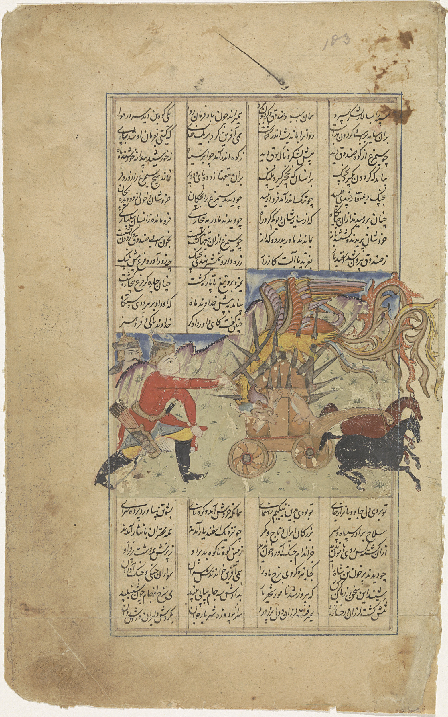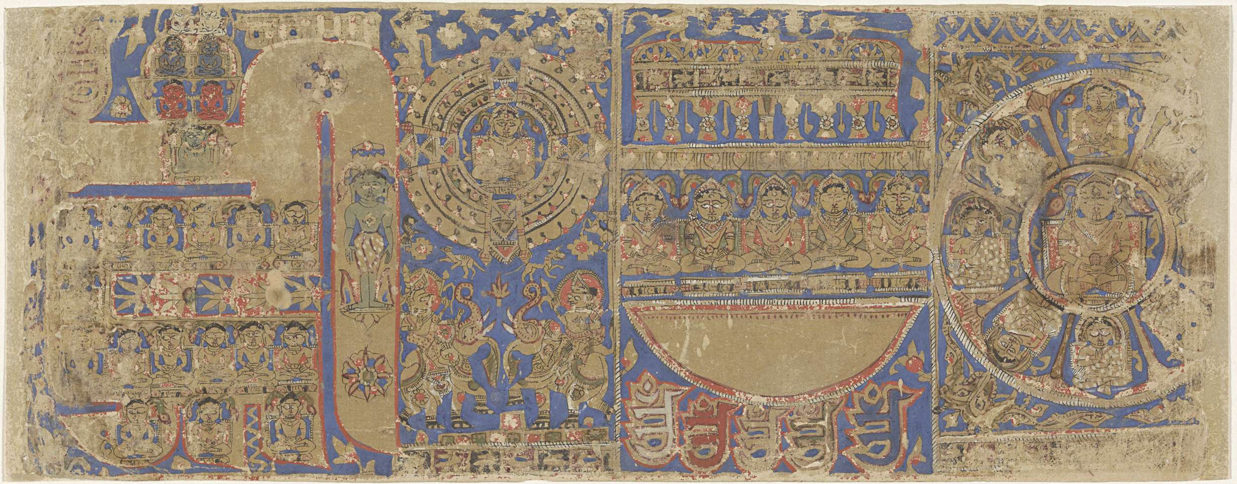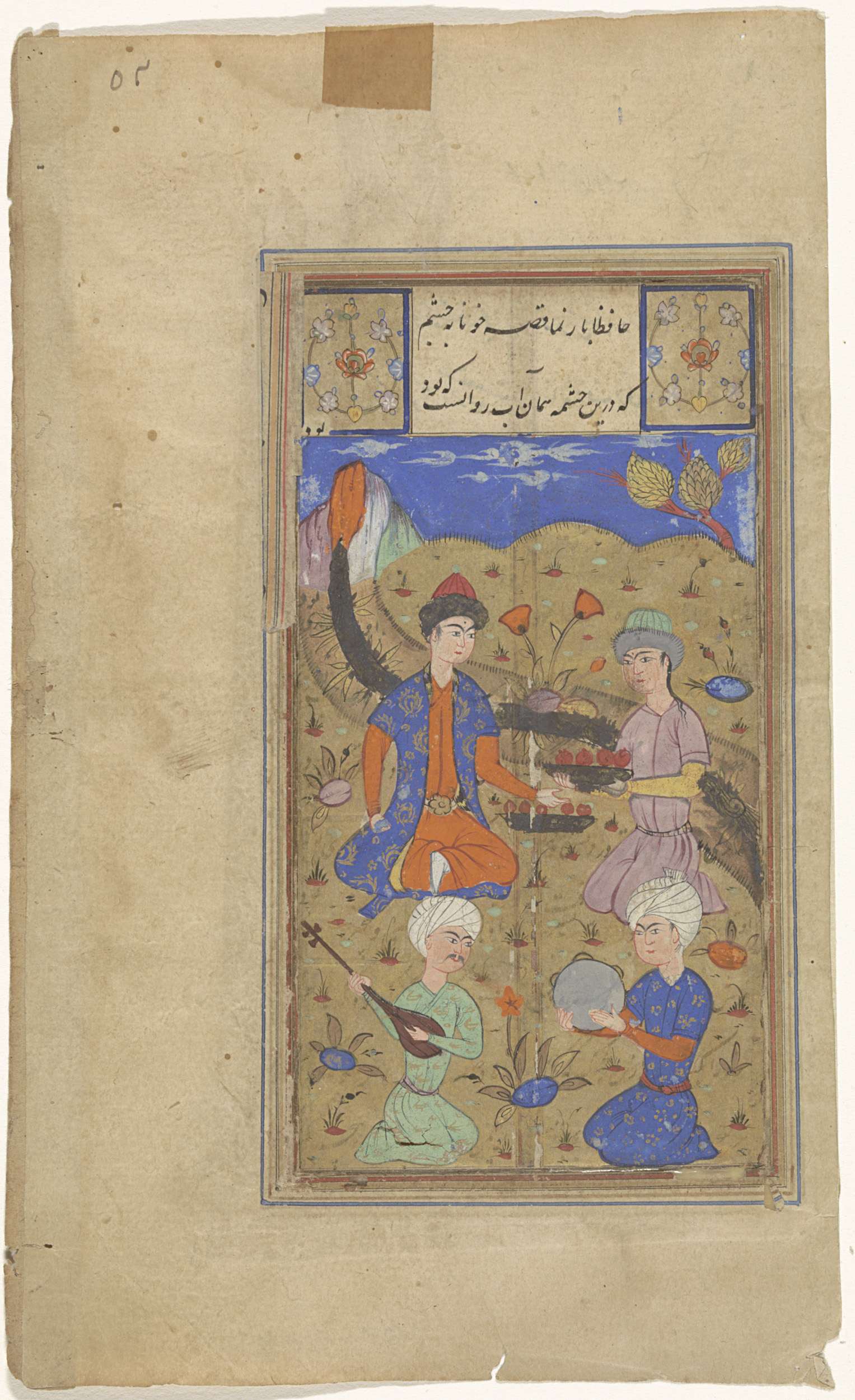 Vorstelijk gekleed persoon in een heuvelachtig lands...