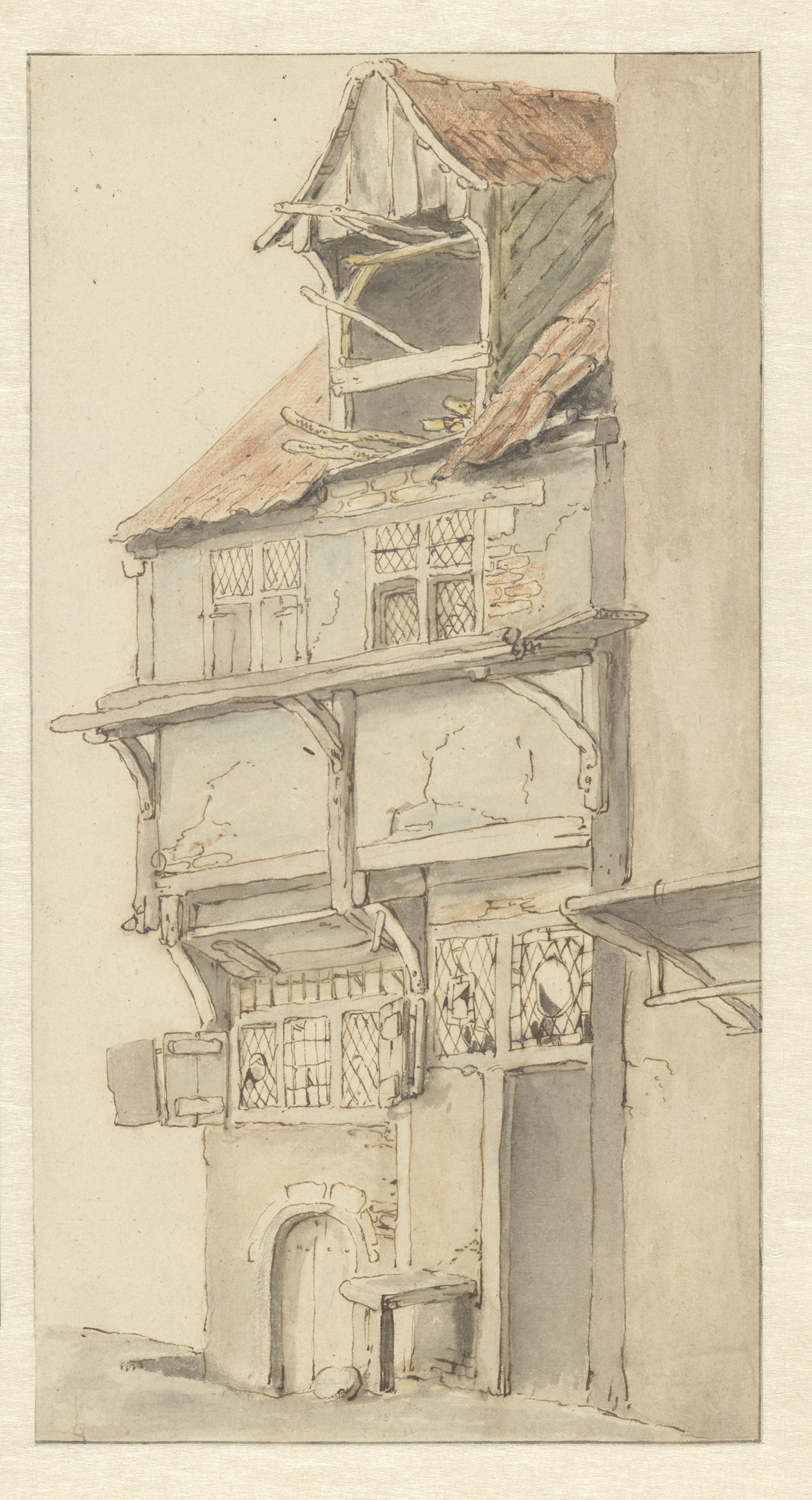 Gevel van een hoekhuis met open dakkapel