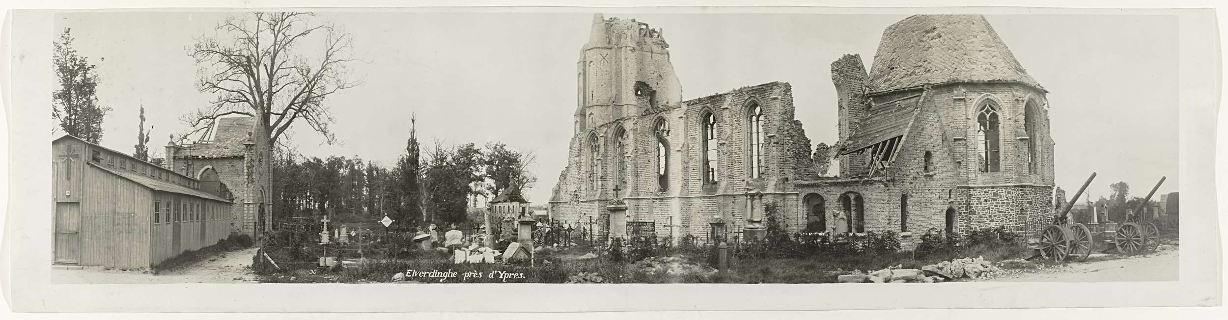 Oorlogsschade in Elverdinghe (België) na afloop van ...