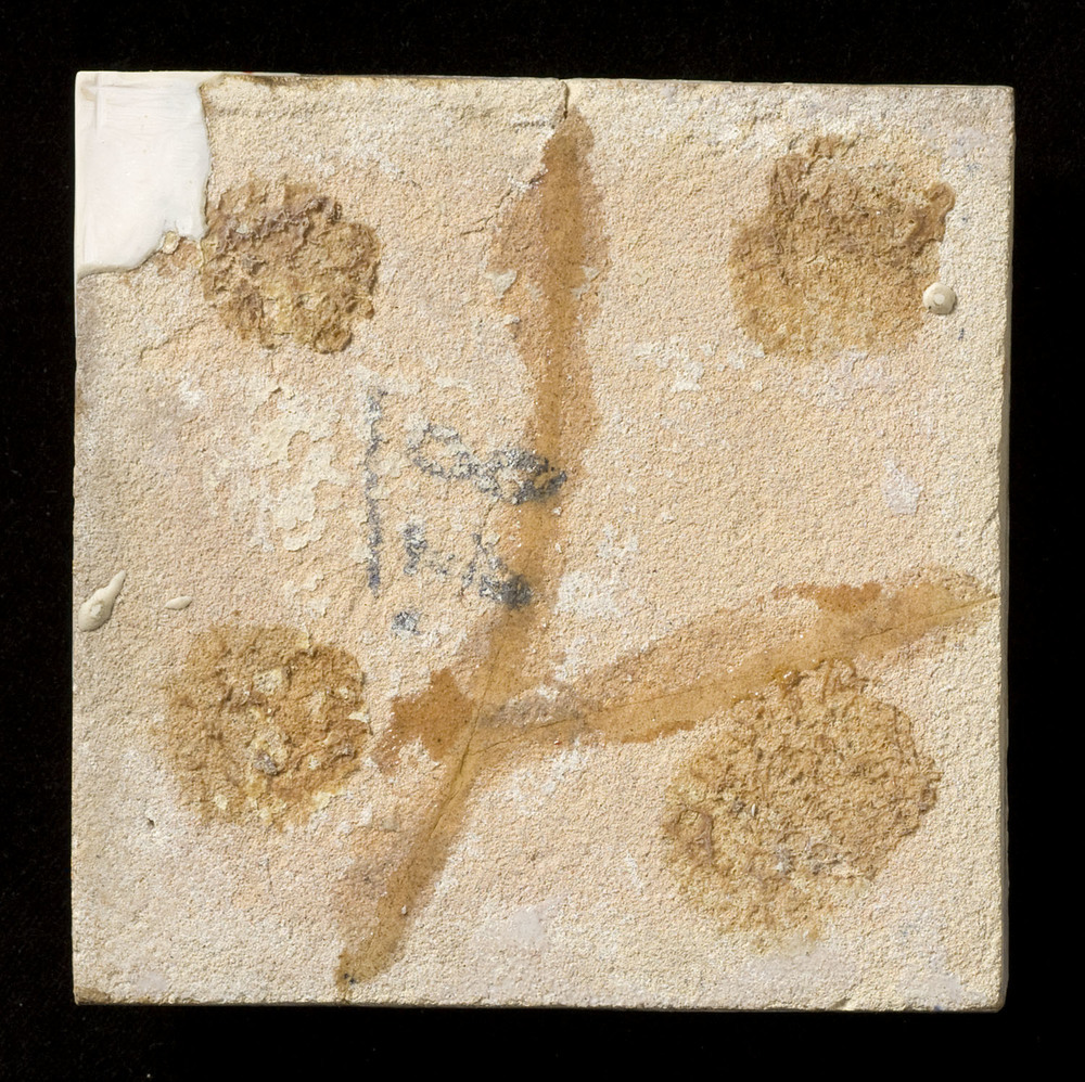 Tegel van keramiek, tinglazuur, gesprenkeld, voorste...