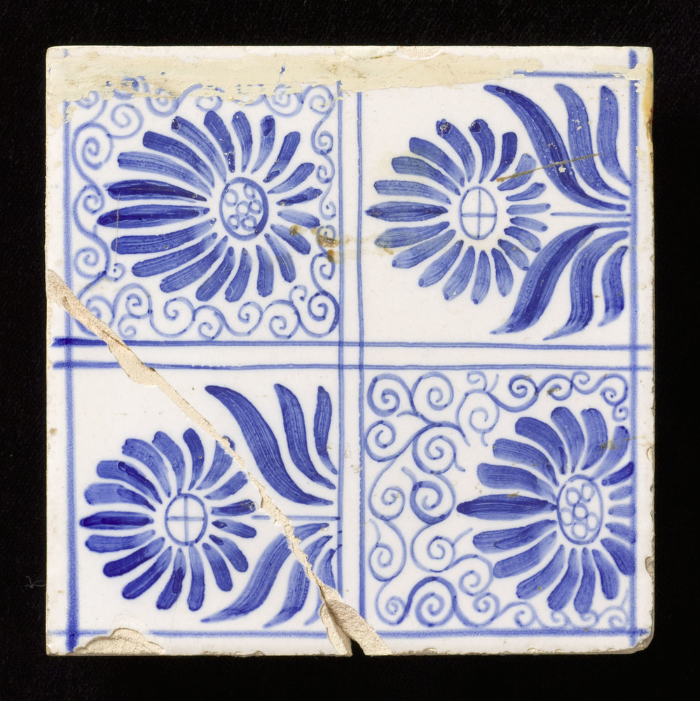 tegel van aardewerk met tinglazuur, voorstellende: o...
