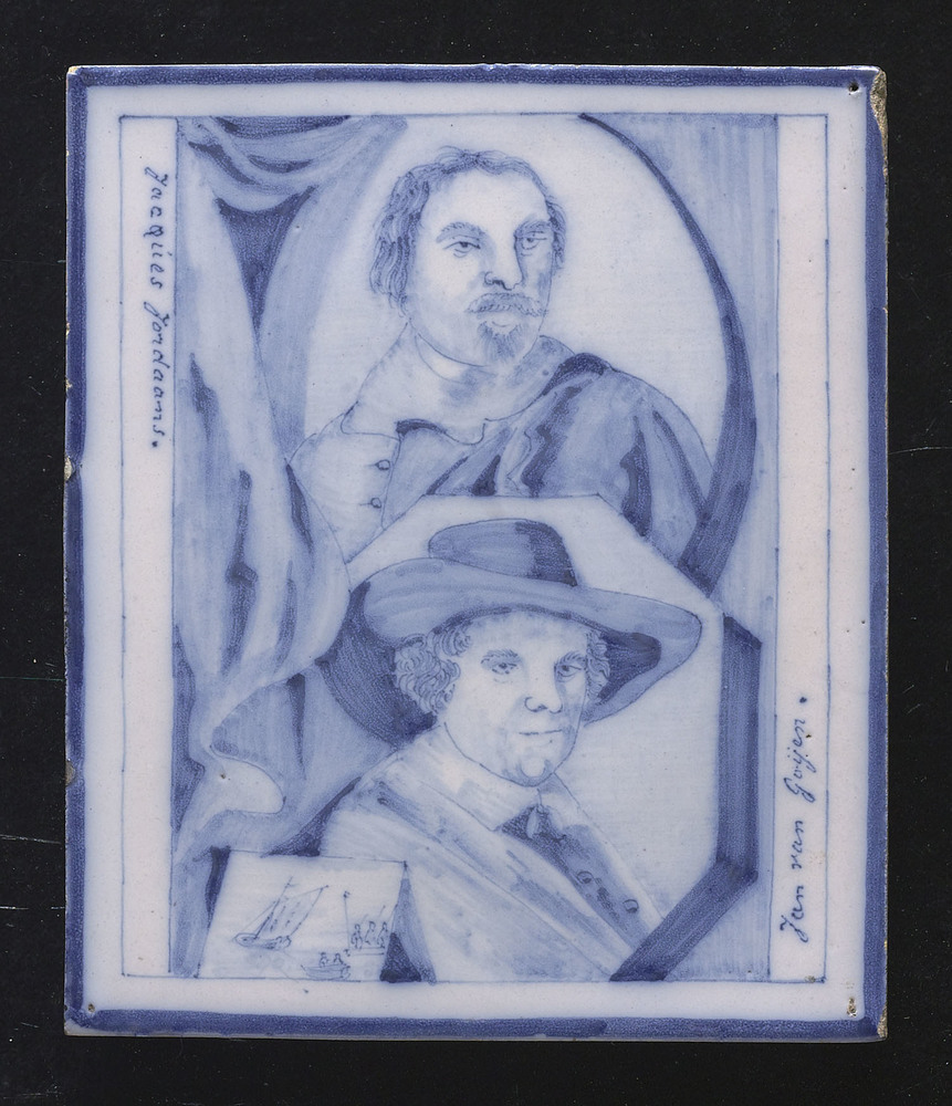 Tegelplaat met portretten van de schilders Jacob Jor...