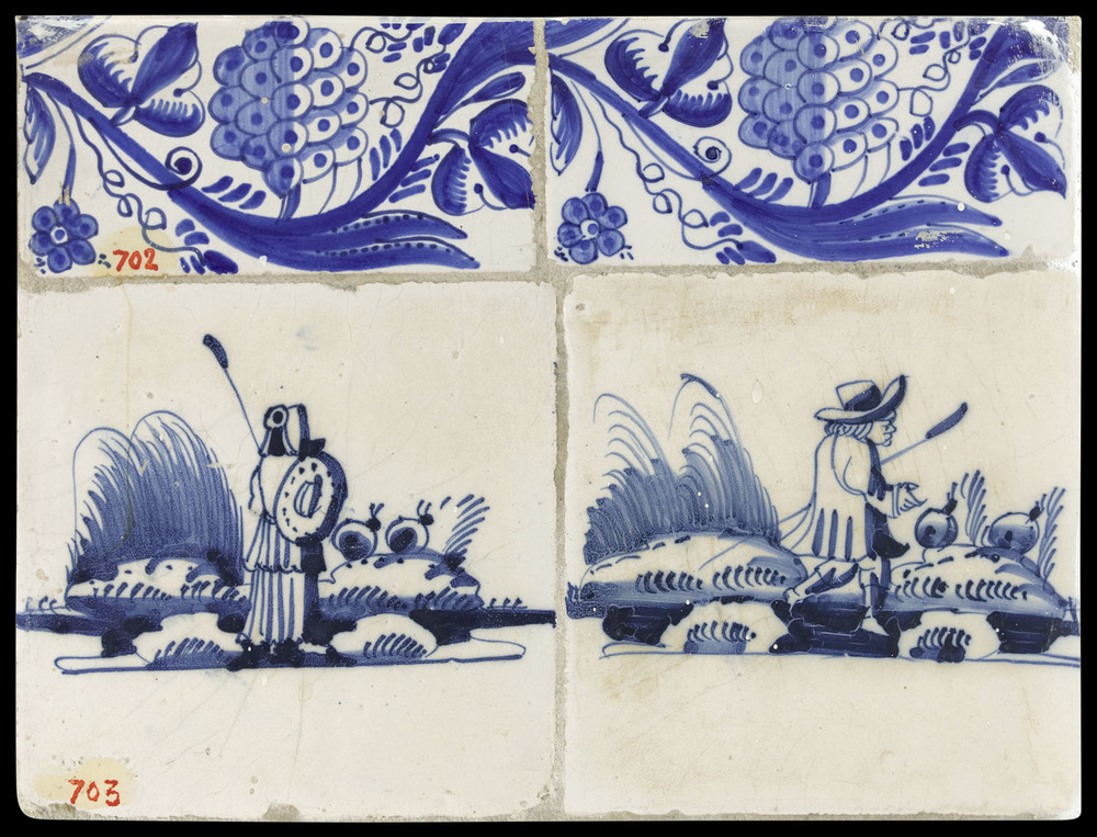 Tegelveld van keramiek, tinglazuur, voorstellende he...