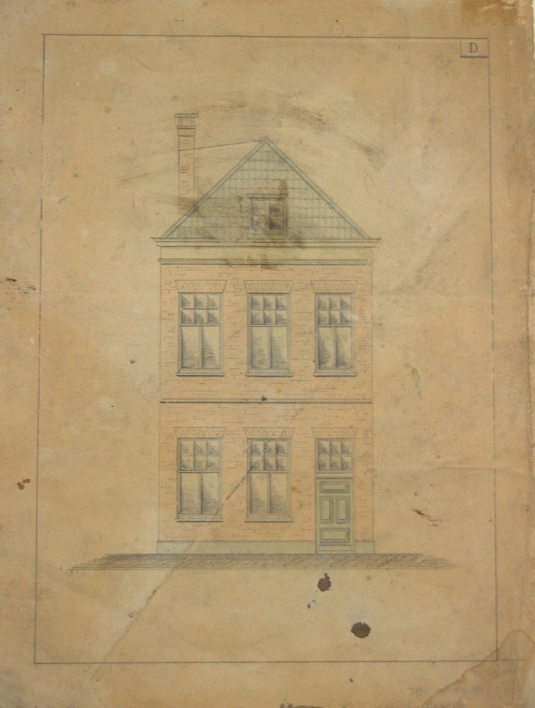 (bouw) tekening huis, Zaltbommel. Aquarel, initiaal ...