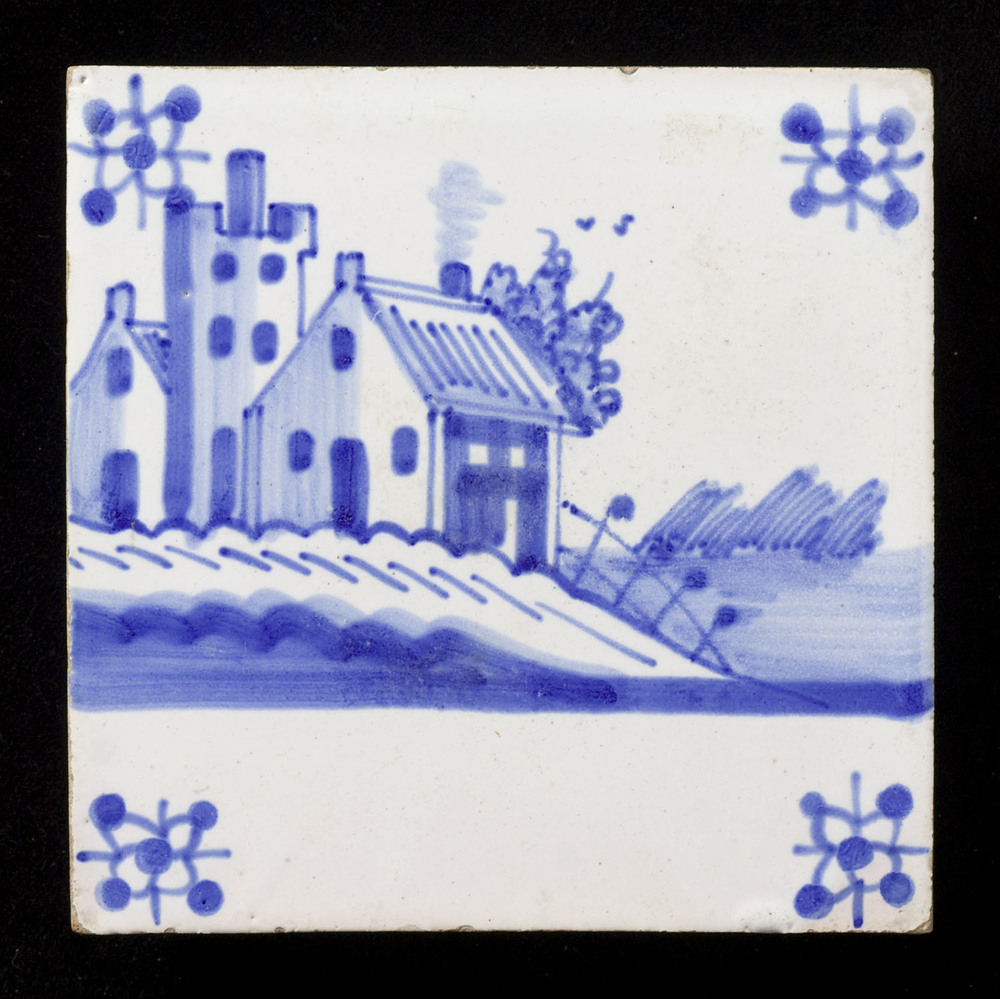 Tegel in tinglazuur, voorstellende landschap ca. 187...
