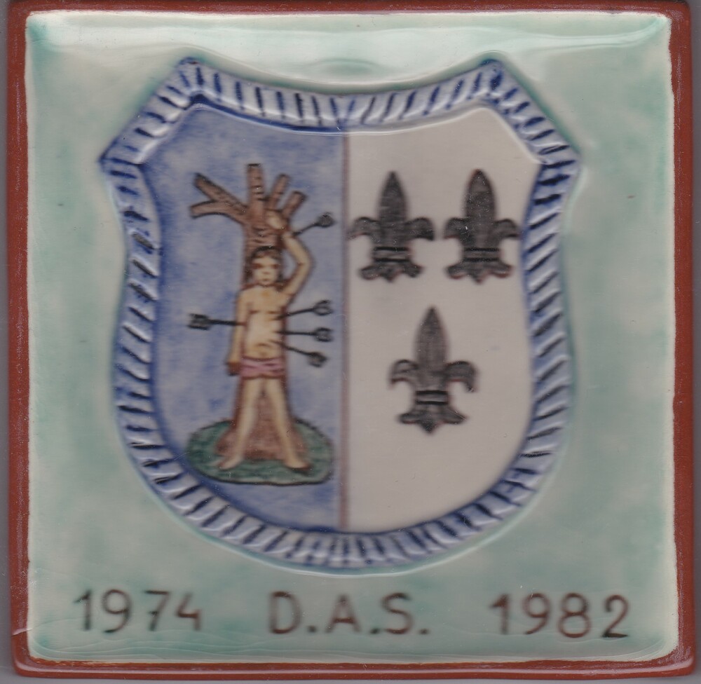 Tegel in reliëf, met voorstelling: wapen Sevenum, me...