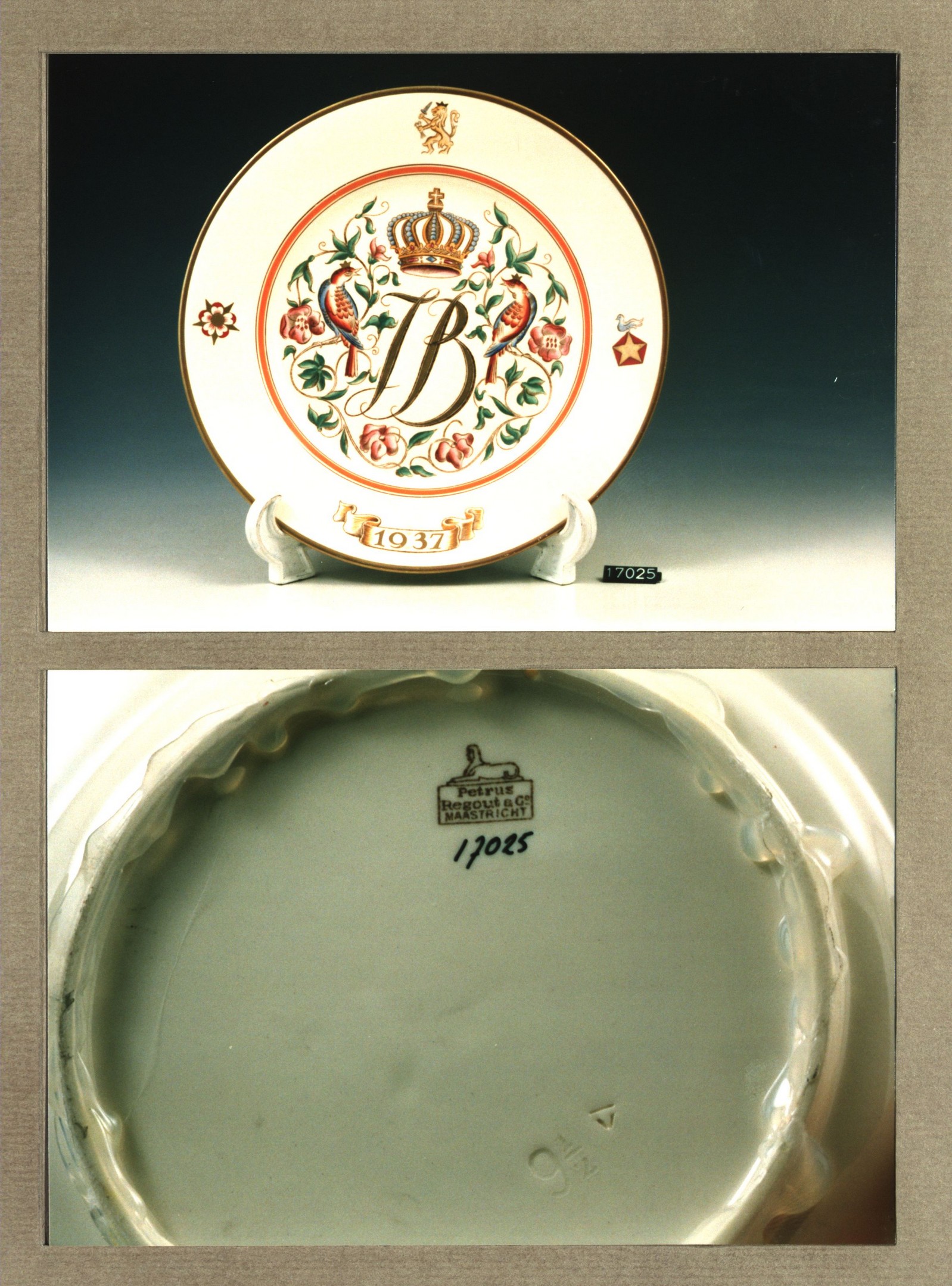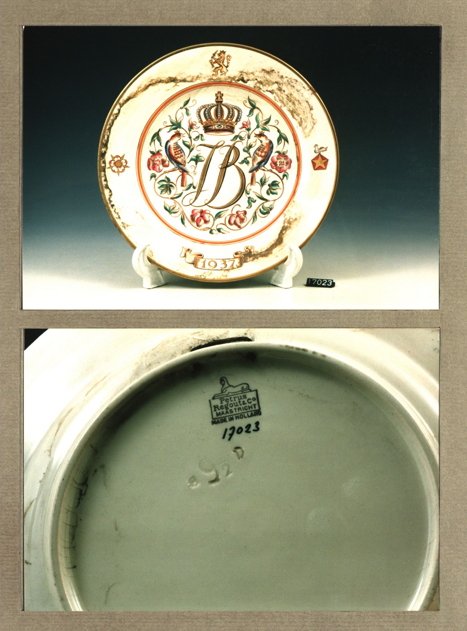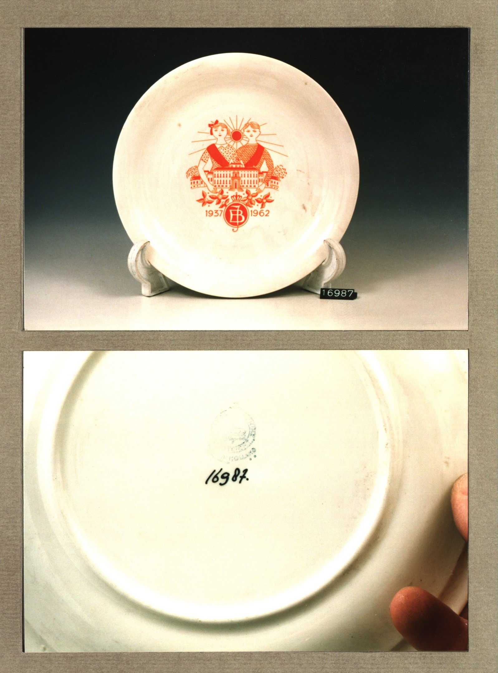 Plat bord met decor J.B.:1937-1962