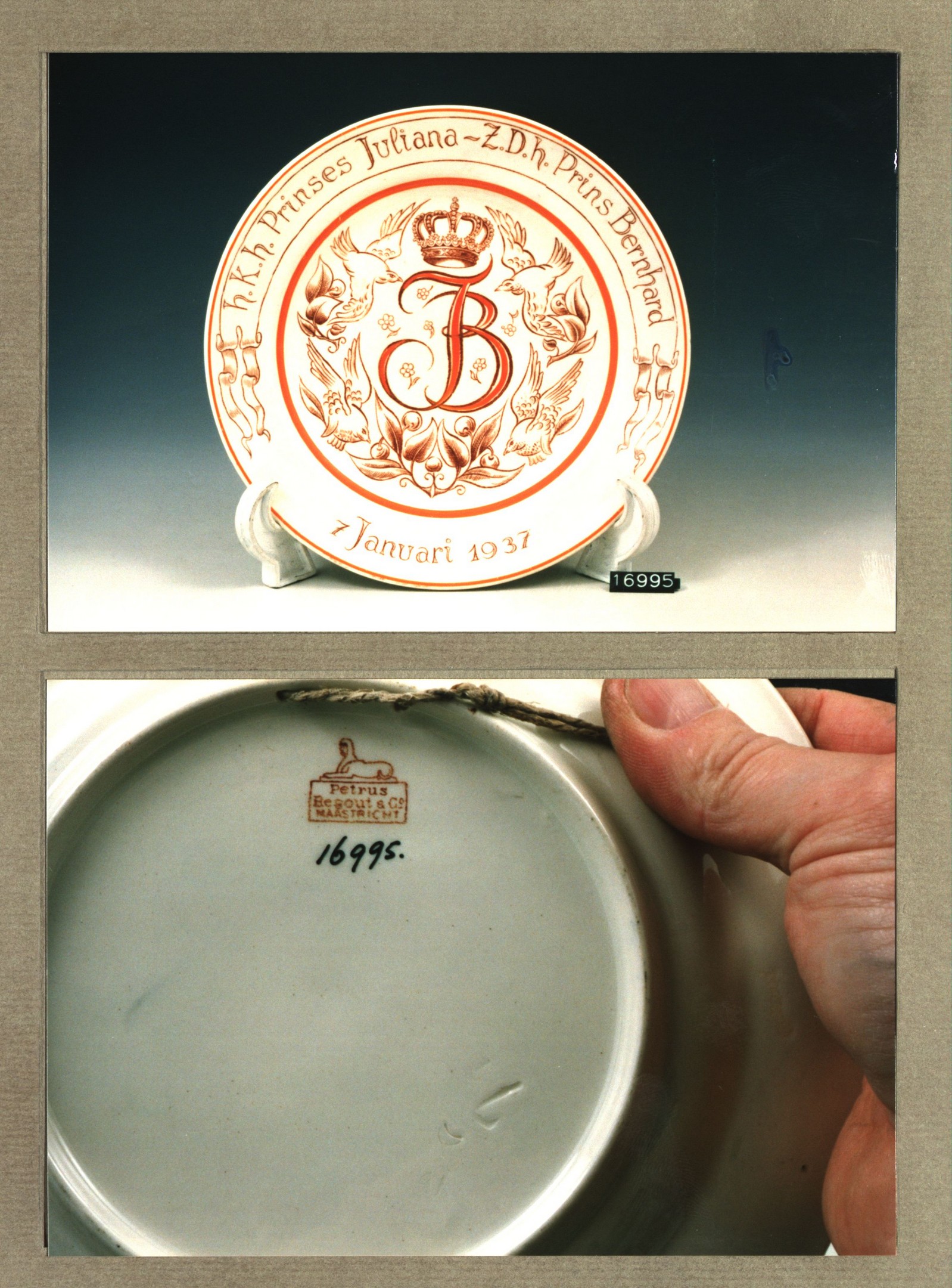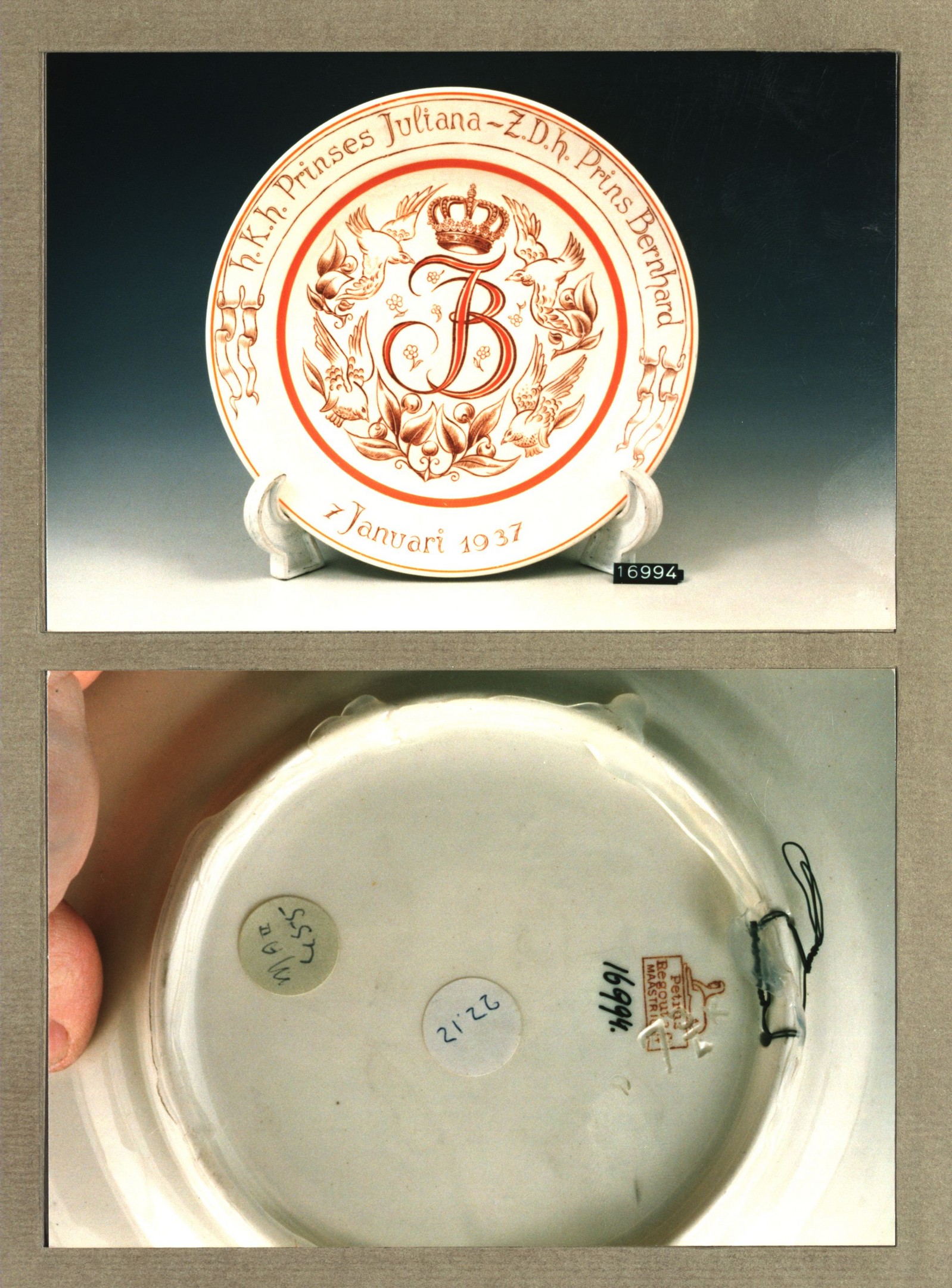Wandbord met decor J.B.: 1937
