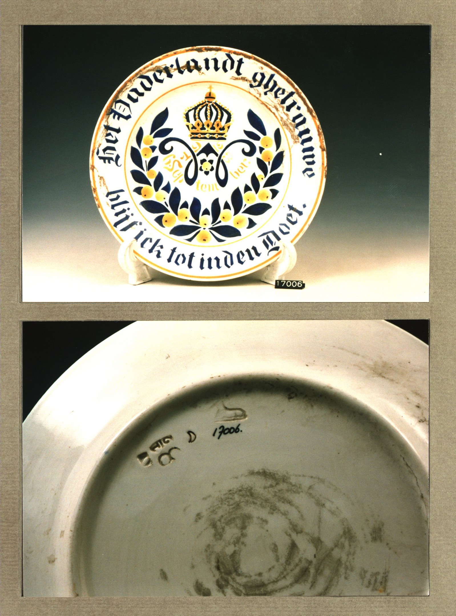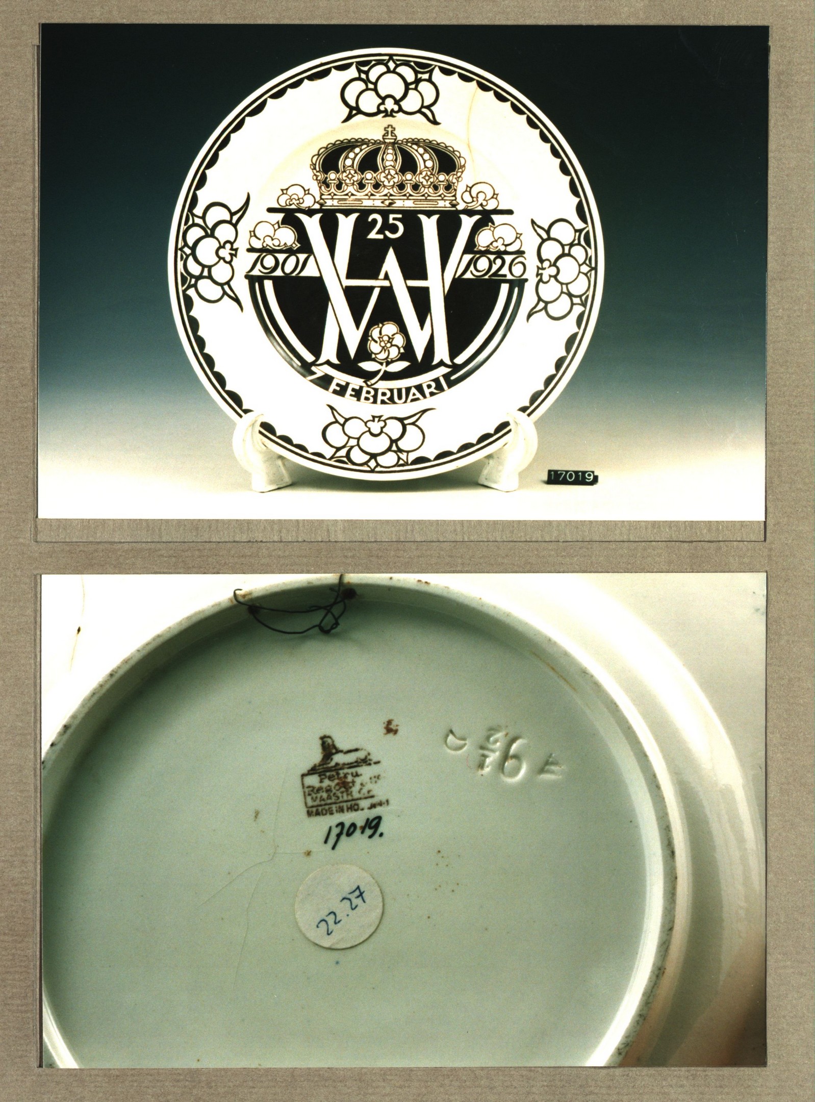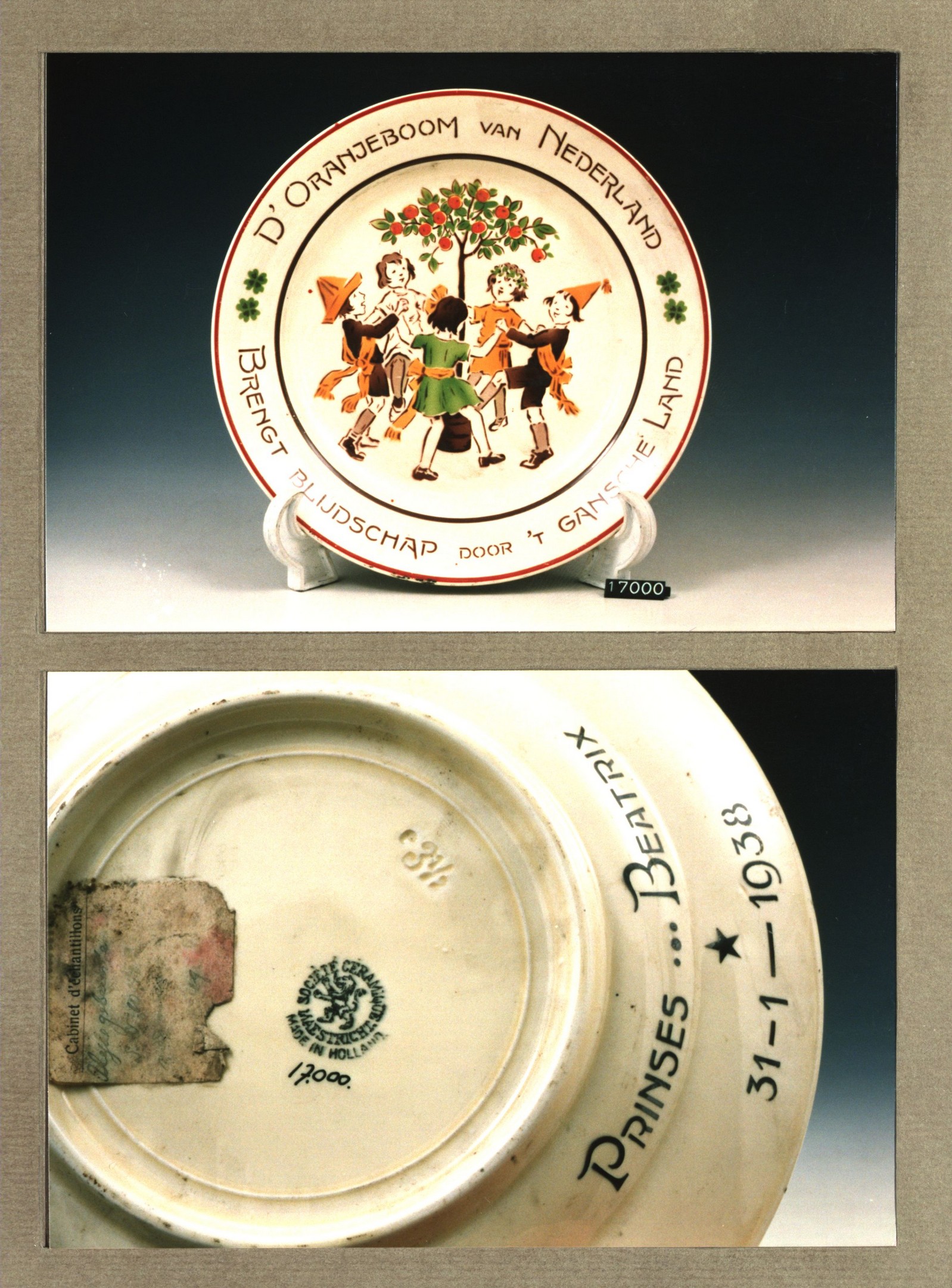 Plat bord, model Schiedam met decor B: 31 jan. 1938