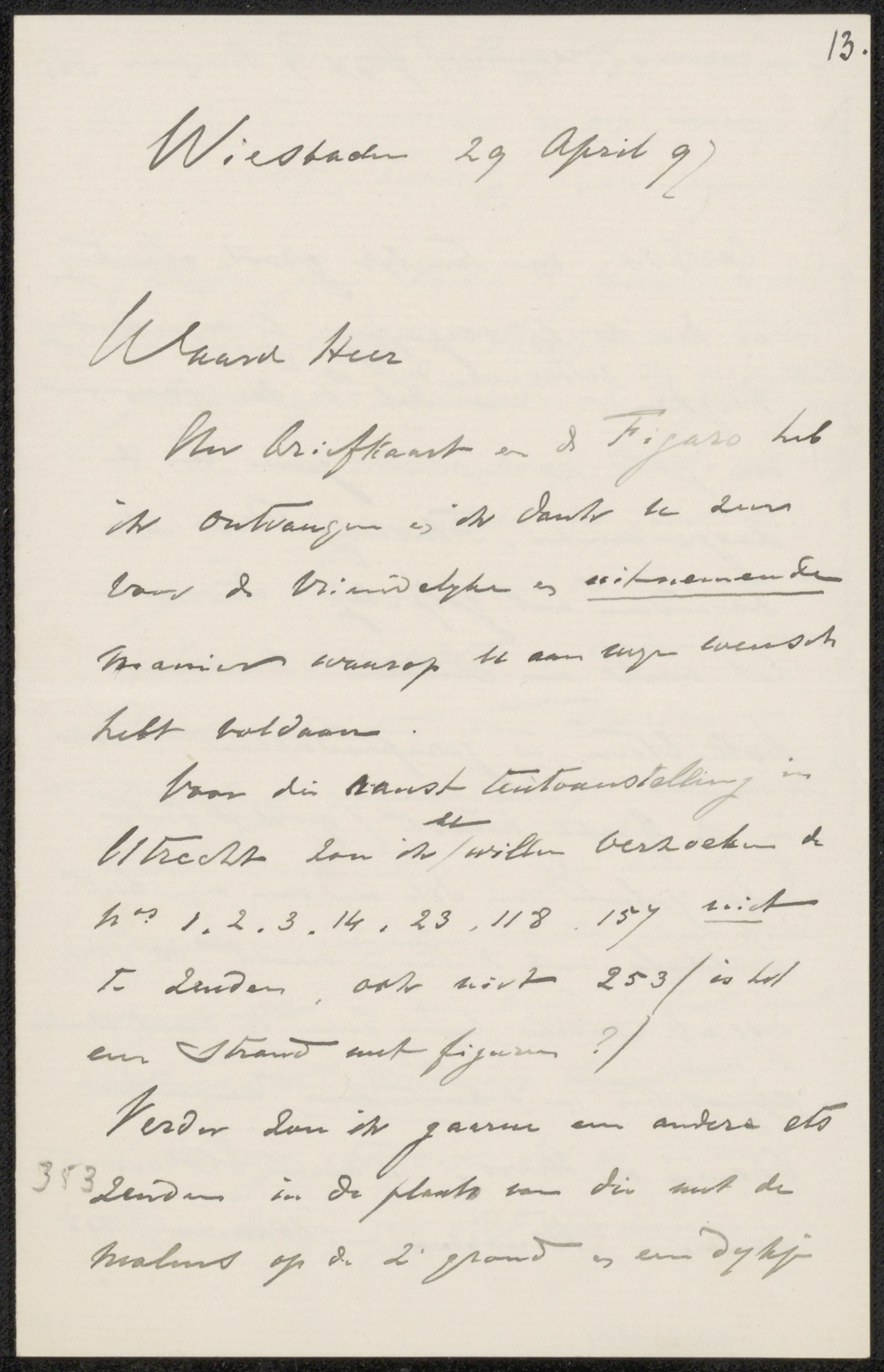 Brief aan jonkheer Hendrik Teding van Berkhout (1879...