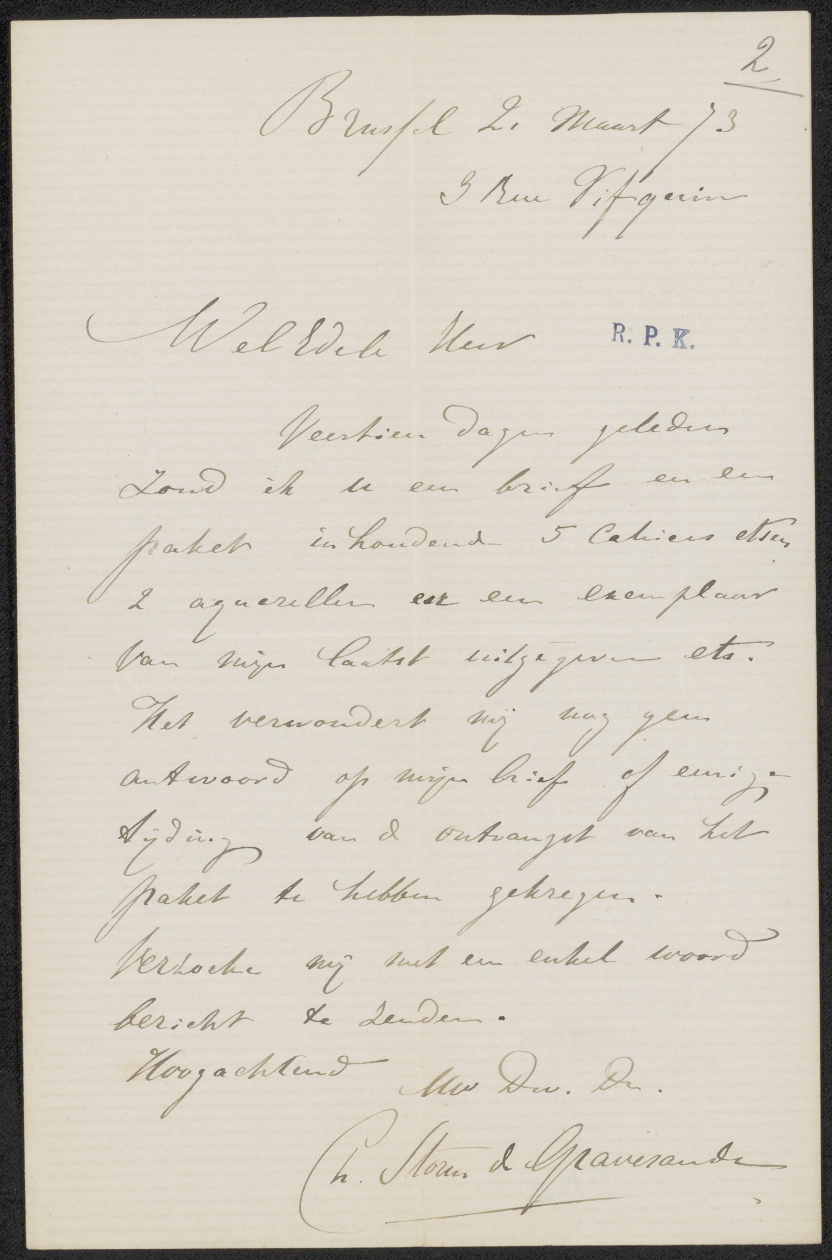 Brief aan Pieter Haverkorn van Rijsewijk