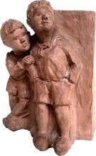 twee jongens staand bij muur