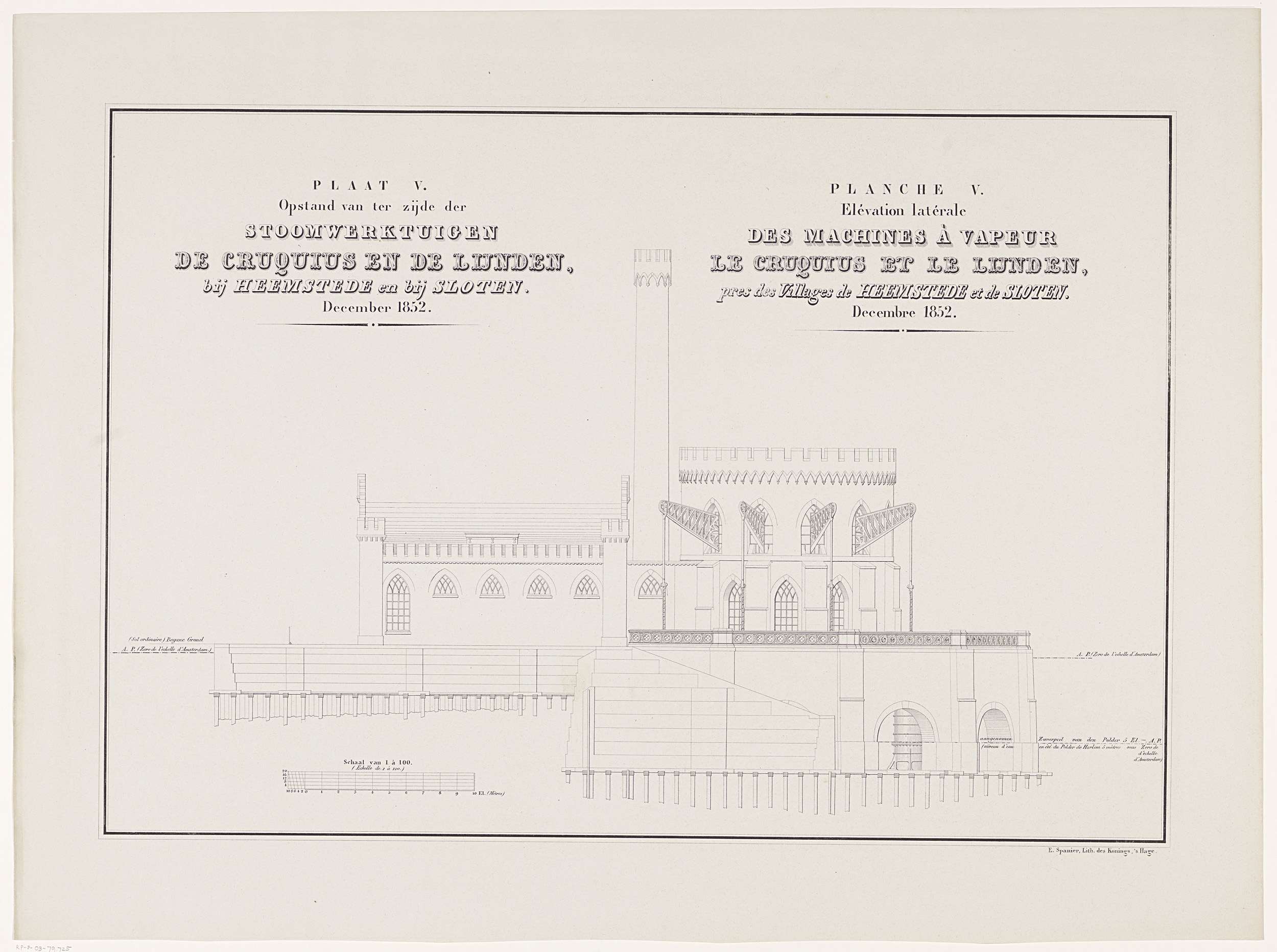 Kaart V. Opstand van ter zijde der Stoomwerktuigen d...