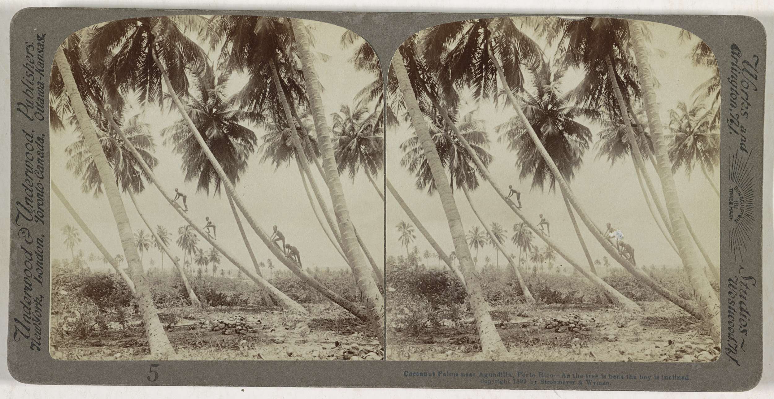 Kokosnoot-plukkers nabij Aguadilla, Puerto Rico