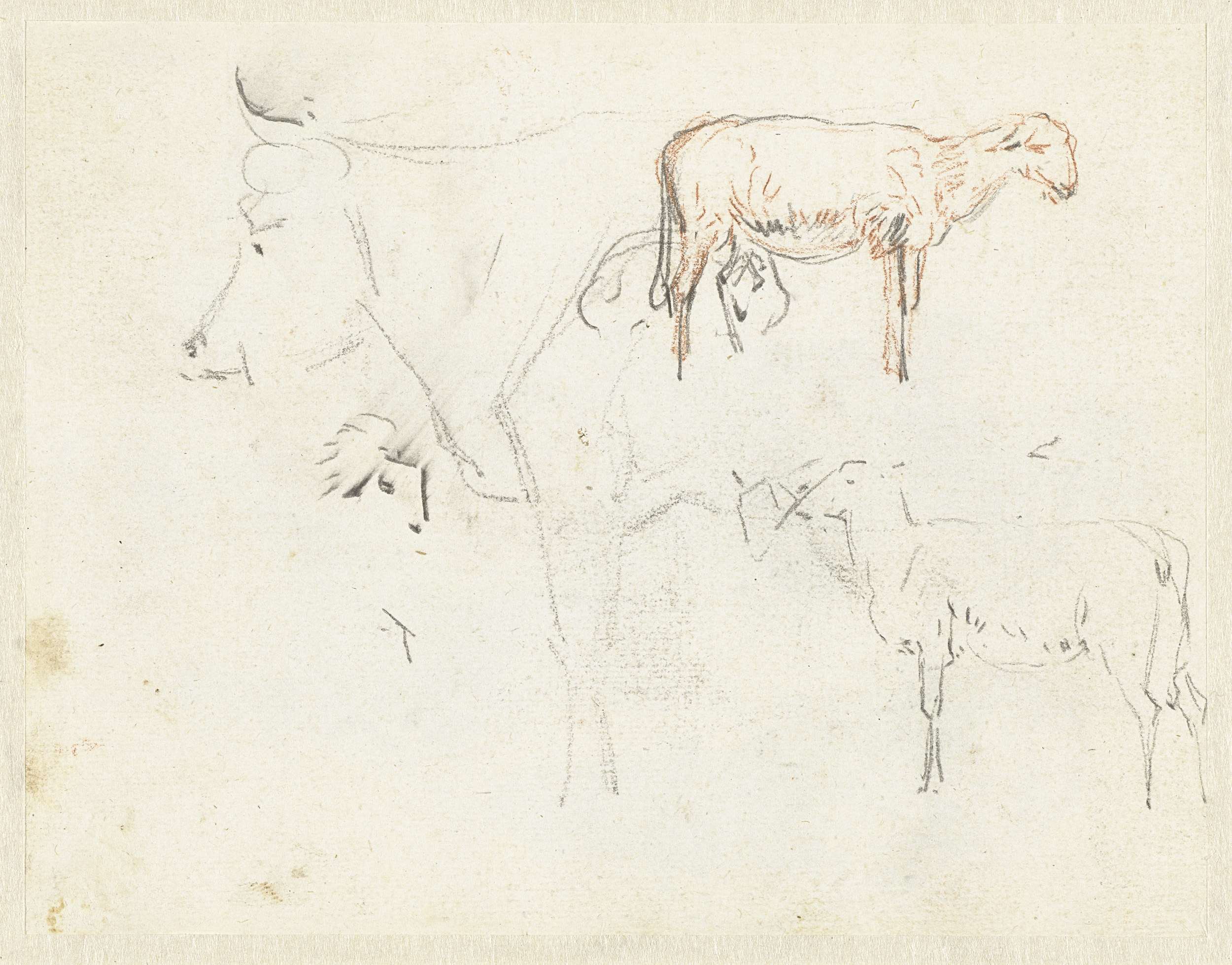 Schetsen van een koe en schapen